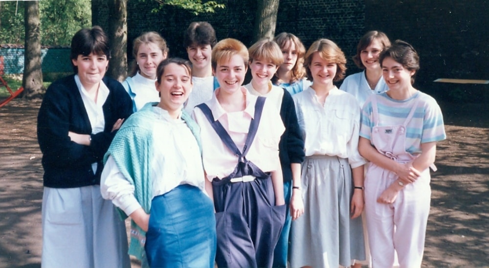 - En juin, les dix premières rhétoriciennes quittent l’Institut : Anne Charpentier, Murielle Collette, Brigitte Comeliau, Valérie Debefve, Monique Defraiteur, Marie-Christine Demoulin, Bénédicte Langohr, Christine Mossay, Murielle Nellissen et Isabelle Santiago. (photo)