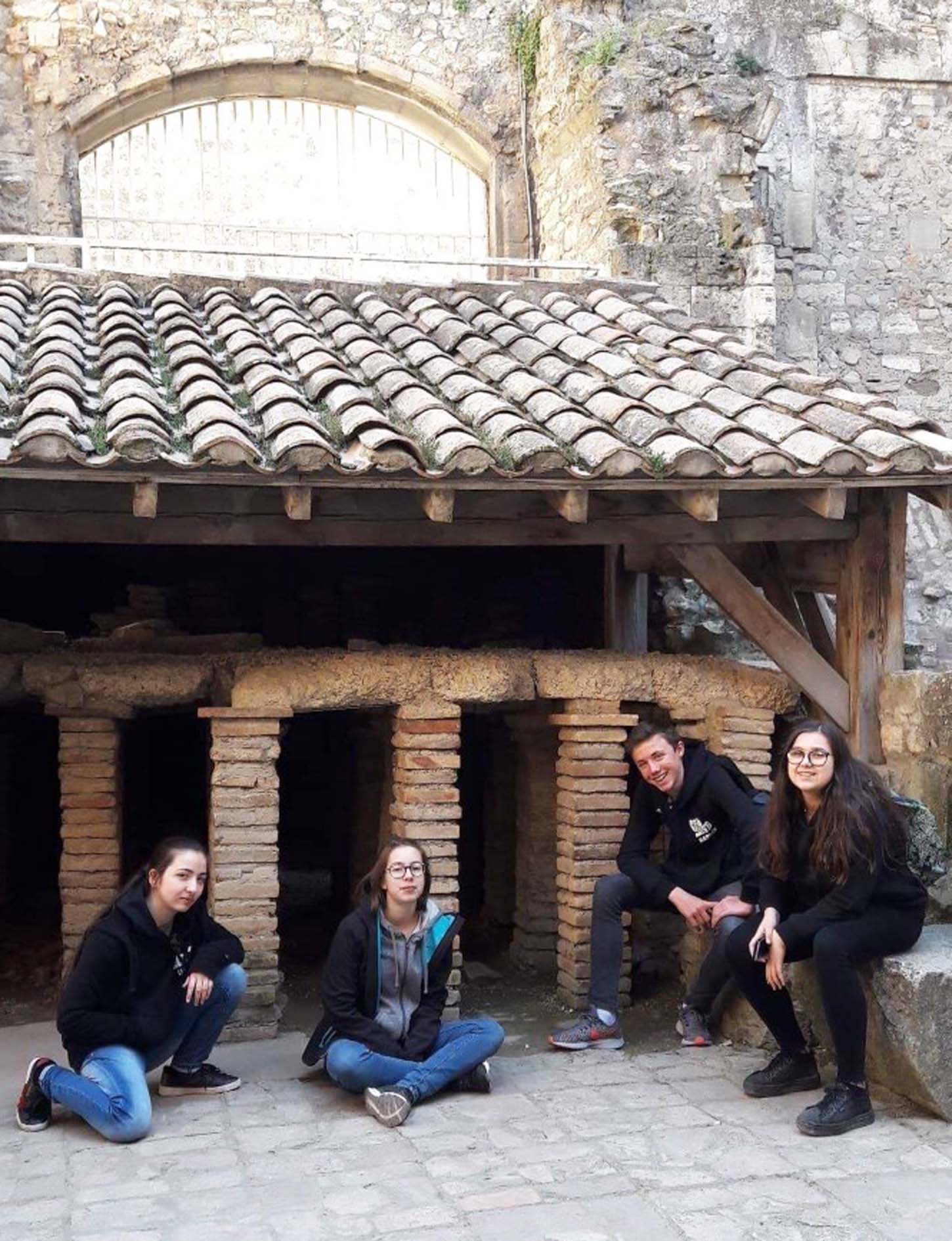 Nous avons d’abord eu l’occasion de visiter une cave gallo-romaine à Mas-des-Tourelles et de découvrir la vinification chez les Romains. Cette première visite s’est achevée avec la dégustation d’un jus de raisin local.