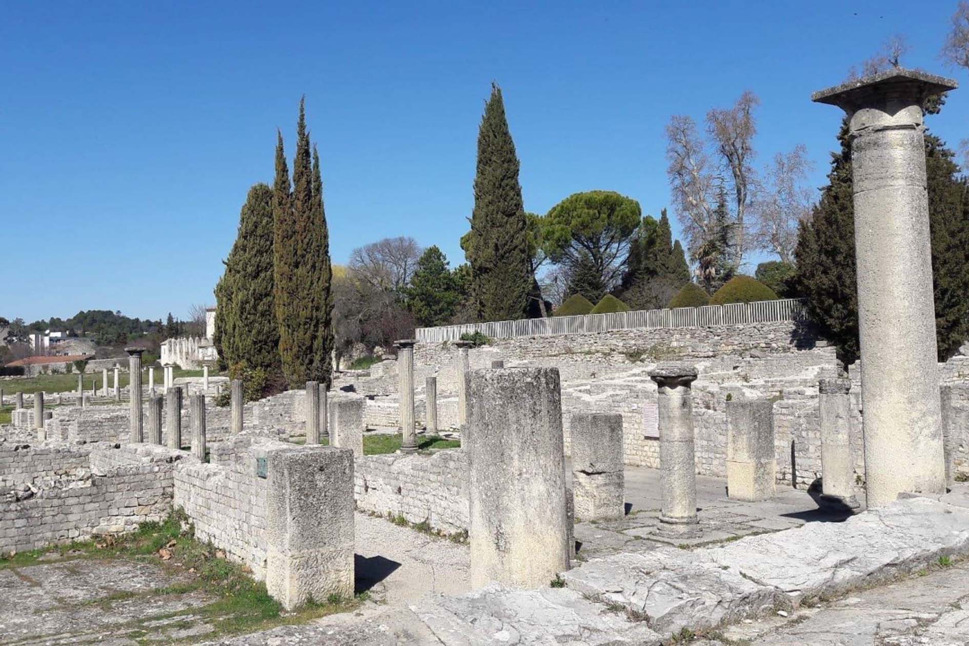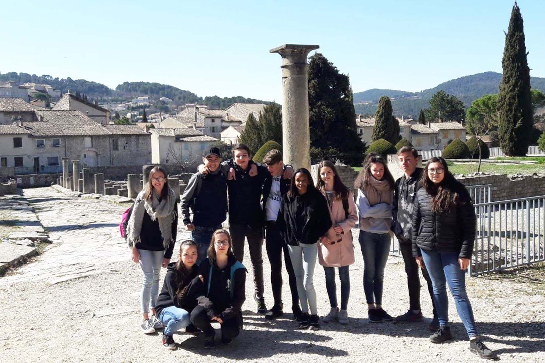 Nous nous sommes rendus le matin, sous un ciel bleu une fois de plus, à Vaison-la-Romaine où nous avons eu l’opportunité de découvrir les vestiges d’anciennes « Domus ».