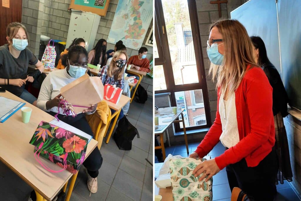 Voici quelques photos prises en 2e secondaire C pendant un moment de convivialité autour de la remise de cadeaux « cacahuètes » après la distribution des bulletins.