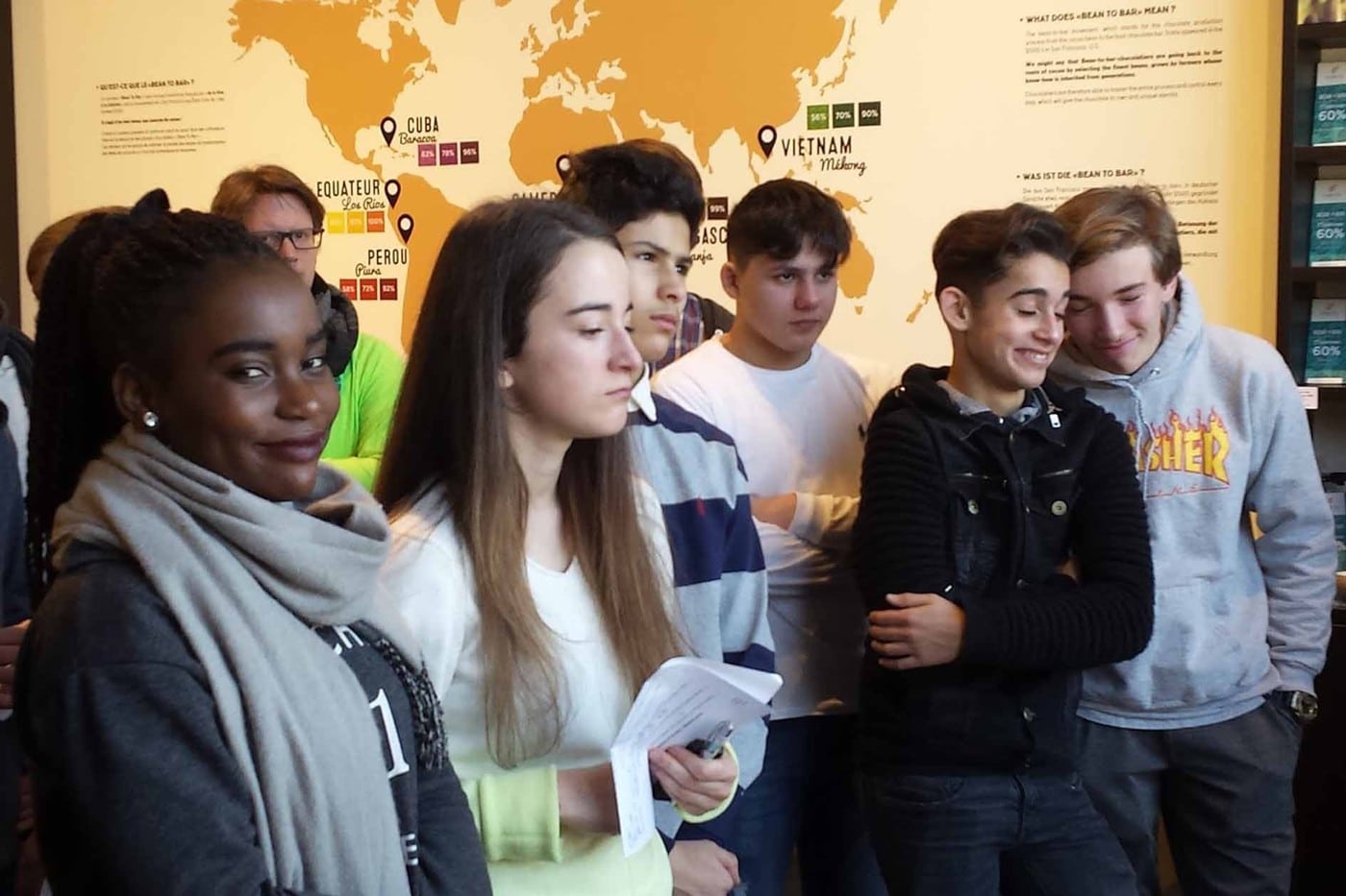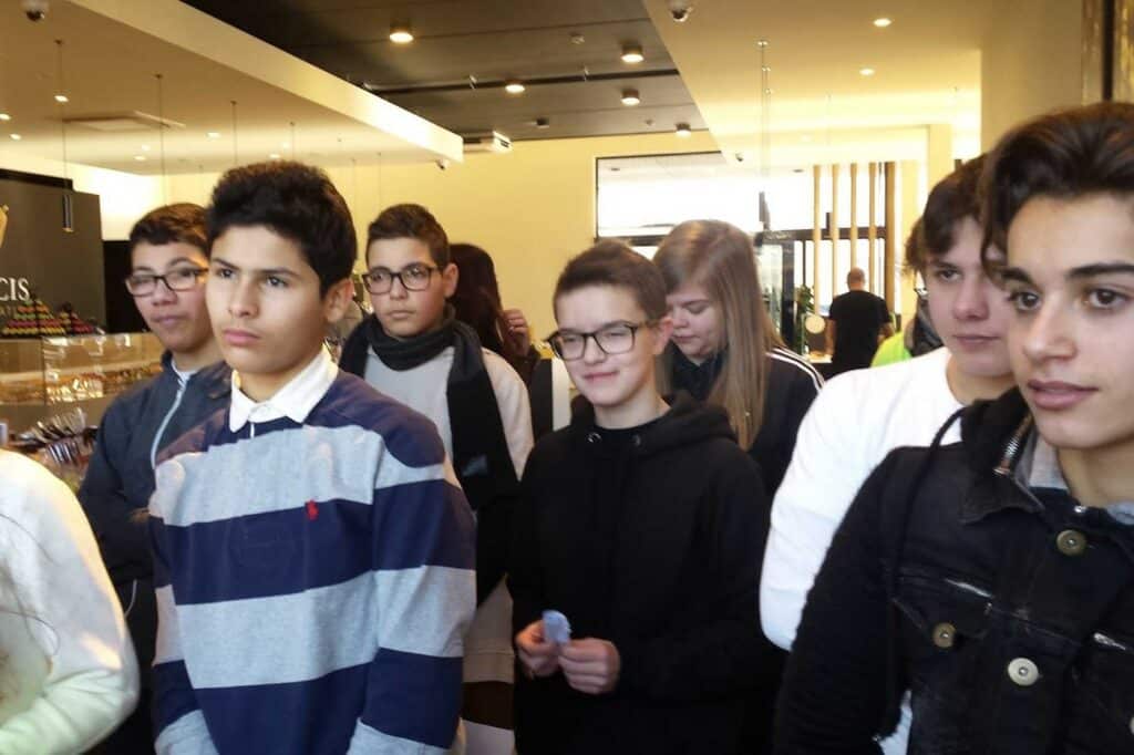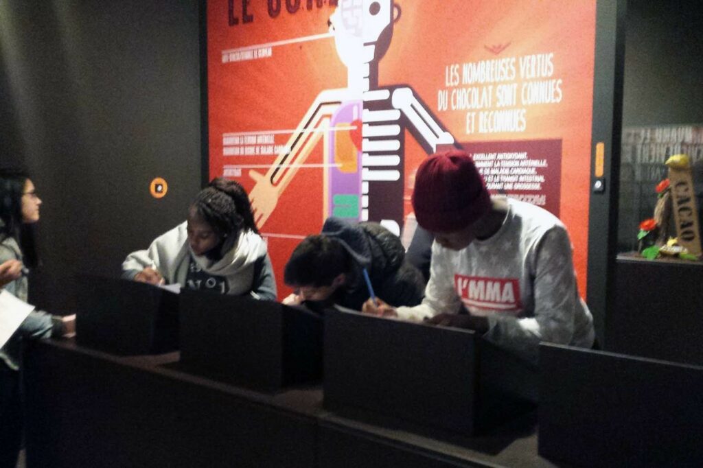 Nous avons tout d’abord visité le musée, où les élèves ont pu découvrir l’origine du chocolat, son développement et ses vertus, tout cela en dégustant les pralines que chacun avait reçues.
