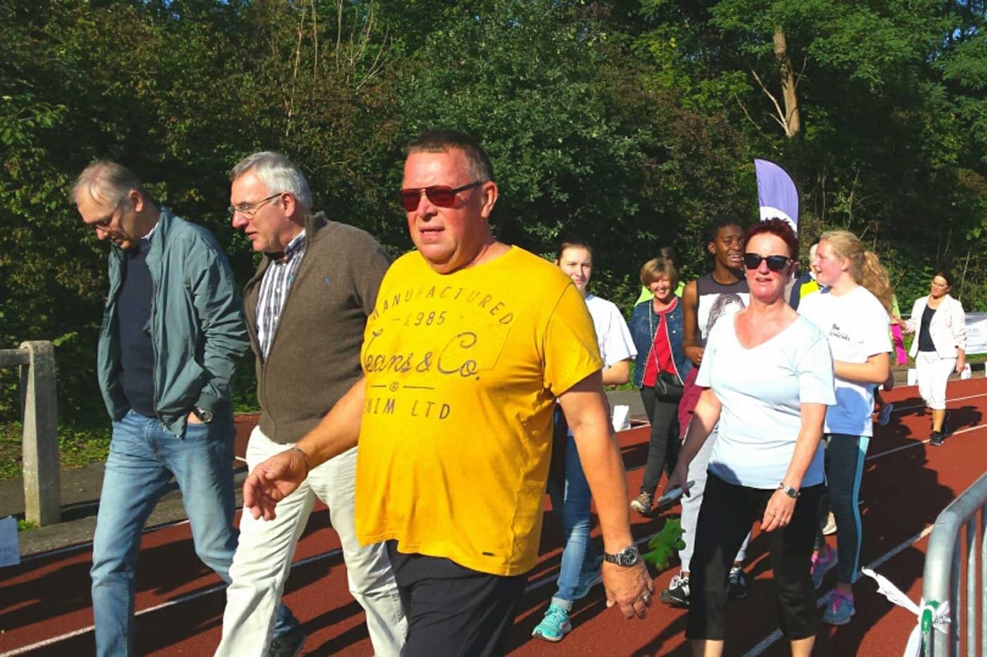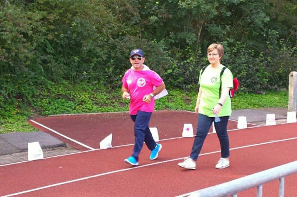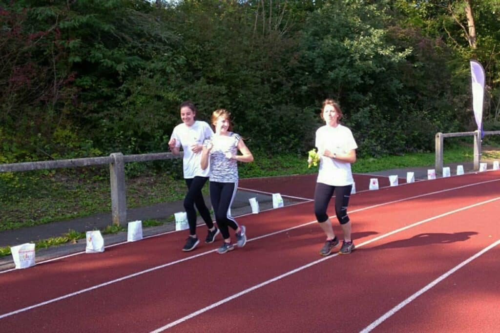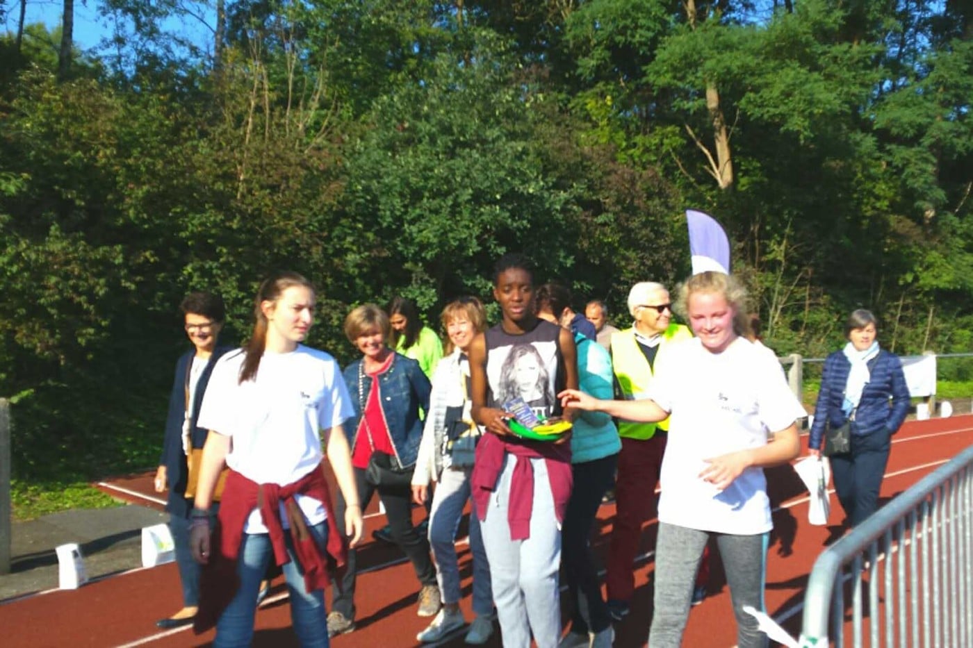 Au final, l’équipe était composée de 79 membres : professeurs, élèves et parents de l’école. Ils se sont relayés pendant 24 heures afin qu’il y ait tout le temps un membre de l’école sur la piste en train de marcher.