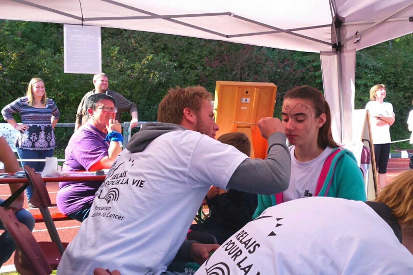 Les élèves de 6e année de la section « animation » et leurs professeurs tenaient un stand à cette occasion, et y animaient des jeux pour enfants ainsi que des grimages pour enfants, dans le même but: récolter de l’argent pour la Fondation contre le cancer. Ils ont été à la hauteur de l’événement et ont assuré comme des professionnels. Bravo à eux!