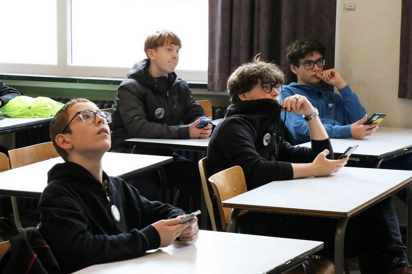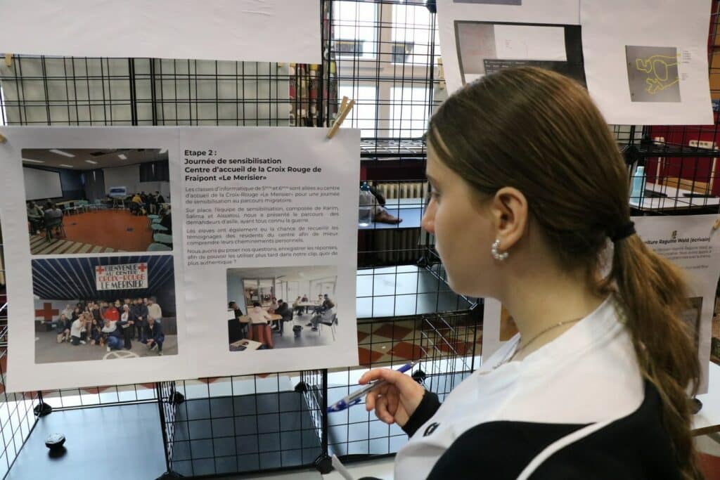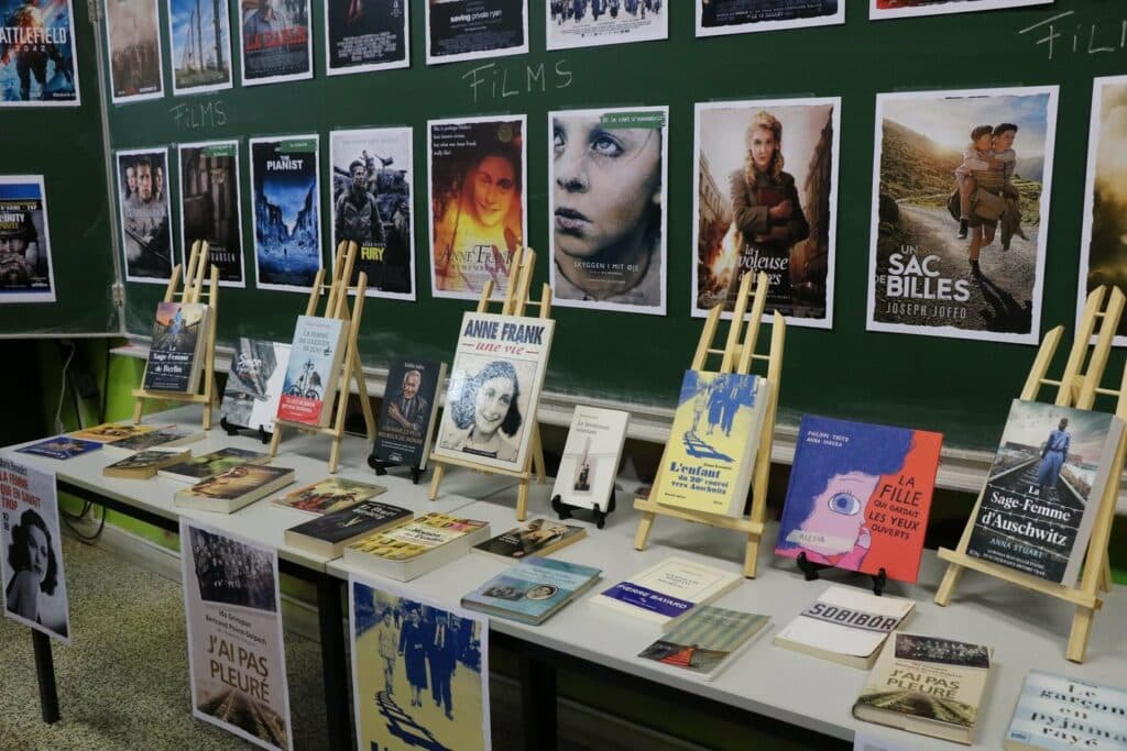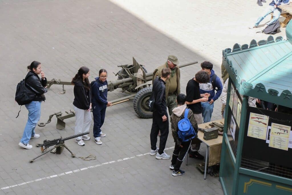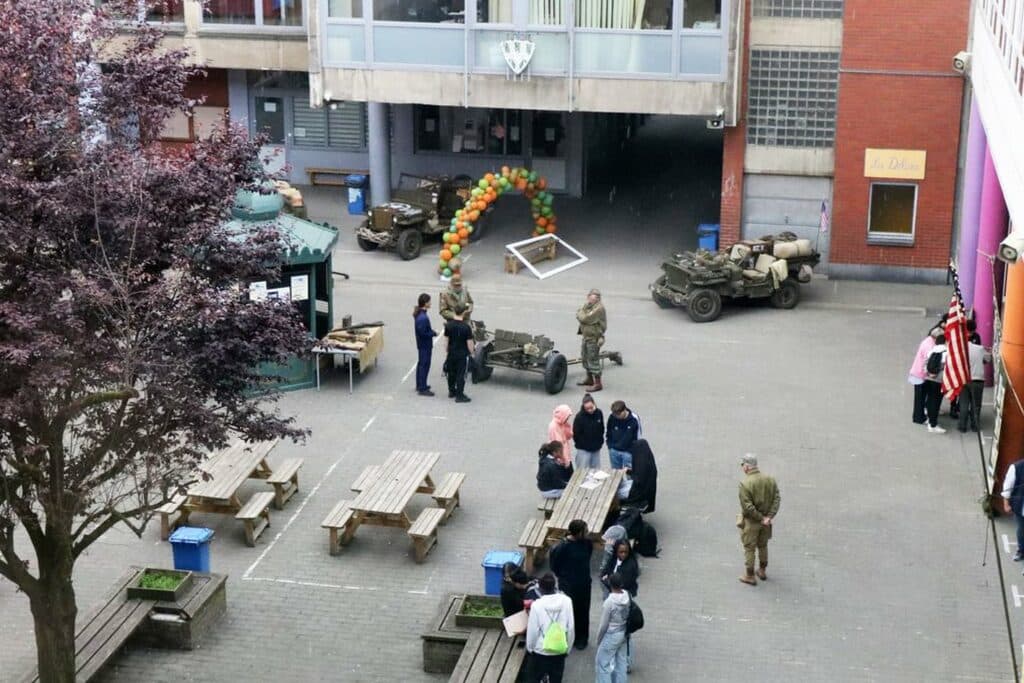 Dans le cadre de notre projet de l’année ‘Devoir de Mémoire’, de très nombreuses activités ont été organisées pour nos élèves, depuis septembre : le spectacle « Le journal d’Etty Hillesum » pour les élèves de 6e transition, une journée à Bastogne pour nos élèves de 3e et 4e transition, une après-midi sur le thème du 11 novembre pour nos élèves du 1er degré, une autre sur le débarquement de Normandie pour nos élèves du 2e degré, les conférences de Simon Gronowski, le voyage en Normandie avec 2 classes de 4EQ, la journée à la caserne de Spa pour 6 classes de 5e et bientôt un voyage à Breendonk pour nos élèves de 5e et la journée à Amsterdam sur les traces d’Anne Franck pour nos élèves de 6e.