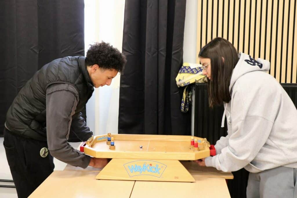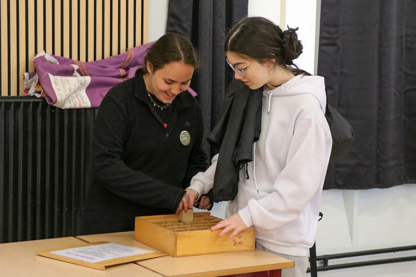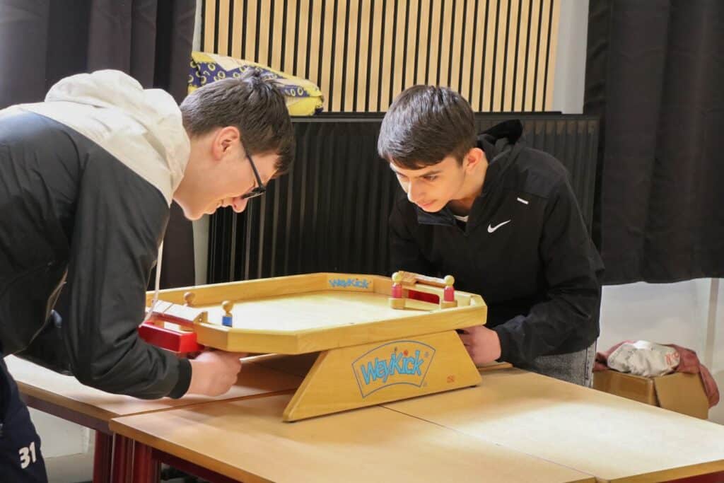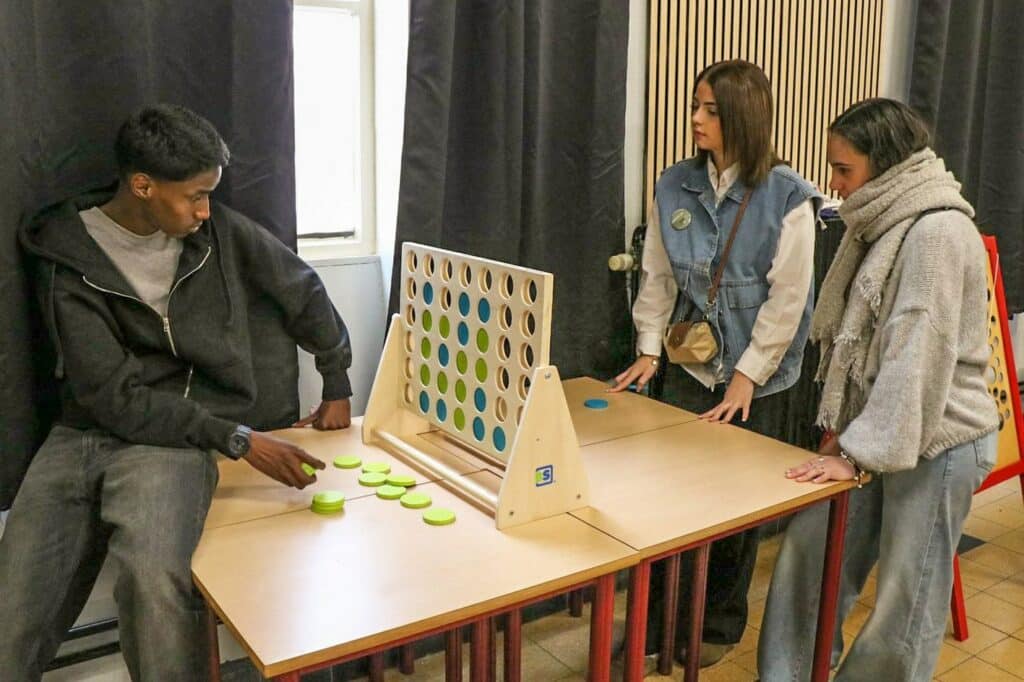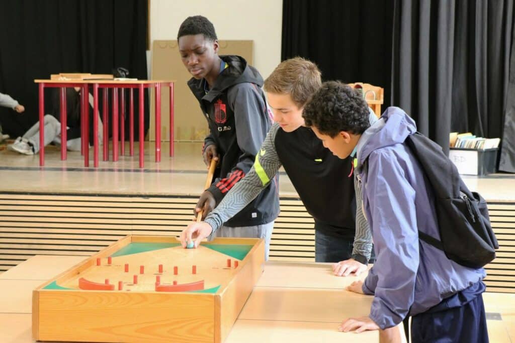 des jeux géants en bois dans la salle d’étude;
