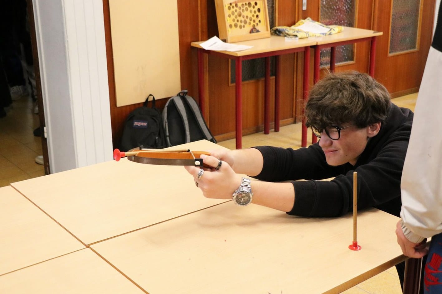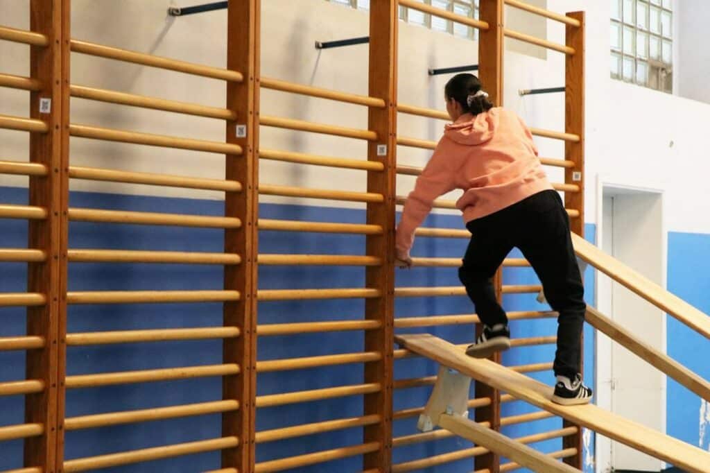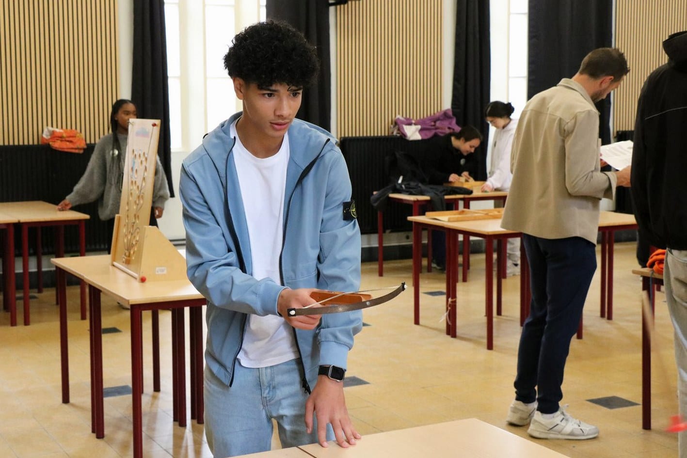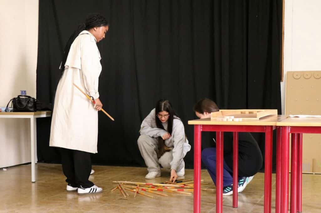 des jeux géants en bois dans la salle d’étude;