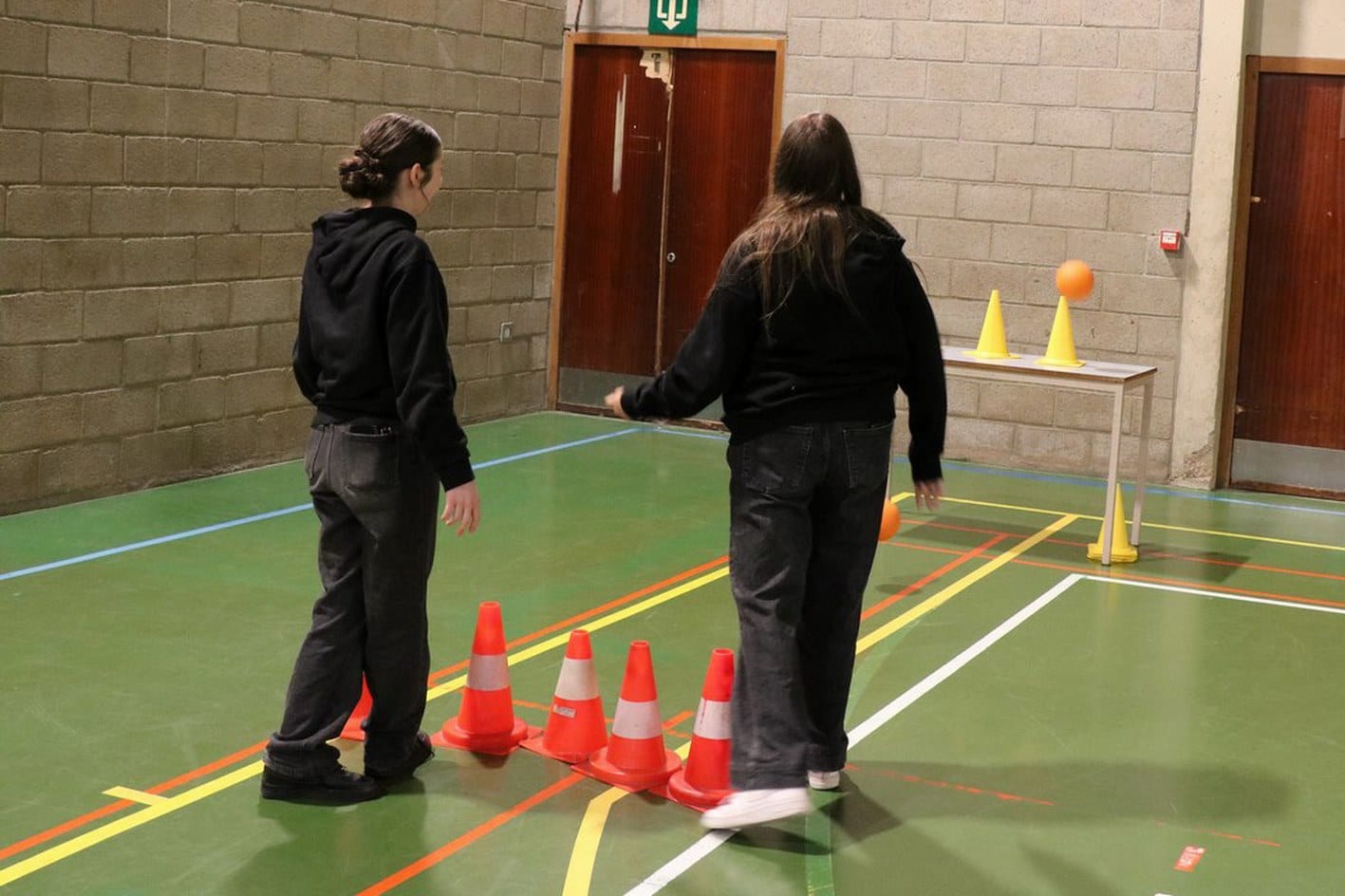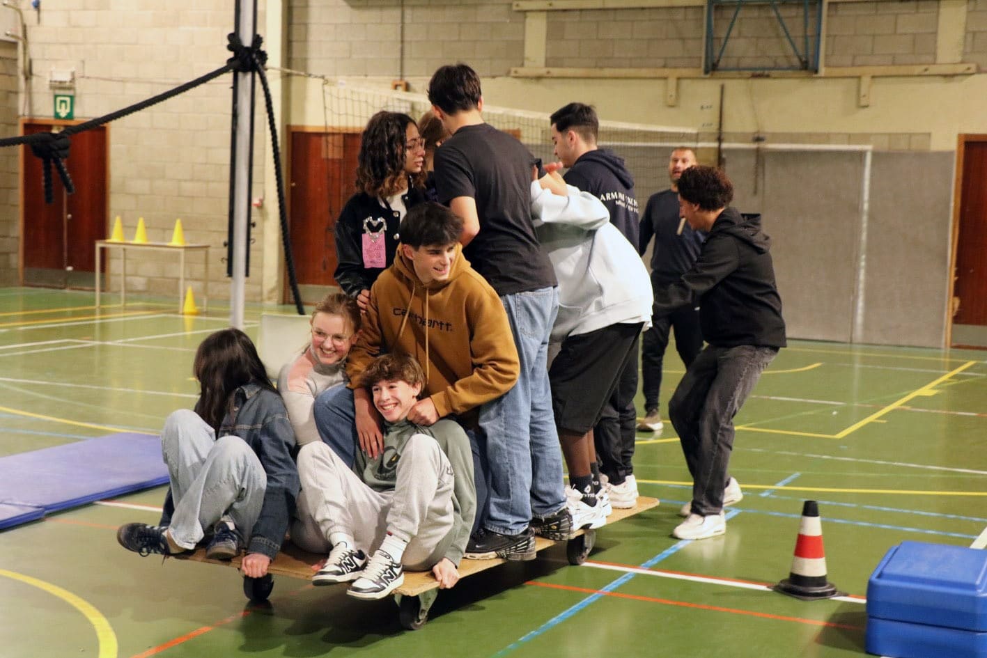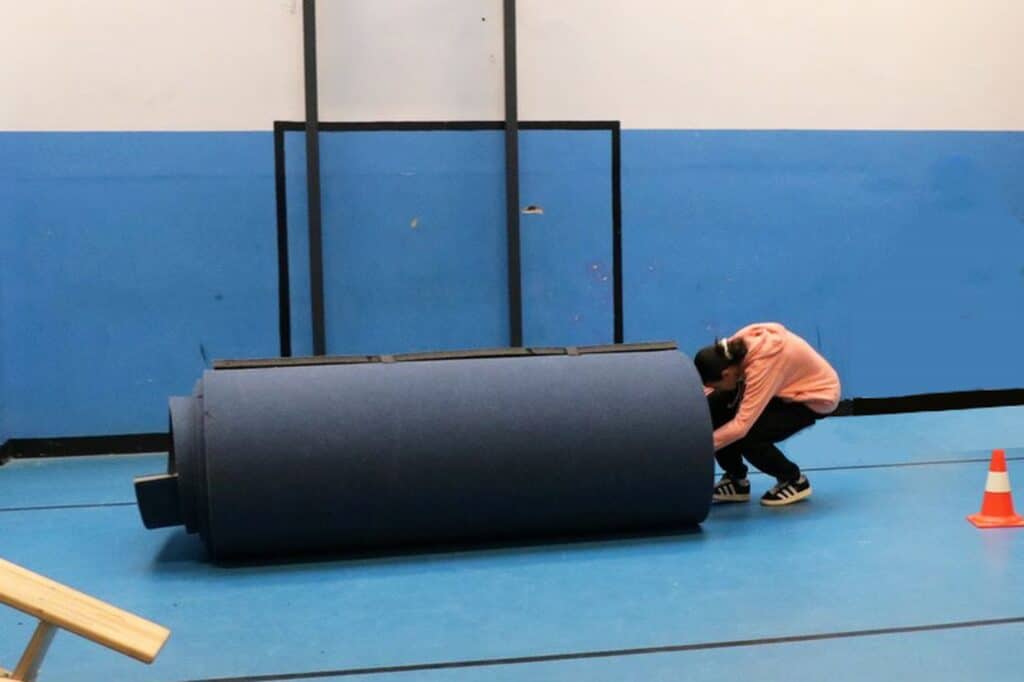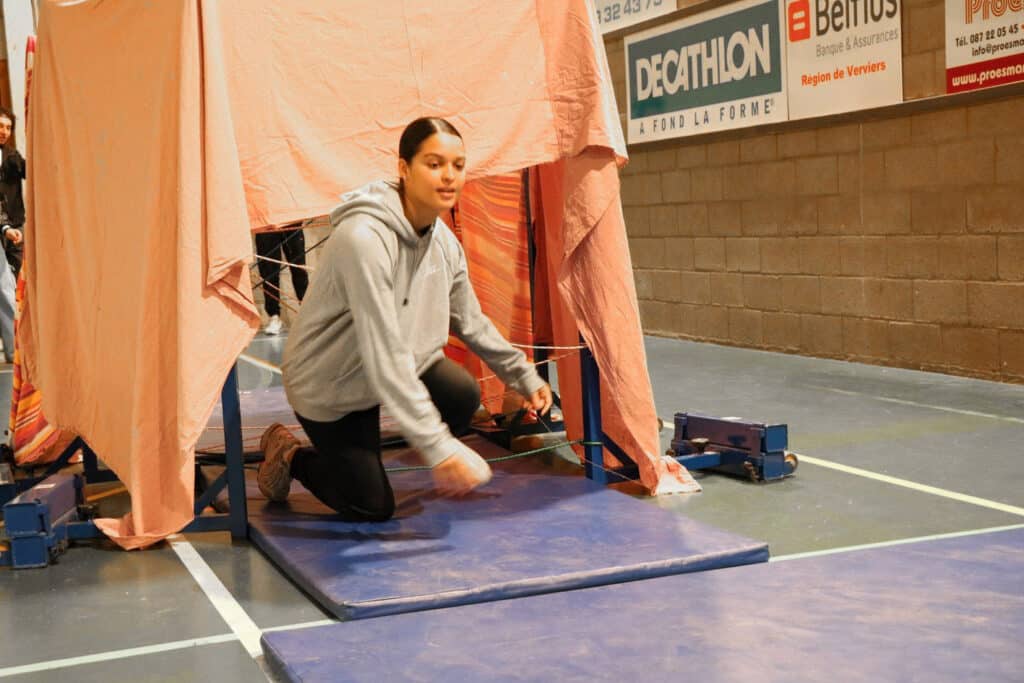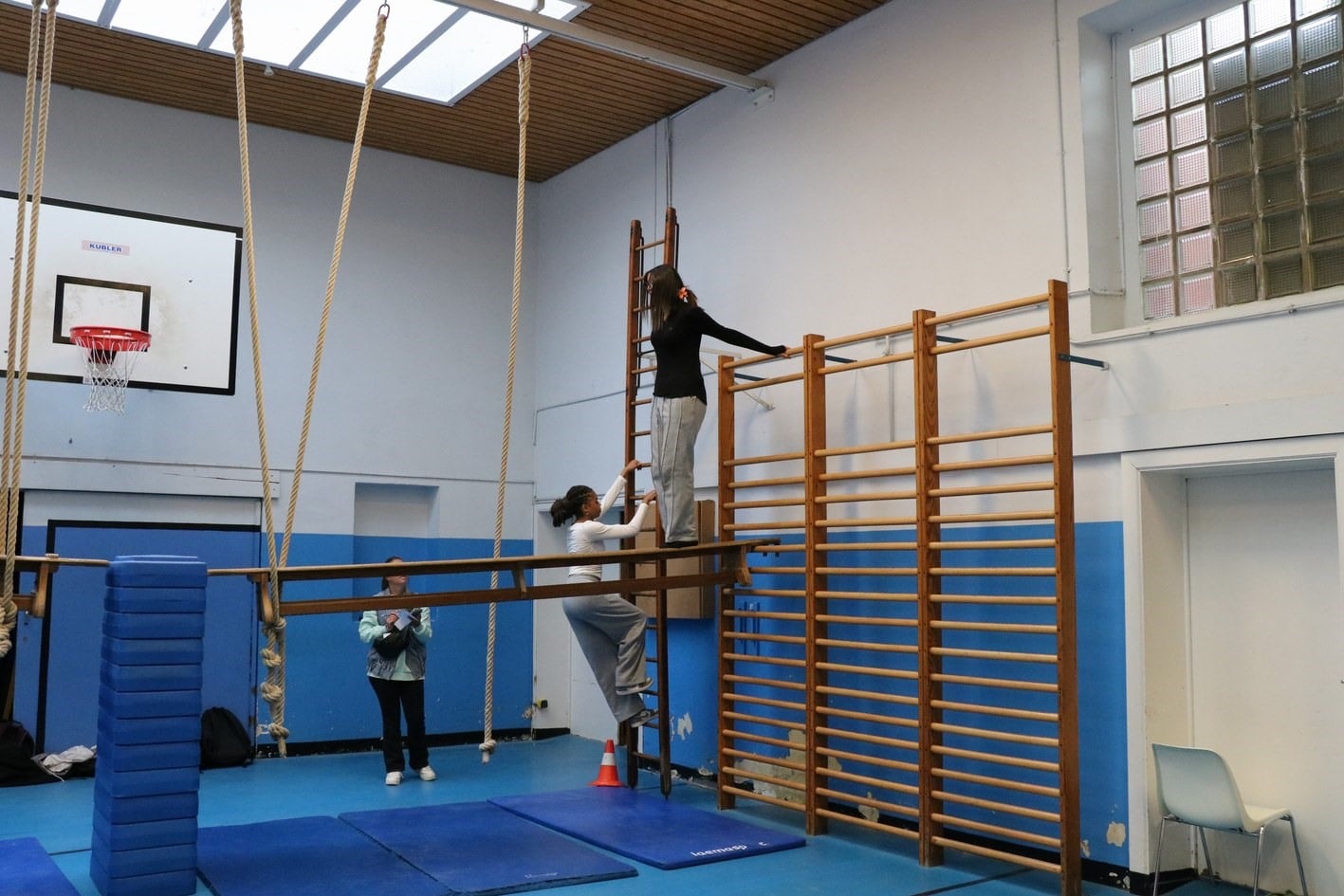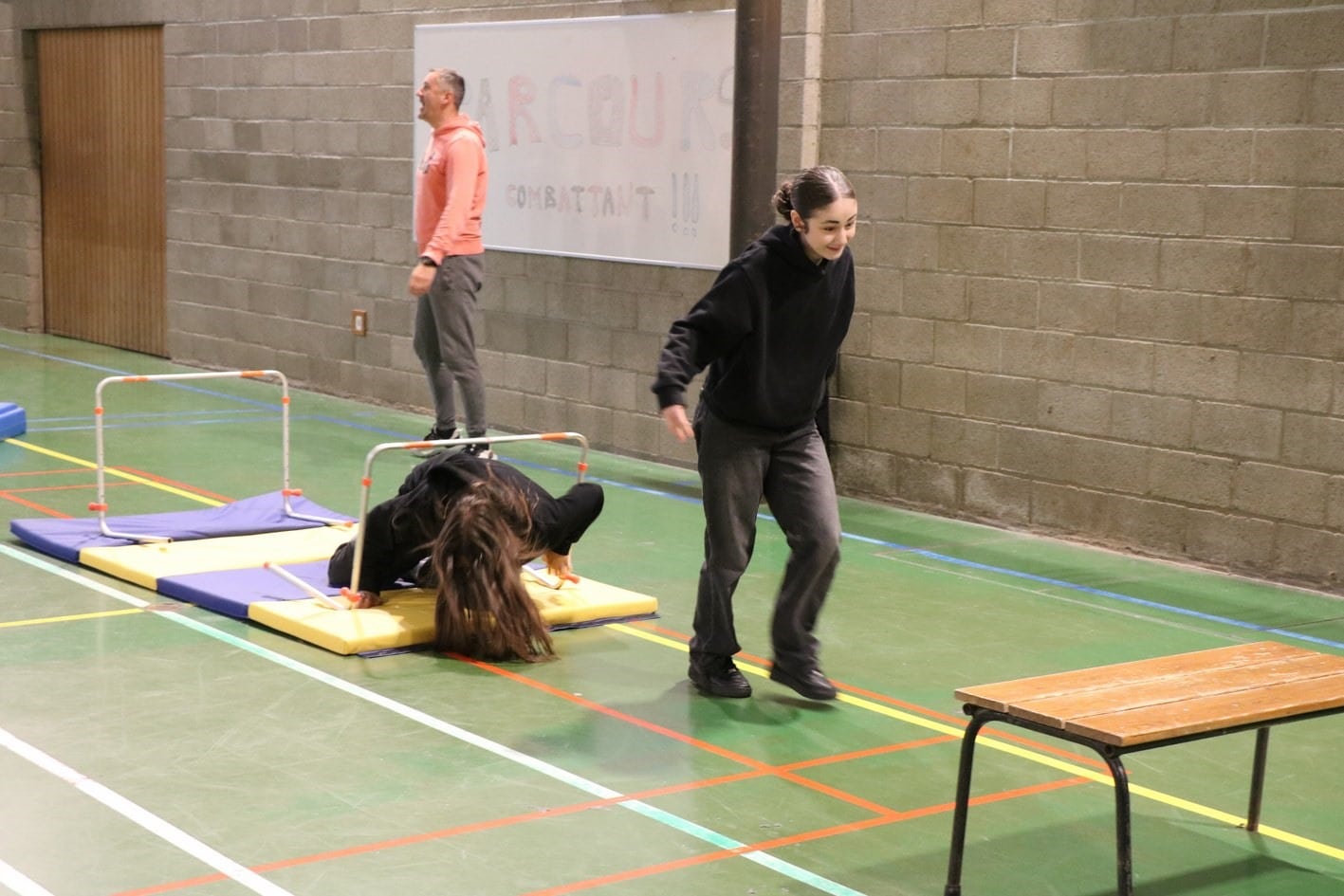 un parcours du combattant dans les 2 halls de sport;