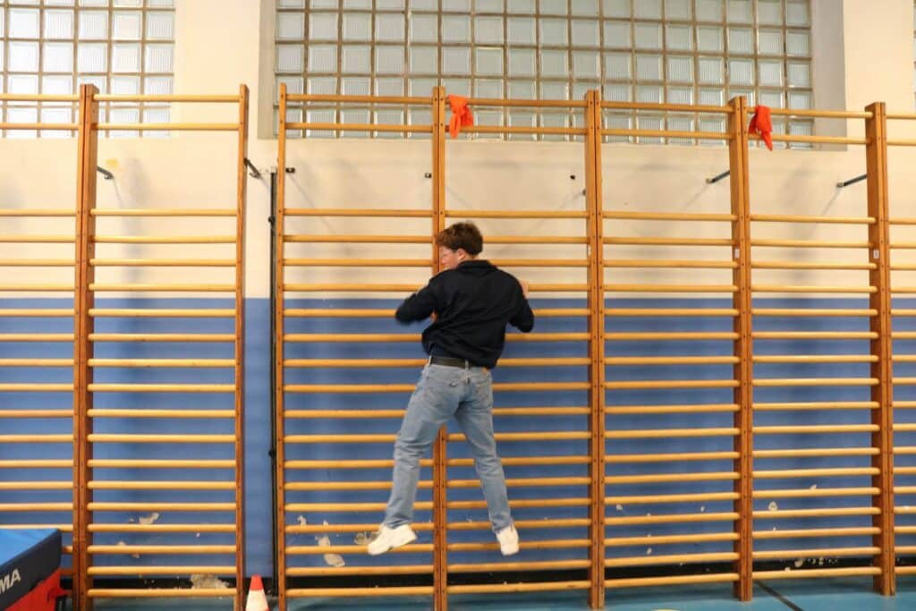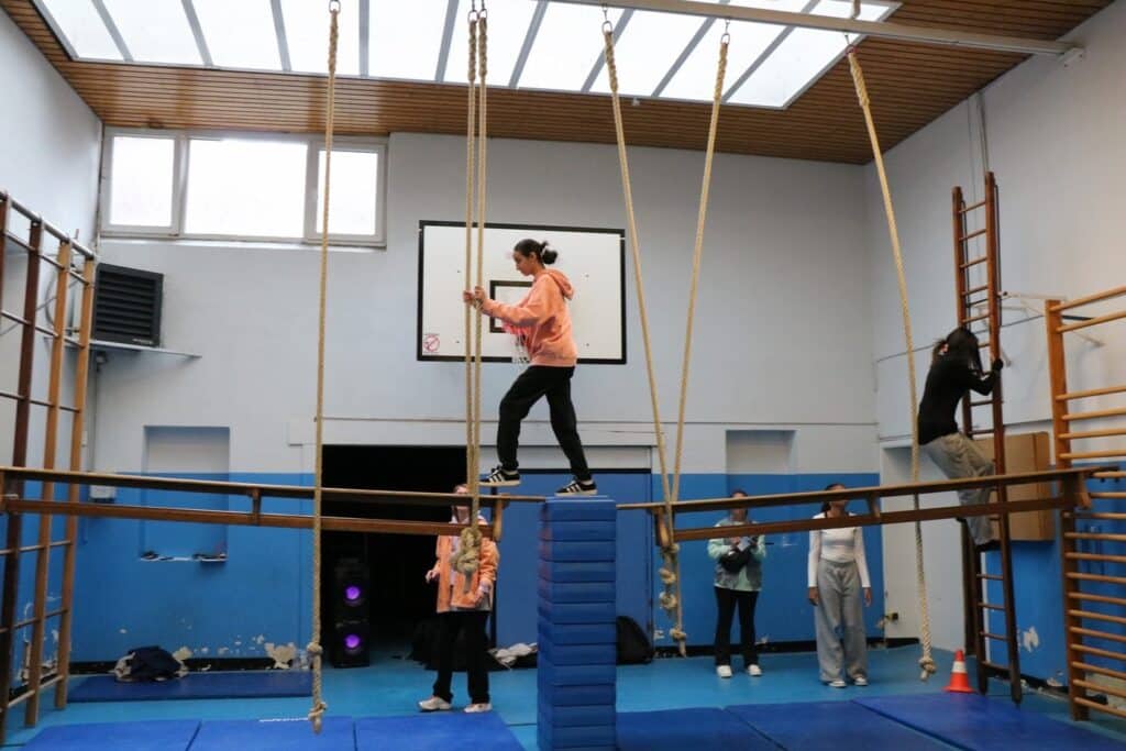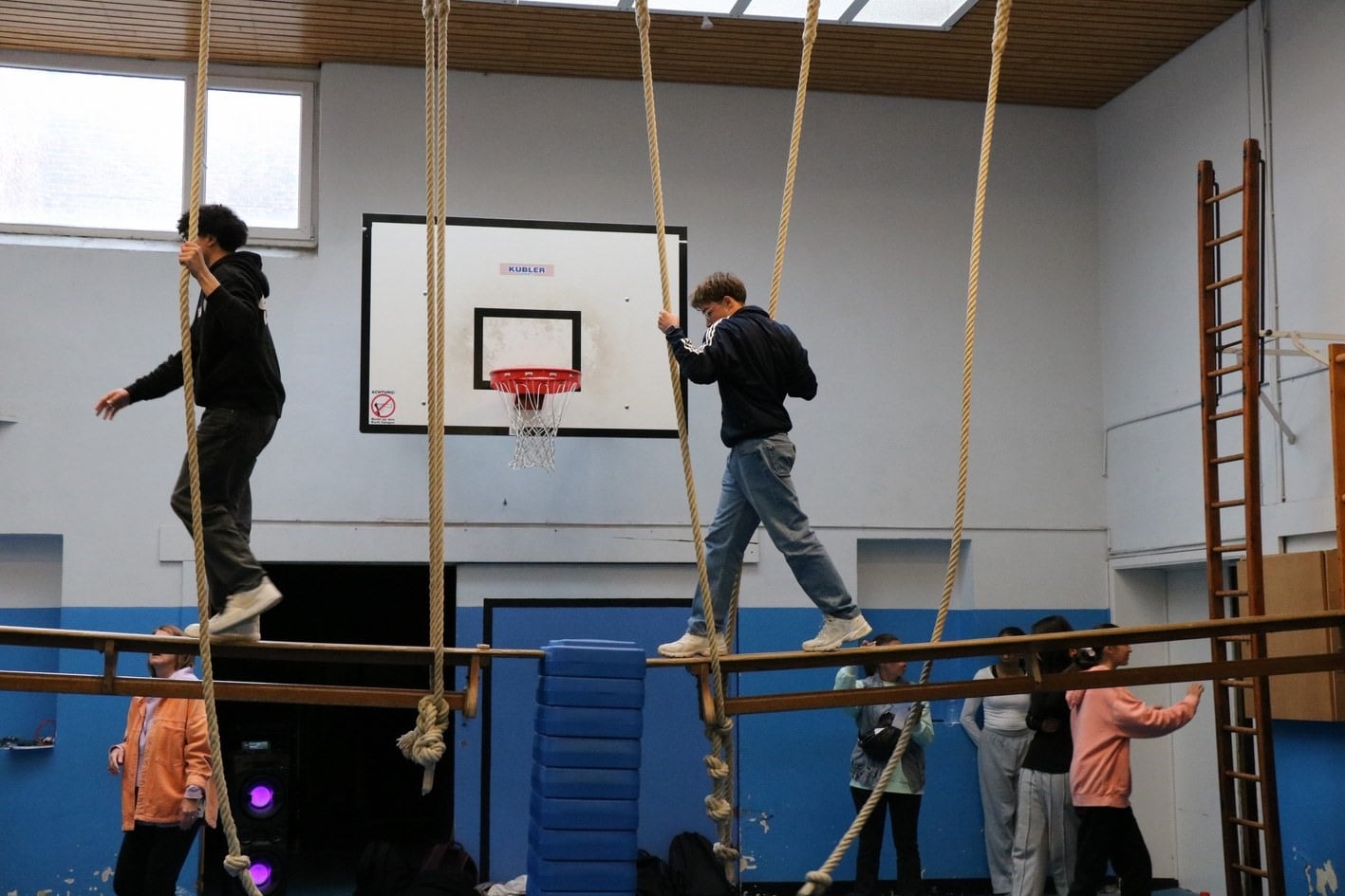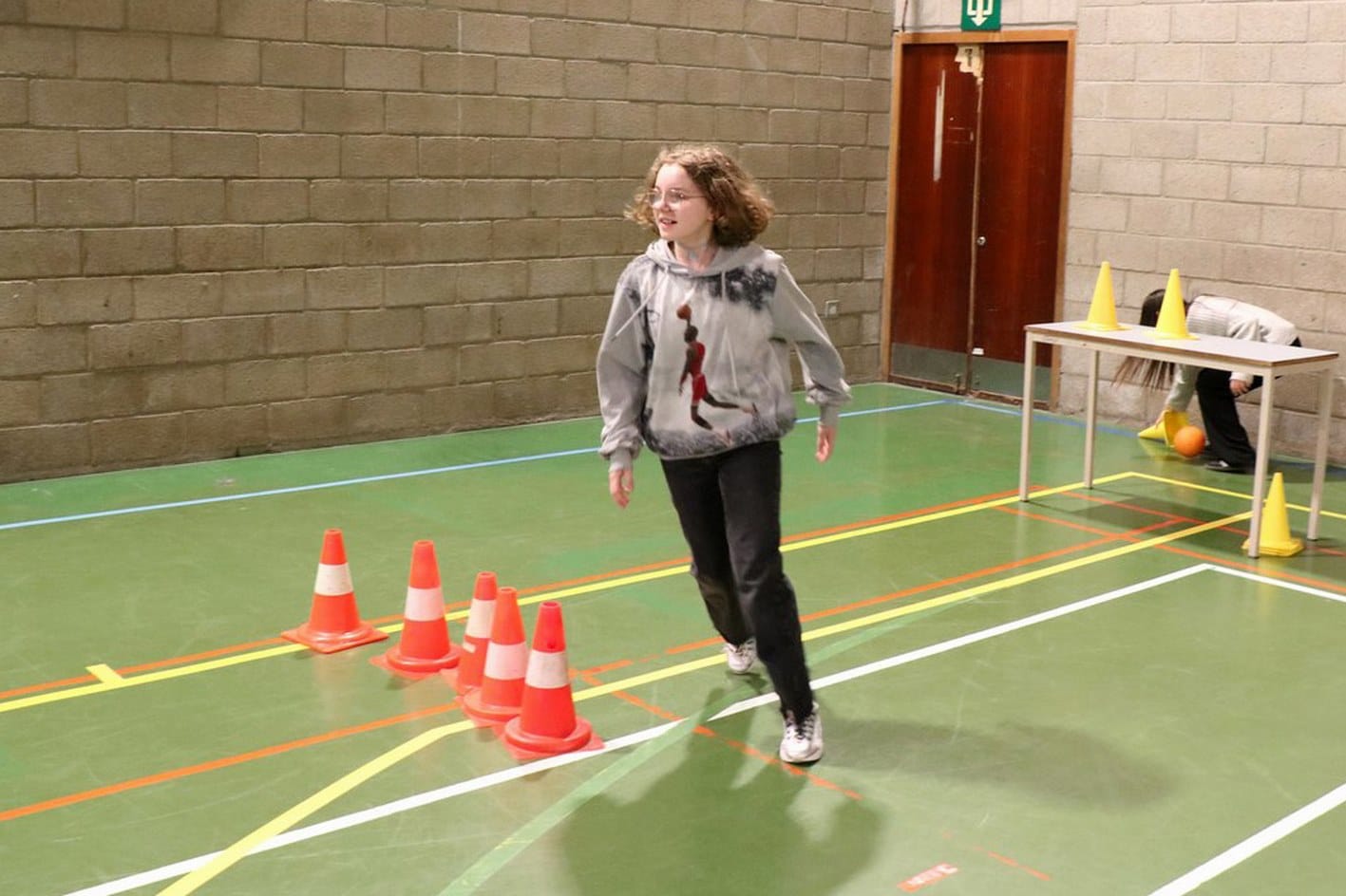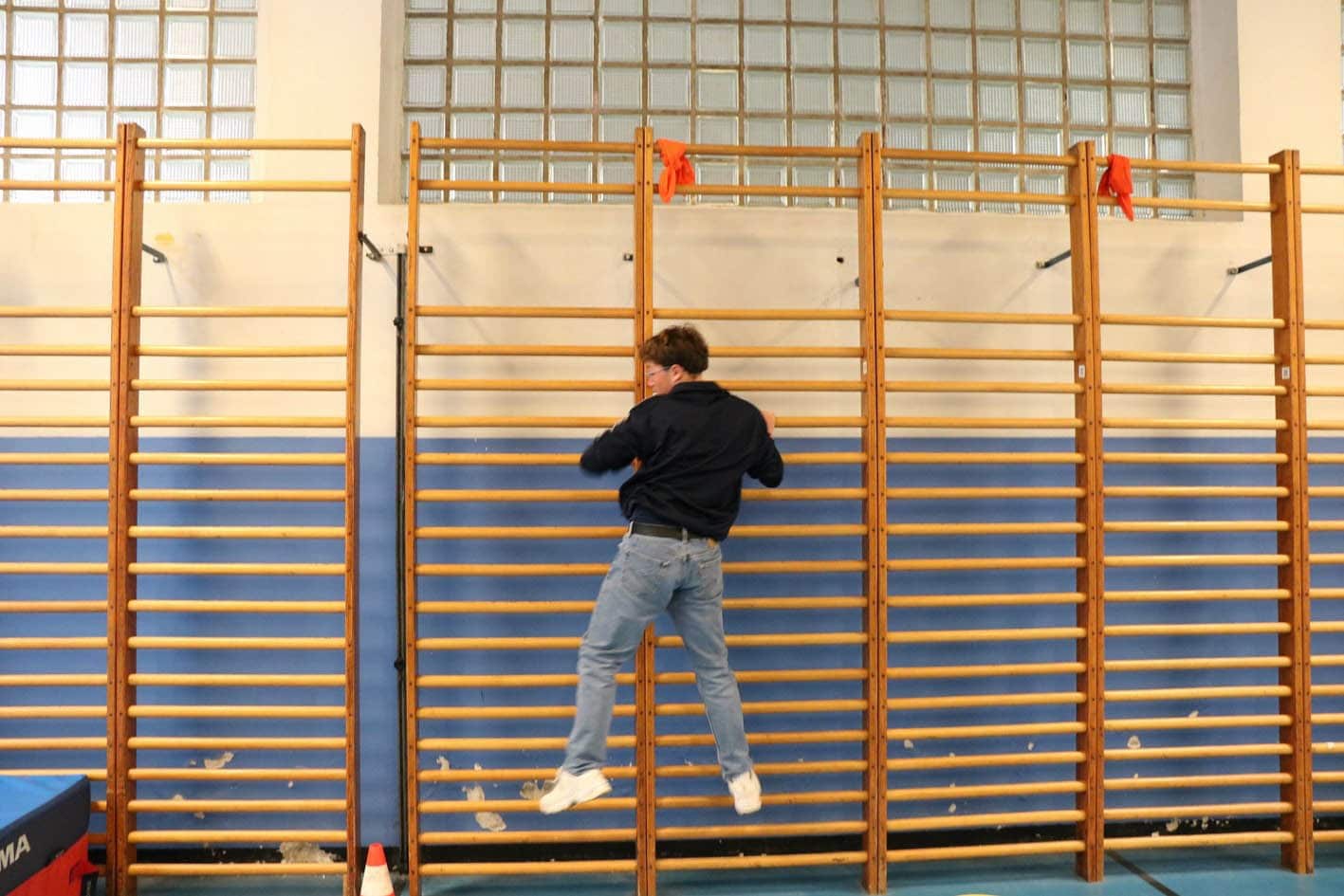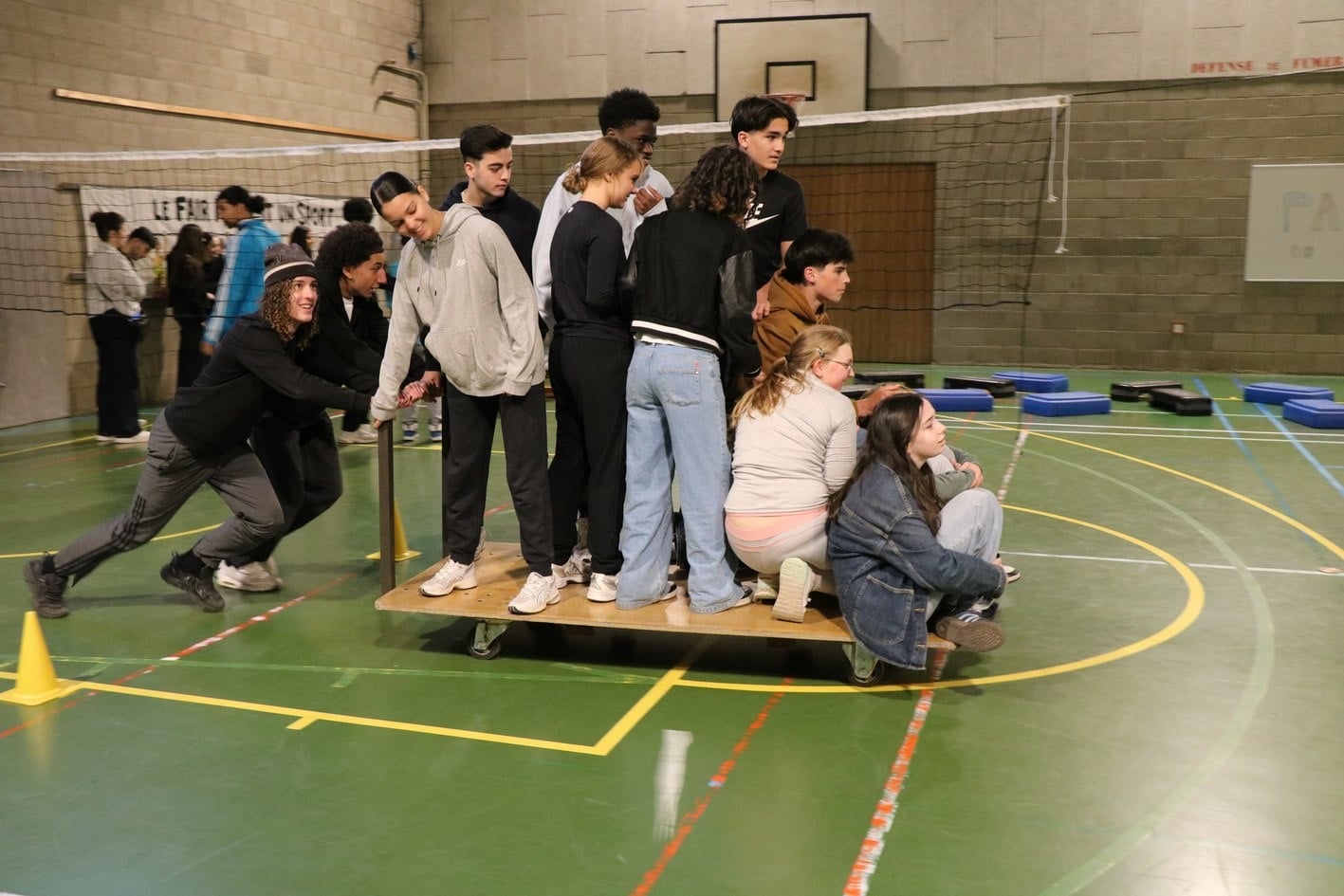 un parcours du combattant dans les 2 halls de sport;