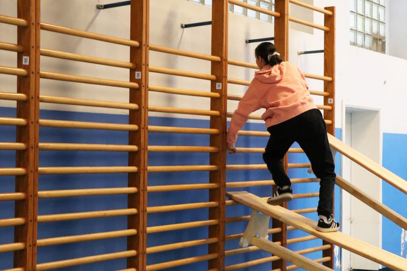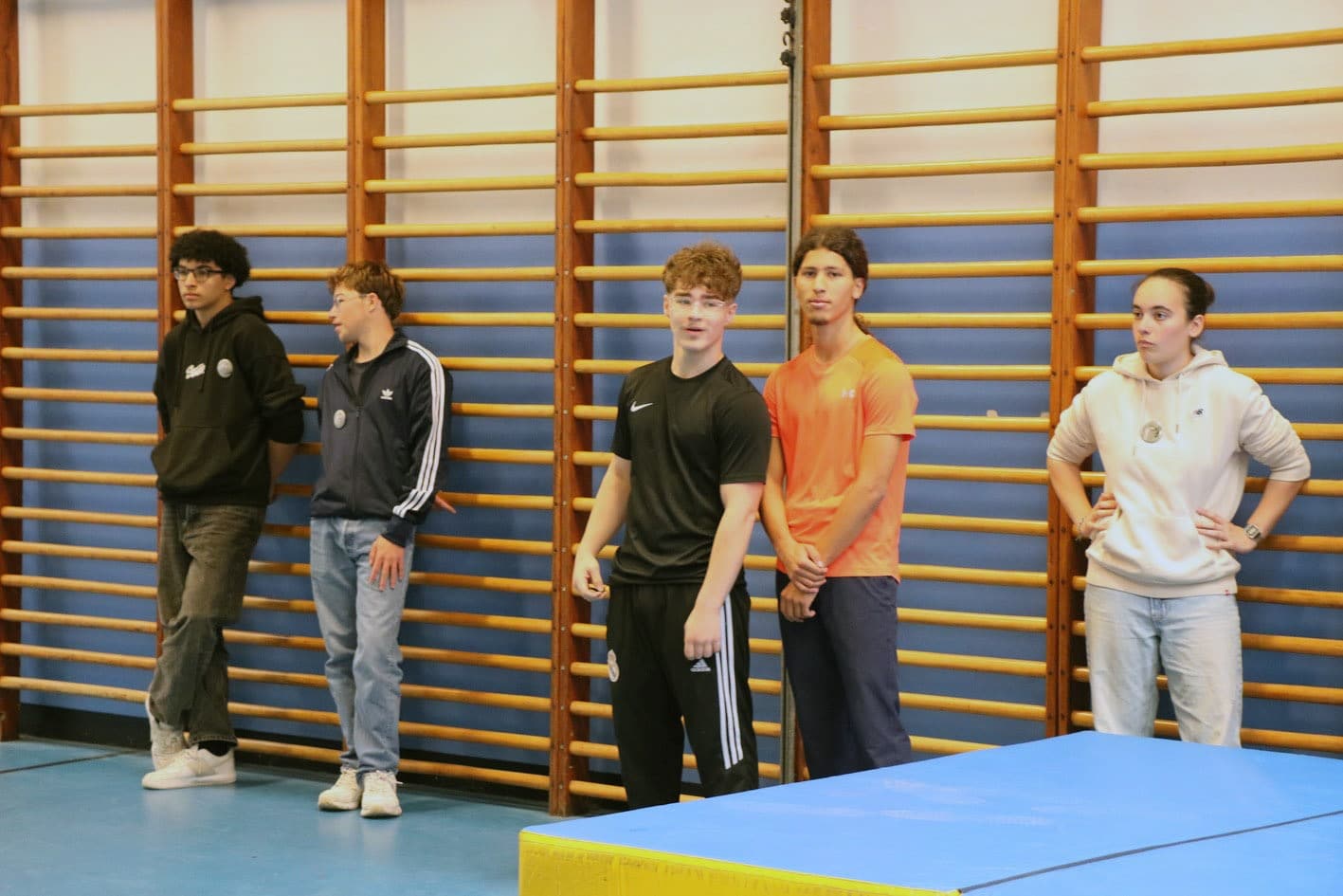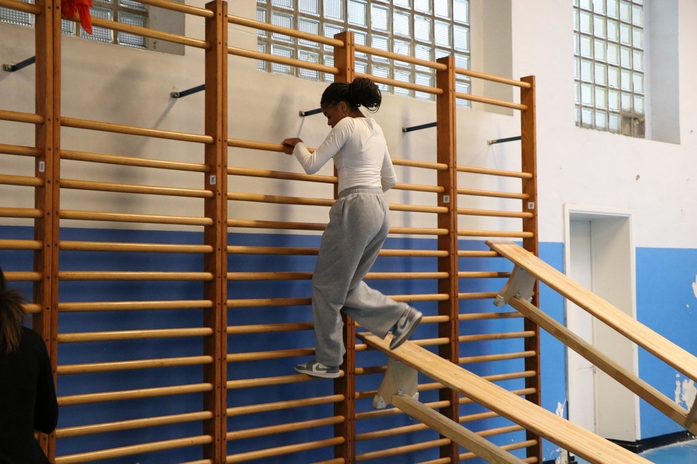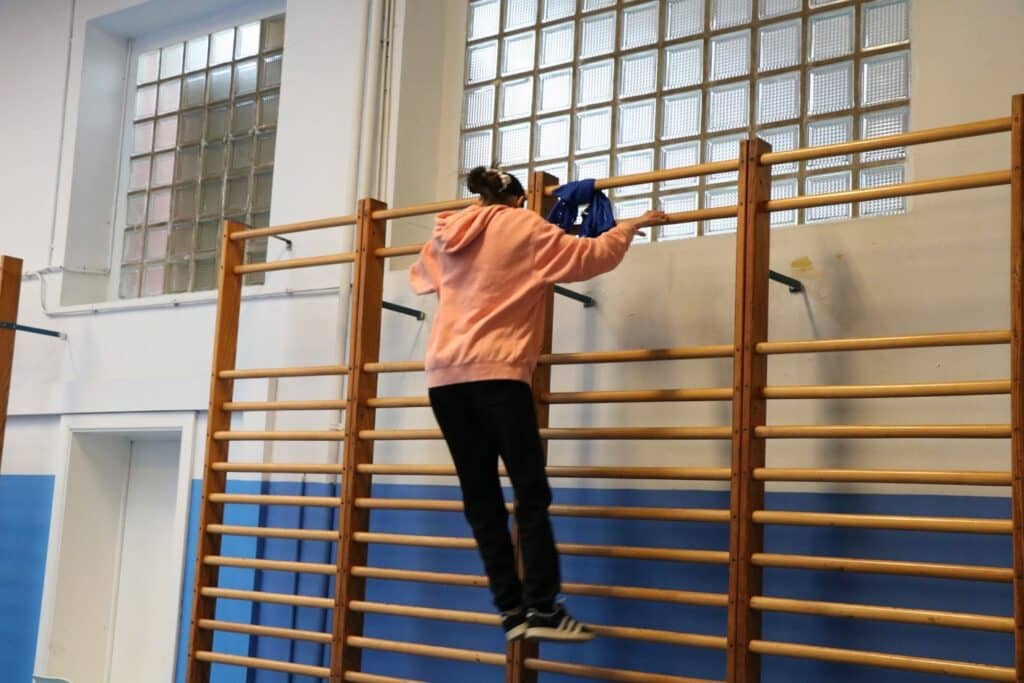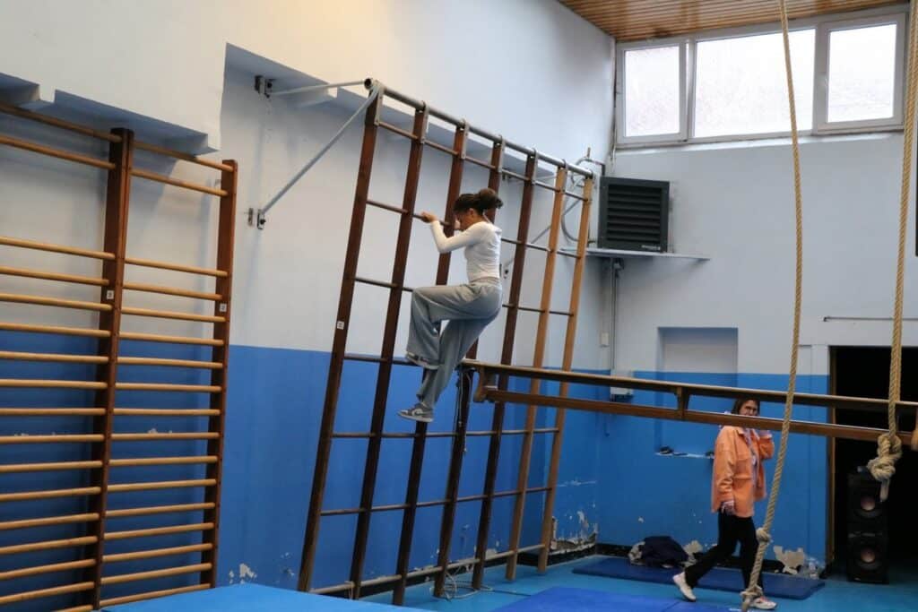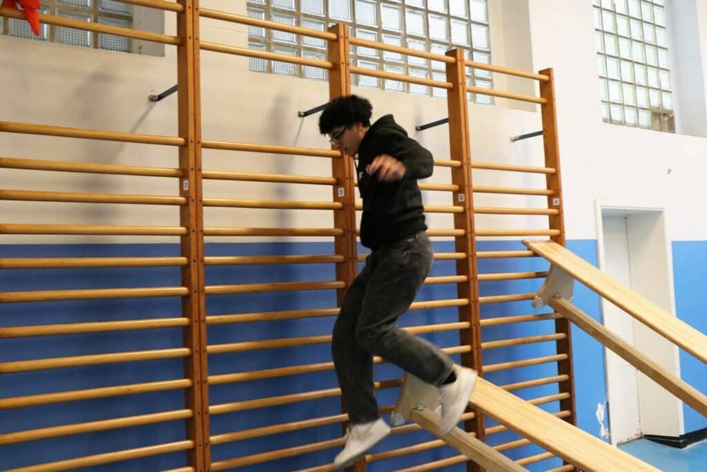 un parcours du combattant dans les 2 halls de sport;