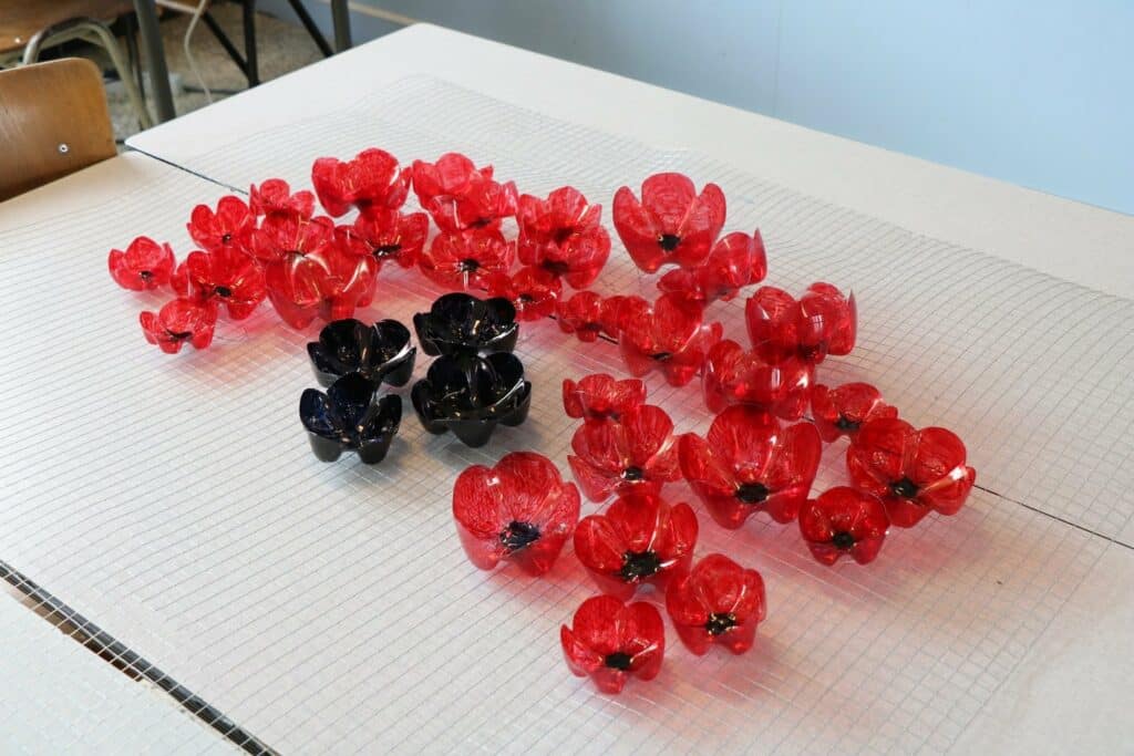 une activité créative pour réaliser une fresque géante avec des coquelicots (symbole du souvenir);