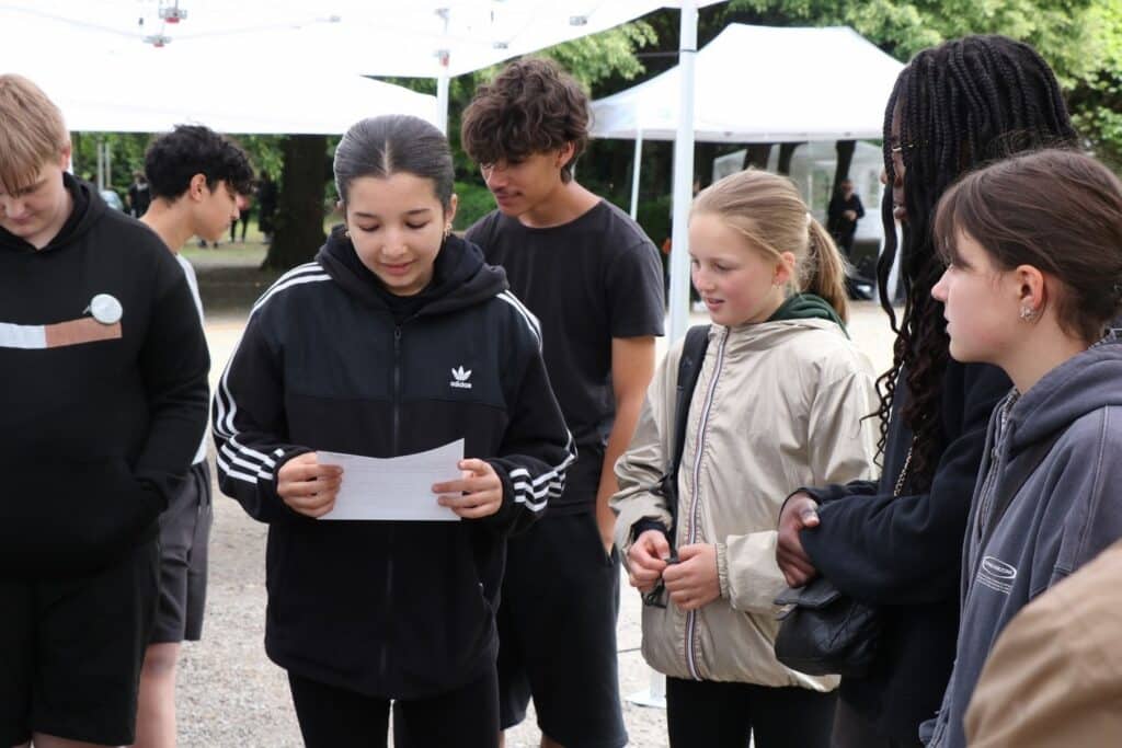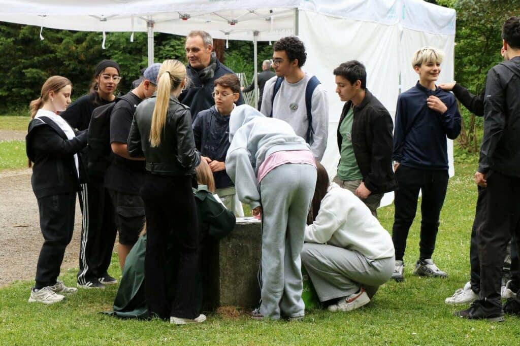 Dès 9h00, 21 groupes ont participé à des animations dans l’école pendant que 21 autres groupes se répartissaient sur 4 parcours de 5 km différents à travers la ville pour réaliser 5 défis méticuleusement préparés.