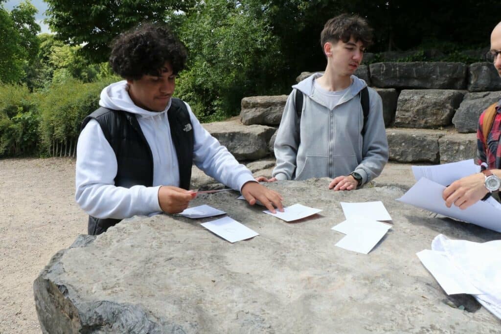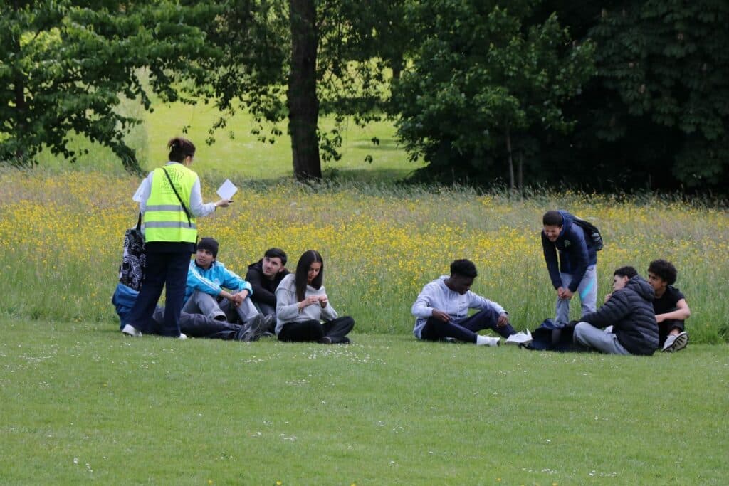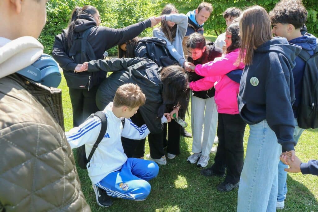 Après le repas de midi, les 42 groupes ont été inversés. Ceux qui étaient à l’école pour des activités le matin sont allés marcher et ceux qui marchaient le matin ont participé à des animations dans l’école.