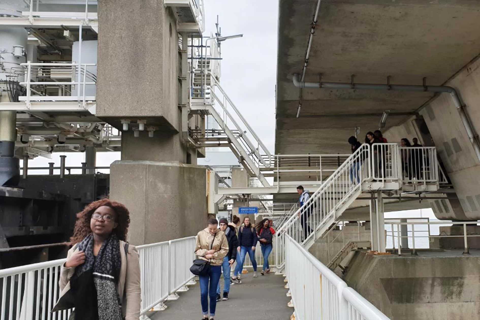 Après avoir visionné un film retraçant la construction du barrage anti-tempête, nous avons pu visiter celui-ci avec une guide.