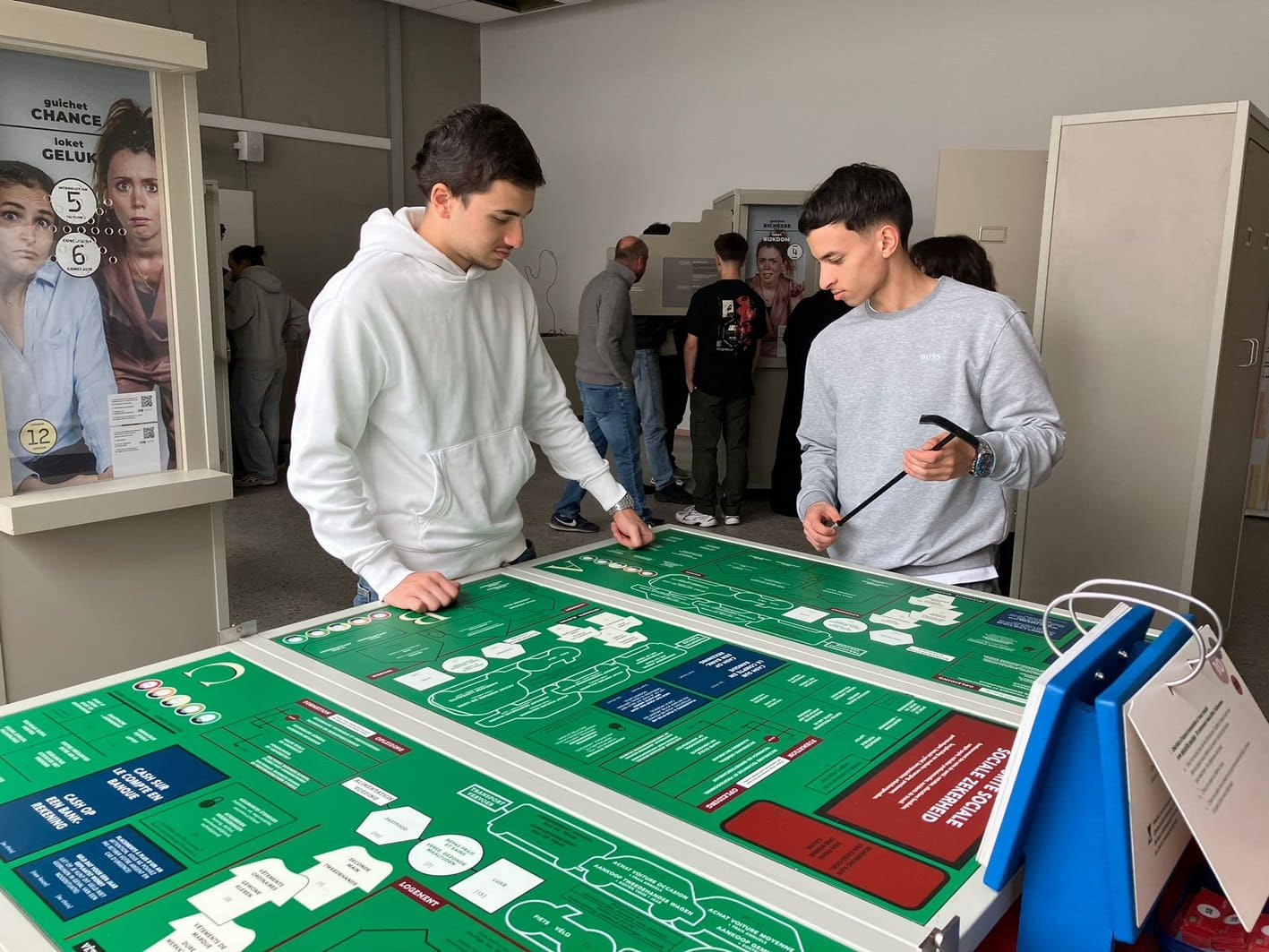 Le vendredi 25 avril, c’était au tour des 5e et 6e Sciences Economiques, accompagnés de Mme Henrar et de M. Taquet, de se rendre à “Helmo Campus Guillemins” pour visiter l’exposition “BELvue – Mystère des Finances”.  Ce fut également l’occasion de bénéficier d’une visite guidée du campus.  M. Detaille, le directeur du cursus Comptabilité, en a profité pour expliquer aux élèves les différentes formations qui y sont organisées, répondant à leurs nombreuses questions sur les études supérieures de type économique.