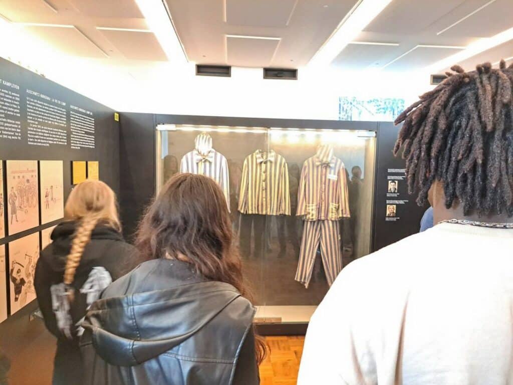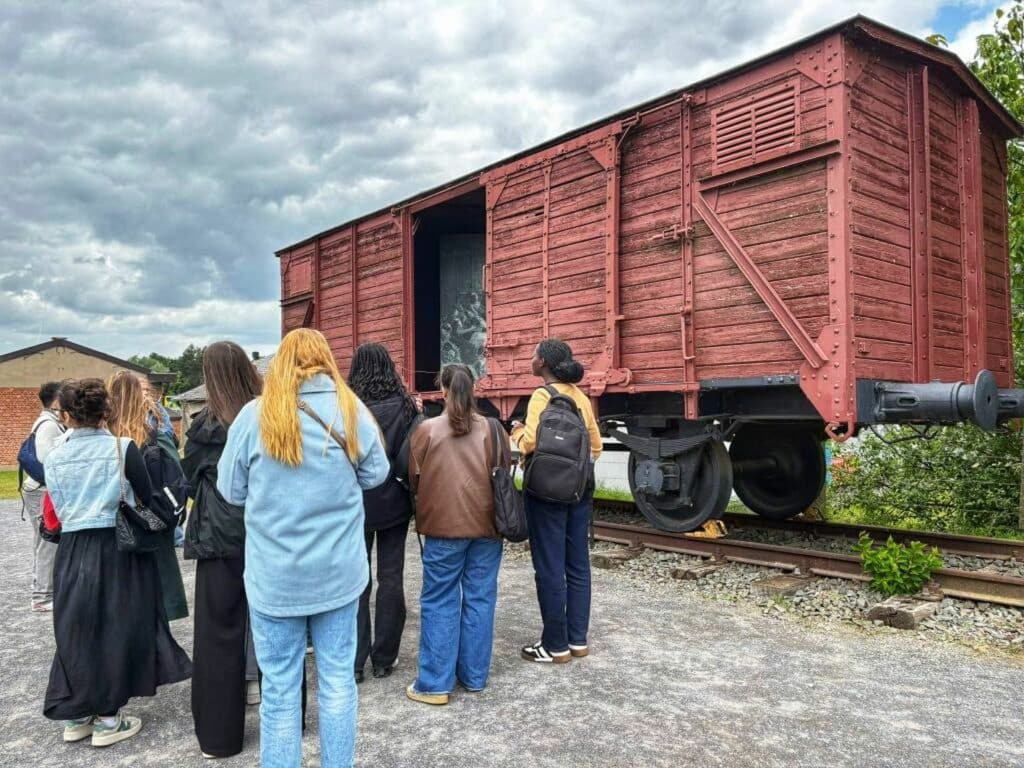 Nos étudiants ont ensuite pris la route de la Caserne Dossin où ils ont visité l’exposition permanente qui est principalement consacrée à la persécution des Juifs et des Roms en Belgique pendant la Seconde Guerre mondiale. Ils y ont découvert l’histoire belge de la Shoah à travers des témoignages d’exclusion, de discrimination et de violence de masse, mais aussi d’espoir et de résistance.