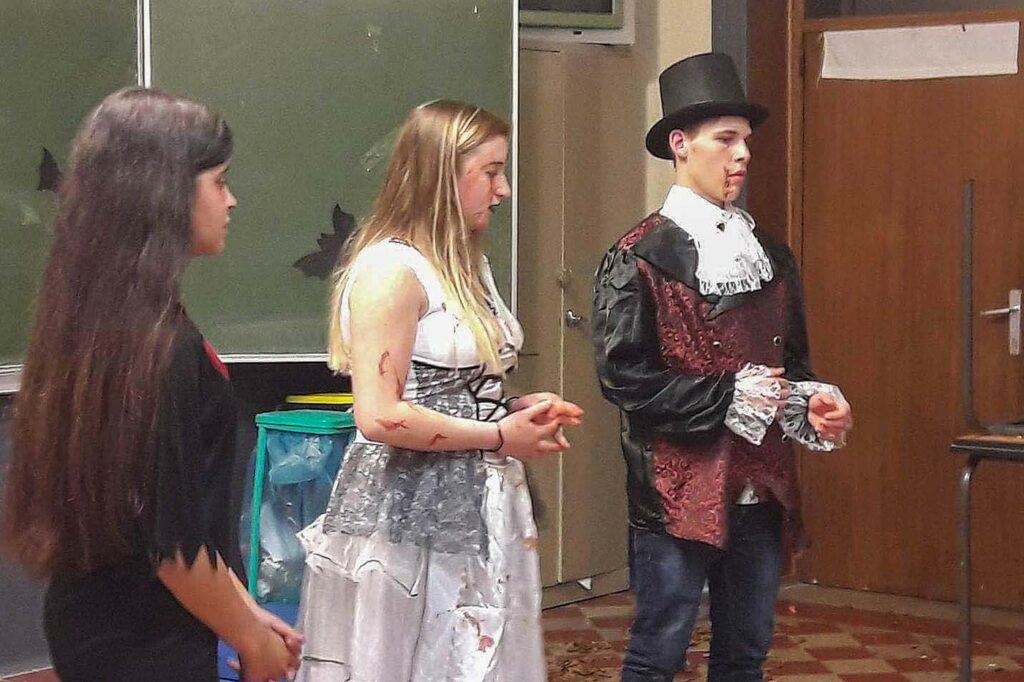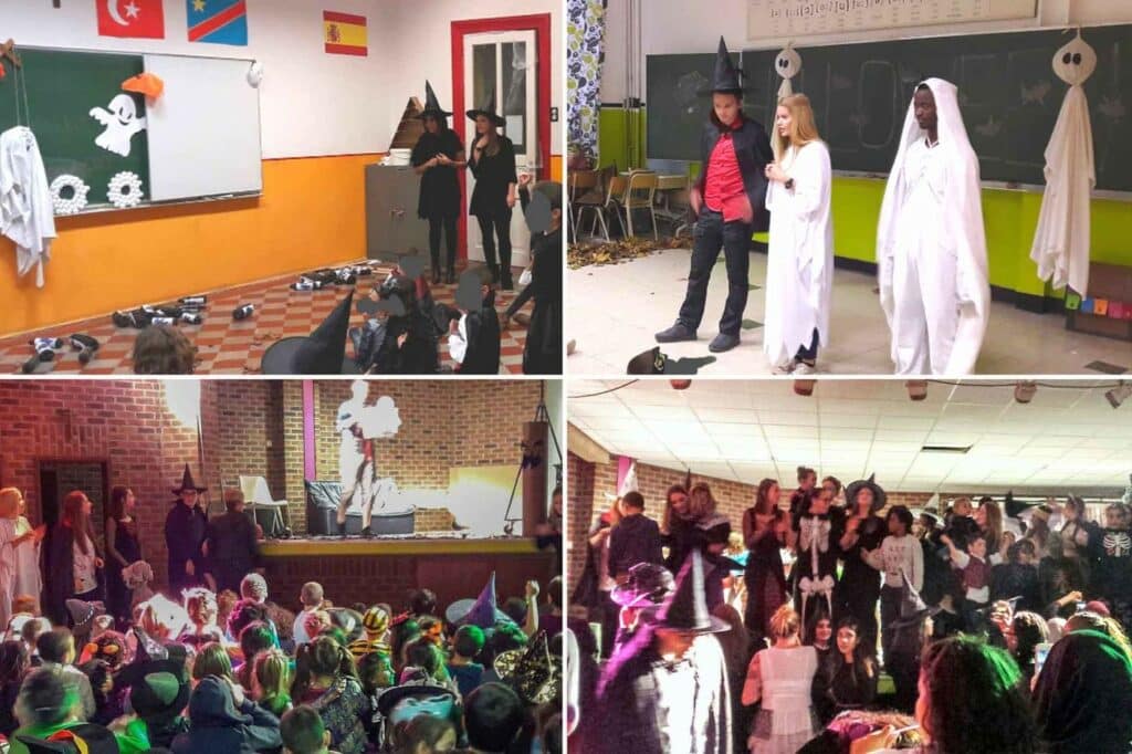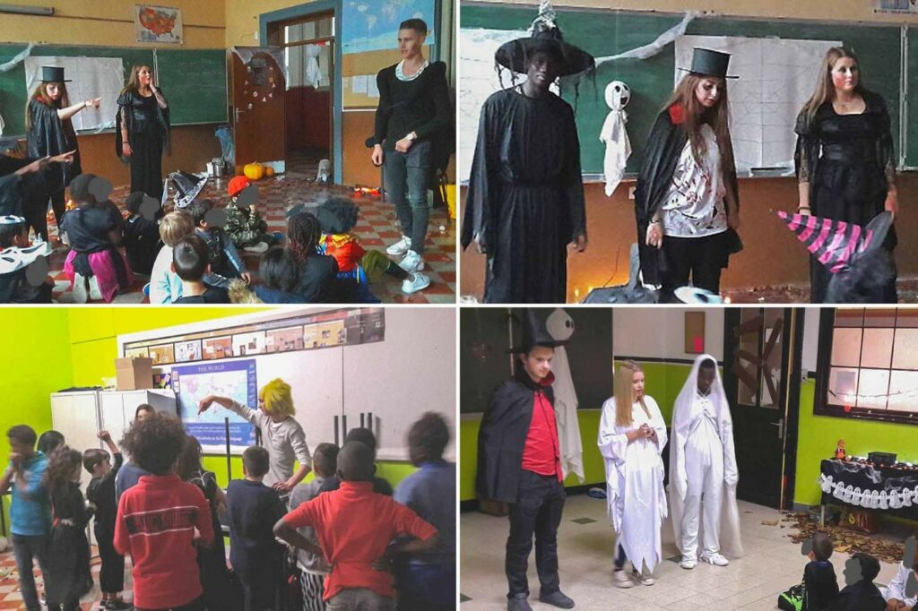 Pendant leurs cours d’option, les élèves ont créé une histoire sur le thème d’Halloween, ont conçu des jeux et des décors, afin d’animer une activité pour les enfants pendant une durée de trois heures. Cette préparation a duré environ un mois.
