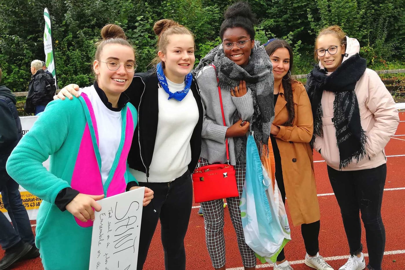 L’équipe comptait cette année 87 membres. Les élèves des 3es secondaires B et G étaient présents en masse, motivés par Mme Denoël, et tous portant un accessoire sur un thème bien précis.