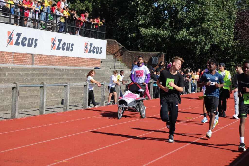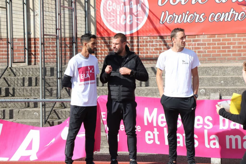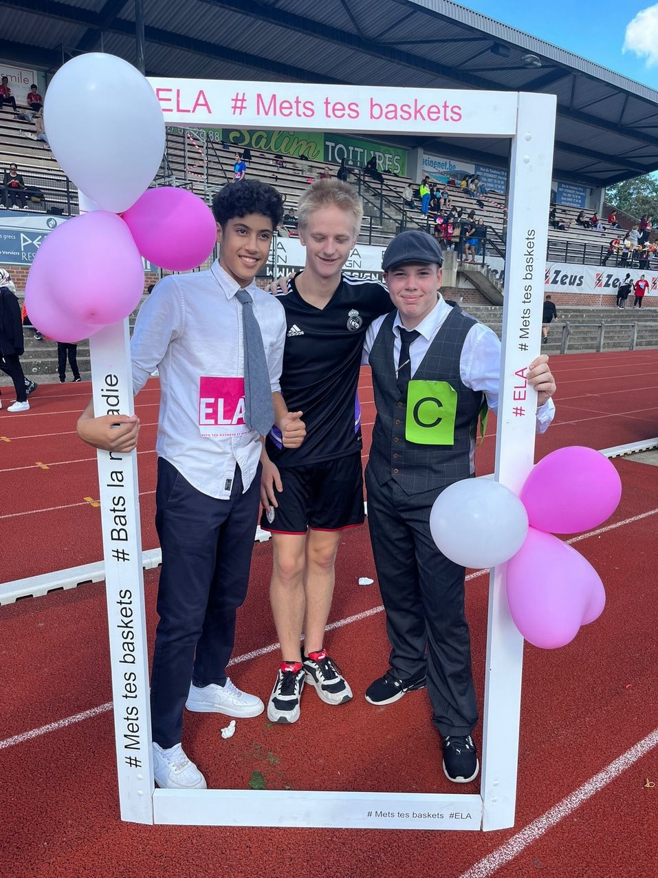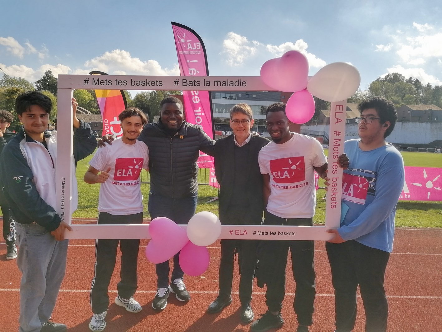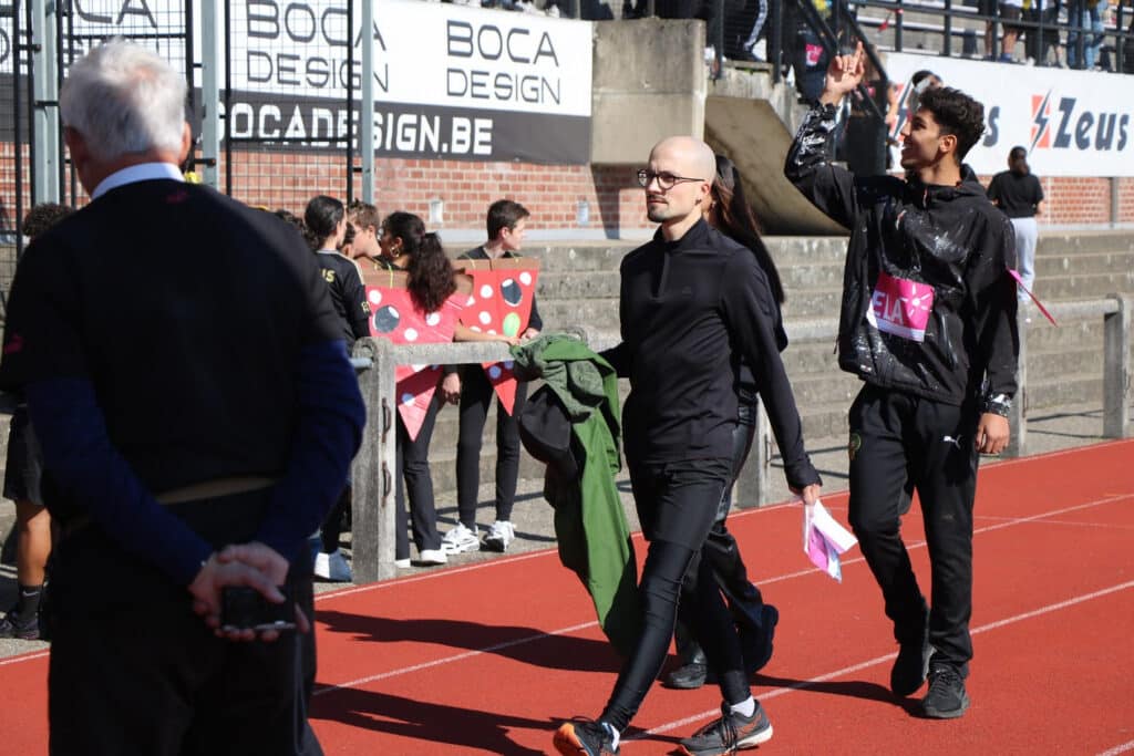 Didier Boclinville (parrain de ELA) a animé l’après-midi sportive avec talent. Tarik Moukrime, athlète international et ancien élève de l’Institut, était présent pour soutenir nos élèves. Comme on peut le voir sur nos photos, Tarik a parcouru plusieurs tours avec Romain, le fils de Mme Véronique Moureau, professeure à l’Institut. Cihan Çanak (joueur du Standard de Liège) et Pol José Mpoku (joueur de foot professionnel ayant joué au Standard) se sont aimablement déplacés pour soutenir les élèves et l’association ELA. Antoine Lukoki, échevin de la ville de Verviers et ancien élève de notre école, nous a aussi honorés de sa présence.