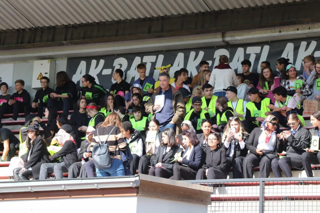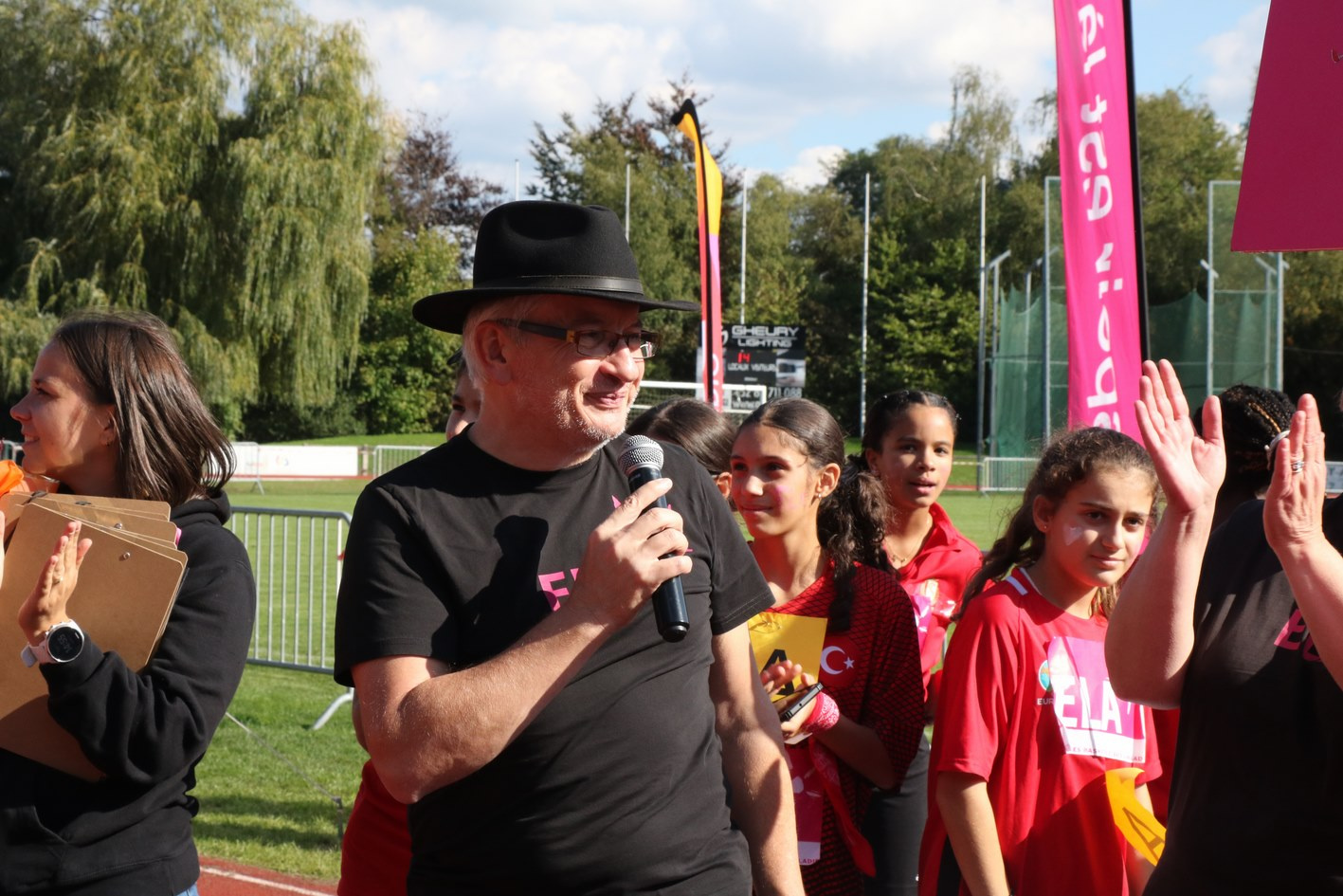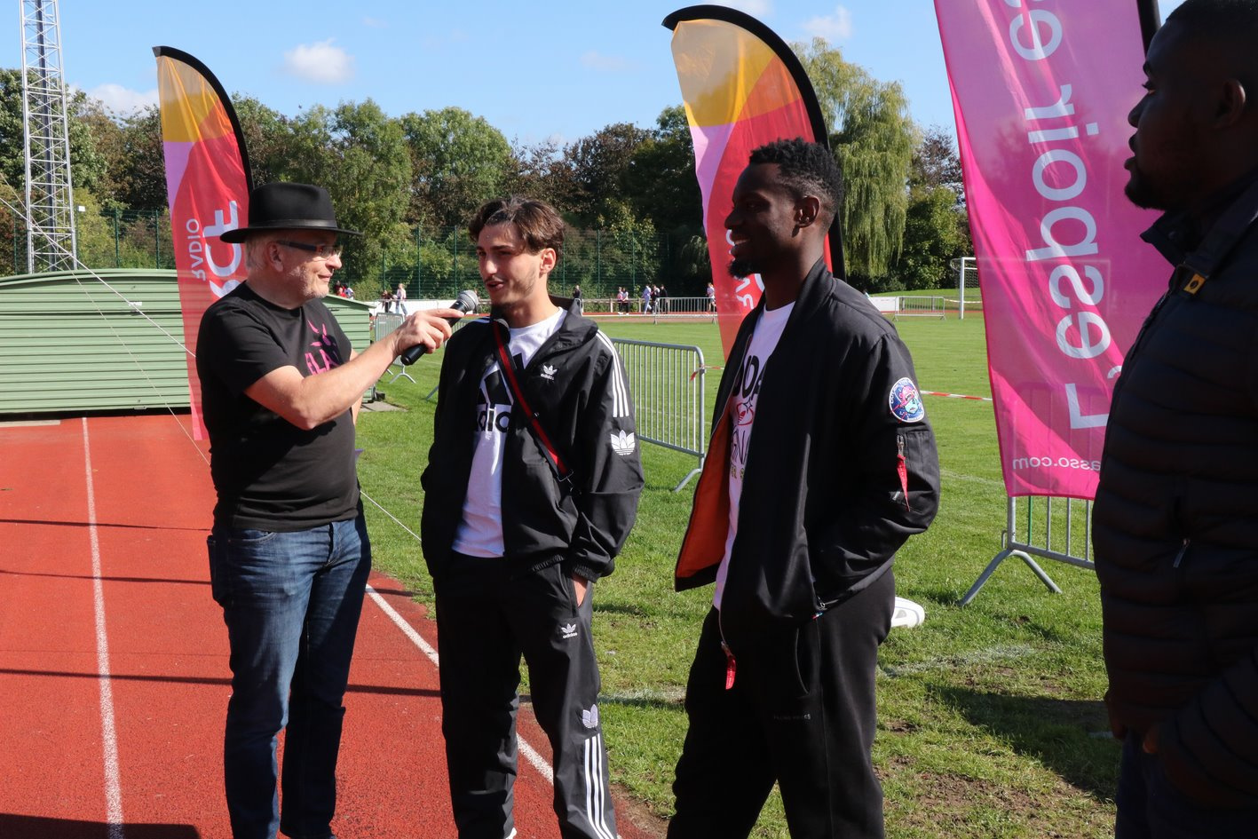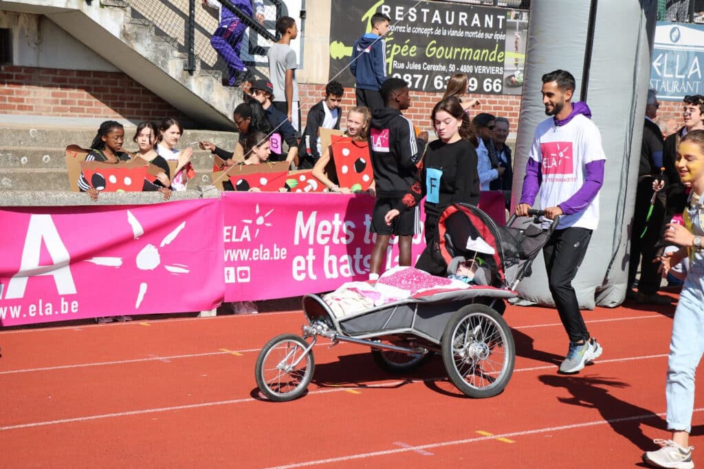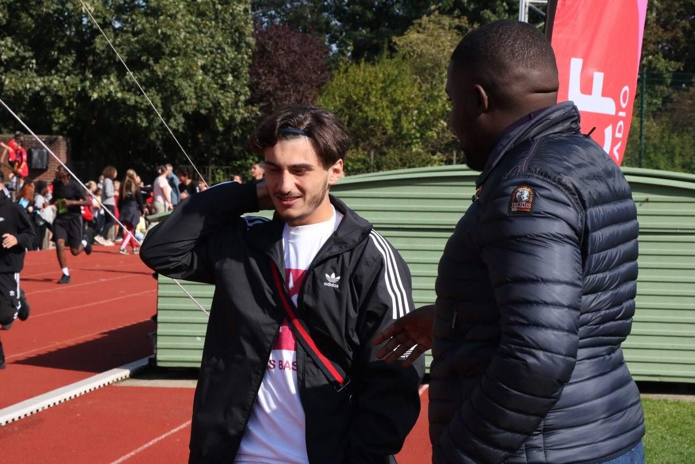 Didier Boclinville (parrain de ELA) a animé l’après-midi sportive avec talent. Tarik Moukrime, athlète international et ancien élève de l’Institut, était présent pour soutenir nos élèves. Comme on peut le voir sur nos photos, Tarik a parcouru plusieurs tours avec Romain, le fils de Mme Véronique Moureau, professeure à l’Institut. Cihan Çanak (joueur du Standard de Liège) et Pol José Mpoku (joueur de foot professionnel ayant joué au Standard) se sont aimablement déplacés pour soutenir les élèves et l’association ELA. Antoine Lukoki, échevin de la ville de Verviers et ancien élève de notre école, nous a aussi honorés de sa présence.