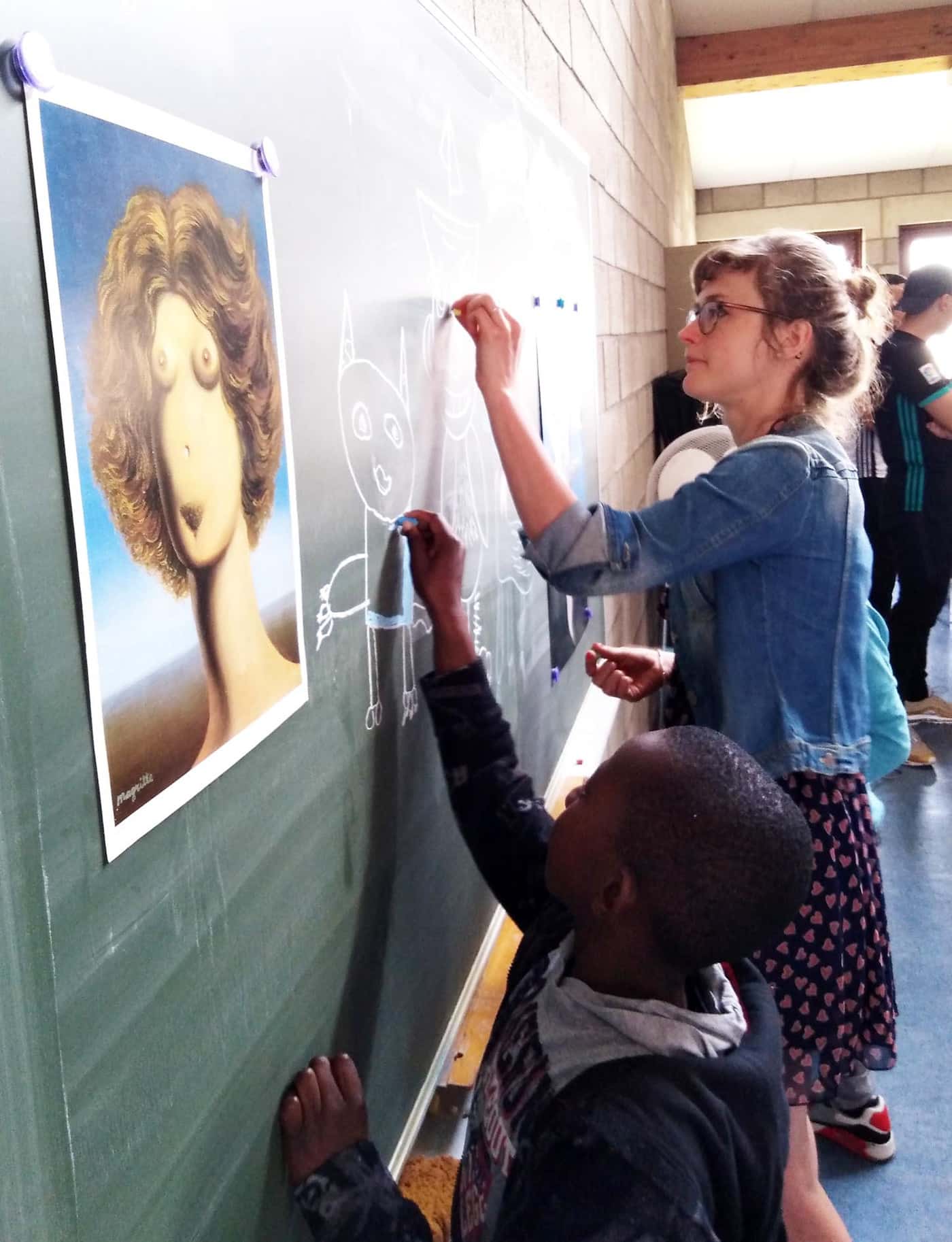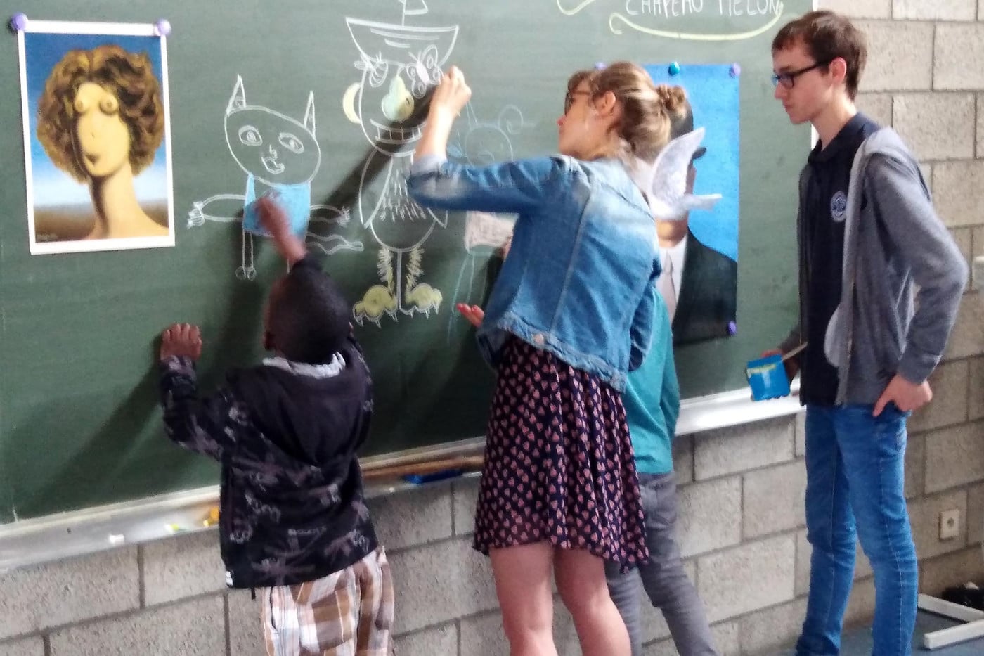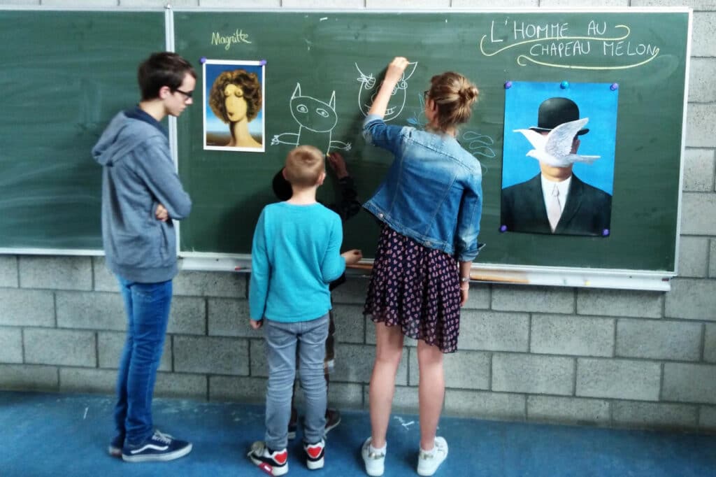 Les enfants ont eu l’occasion de découvrir des tableaux du célèbre peintre belge, de participer à un atelier d’écriture automatique, de s’adonner au jeu du cadavre exquis, etc., le tout sous la houlette de leurs aînés qui se sont révélés de parfaits animateurs.