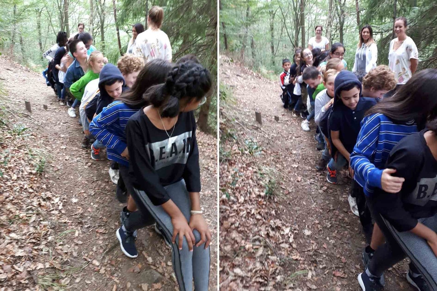 Le lendemain a commencé par un petit déjeuner pris en commun. Ensuite, pour aider chacun à vivre sereinement le passage en secondaire, une balade a été organisée qui proposait différents ateliers.