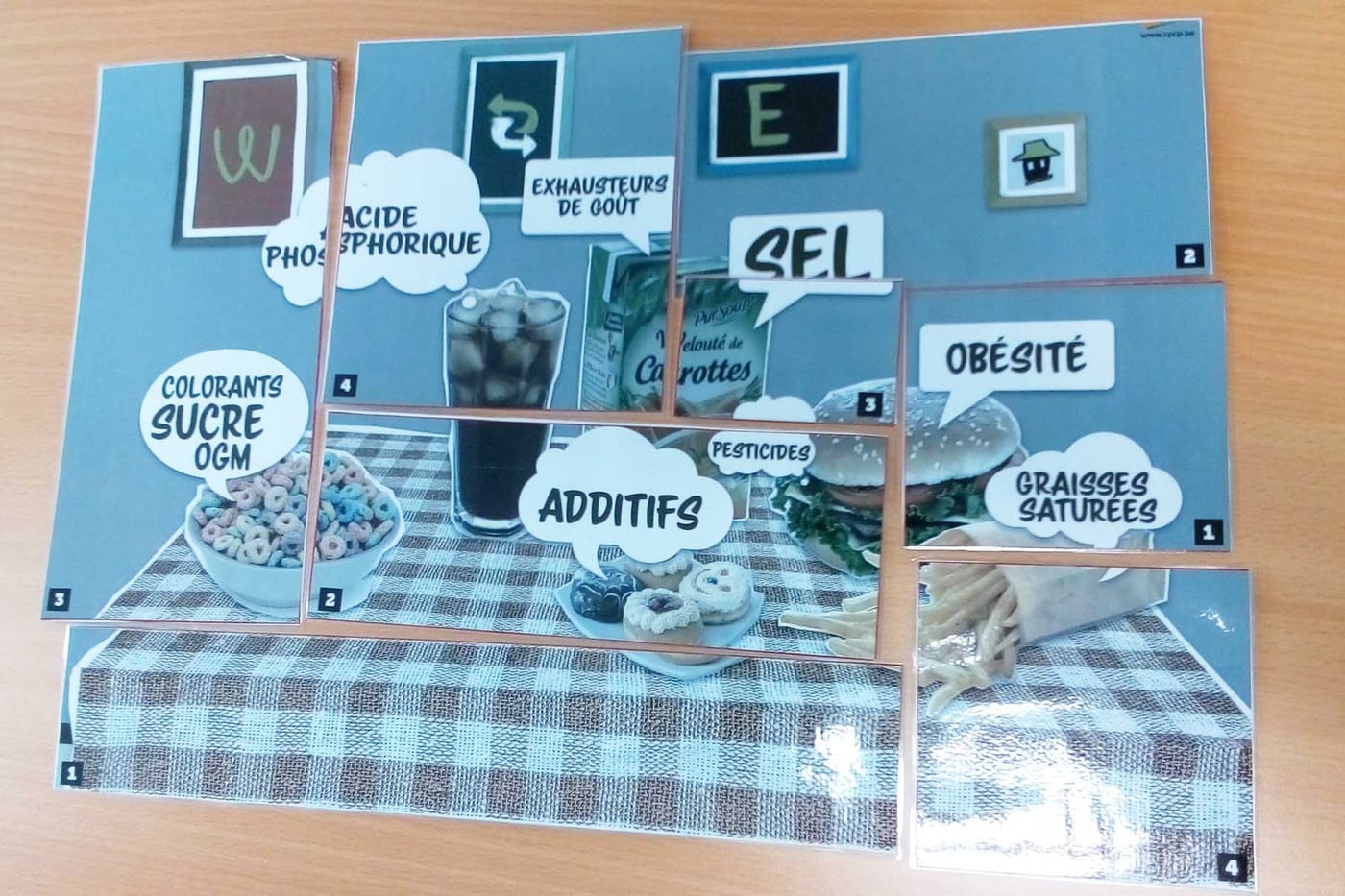 C’est dans les locaux de l’Espace Wallonie de Verviers qu’une animation sous forme de jeu de coopération a amené les jeunes de la classe de 3A à une réflexion en tant que Consom’Acteurs, axée sur quelques axes prioritaires : l’alimentation saine et équilibrée, la problématique des déchets et du gaspillage, la réduction de la facture énergétique ainsi que les initiatives et comportements alternatifs.
