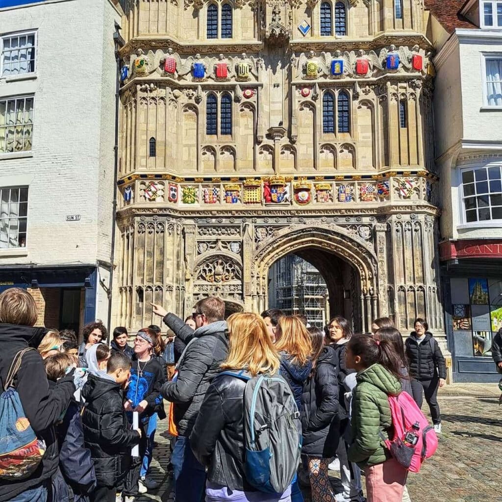Après quelques heures de route et la traversée de la Manche en ferry, ils découvrent la ville de Canterbury et ses remparts. Soleil au rendez-vous tout comme la bonne humeur !