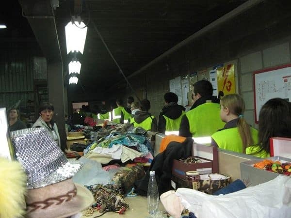 La visite des ateliers a débuté par le tri des vêtements récoltés dans les bulles. Les élèves ont été surpris par la rapidité des gestes des travailleurs. Ceux-ci sont formés pour trier 1,7 tonne de vêtements par jour. Certains vêtements seront vendus dans les boutiques Terre, d’autres sont destinés à l’exportation ou encore recyclés en chiffons d’essuyage.