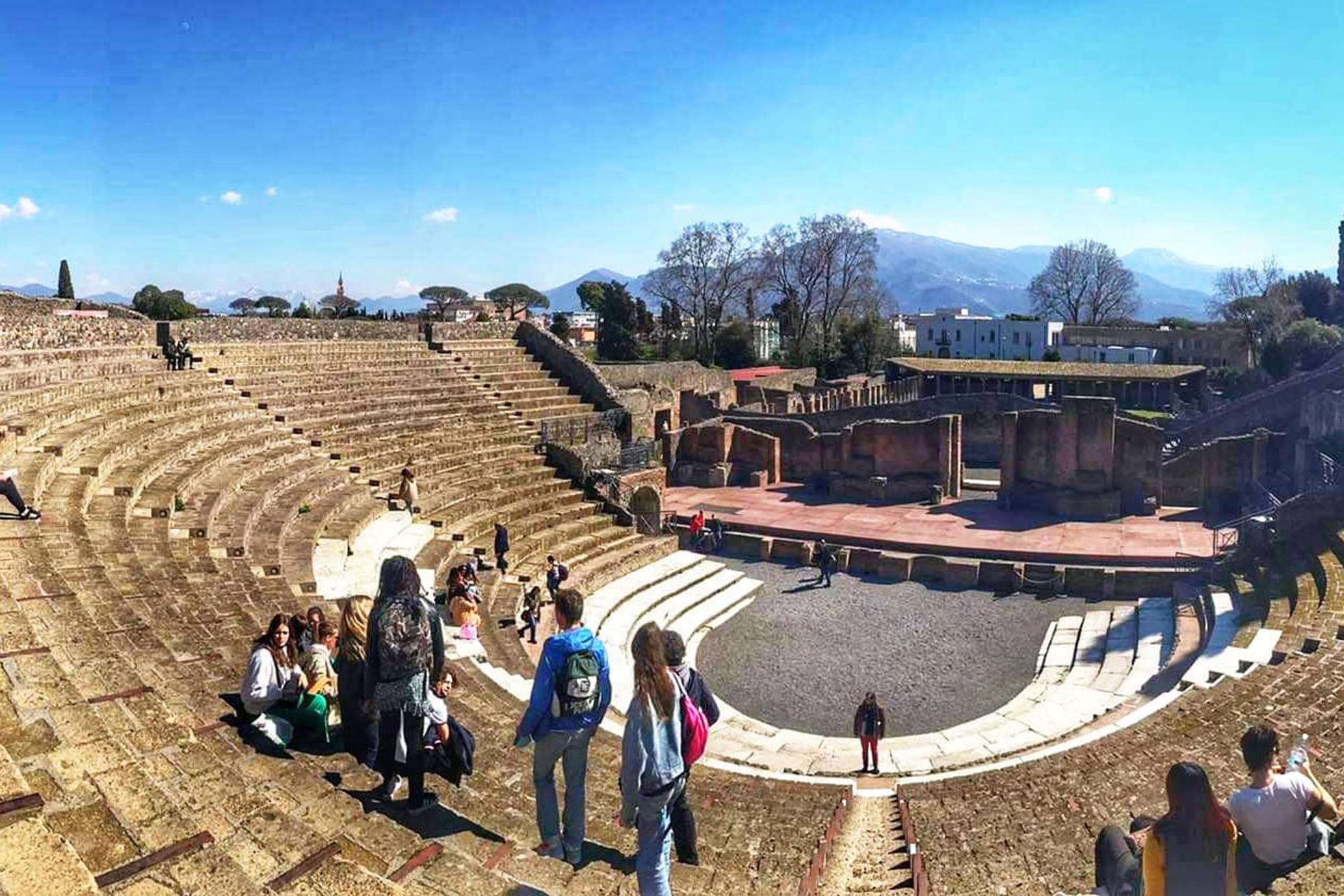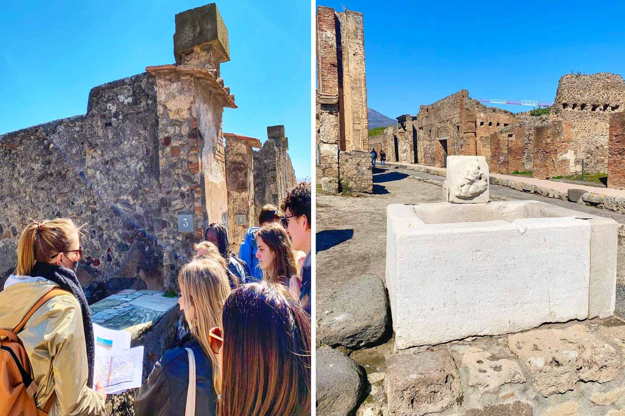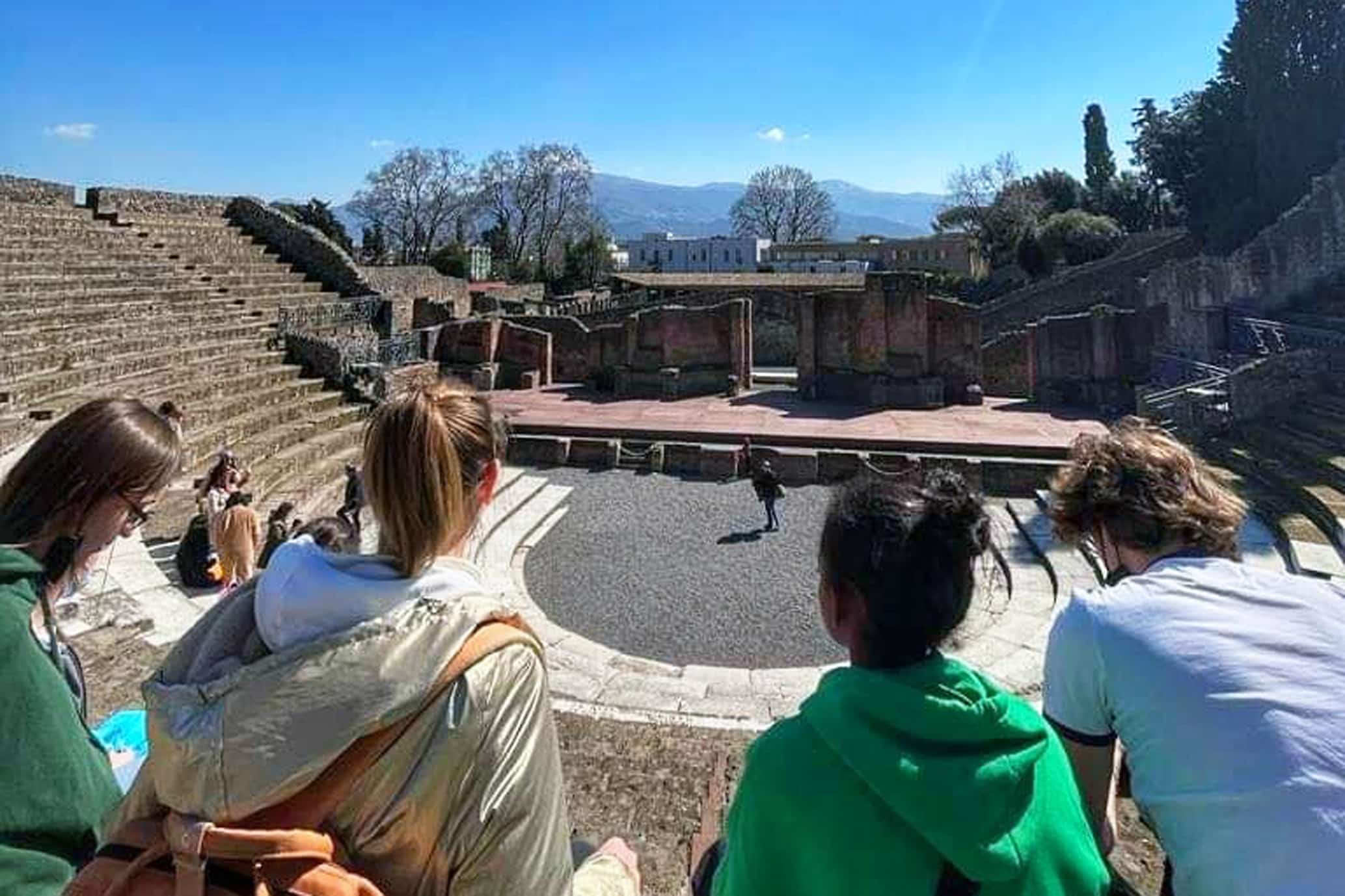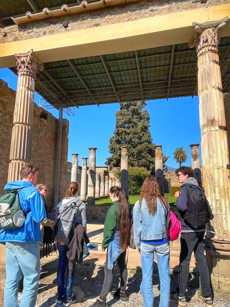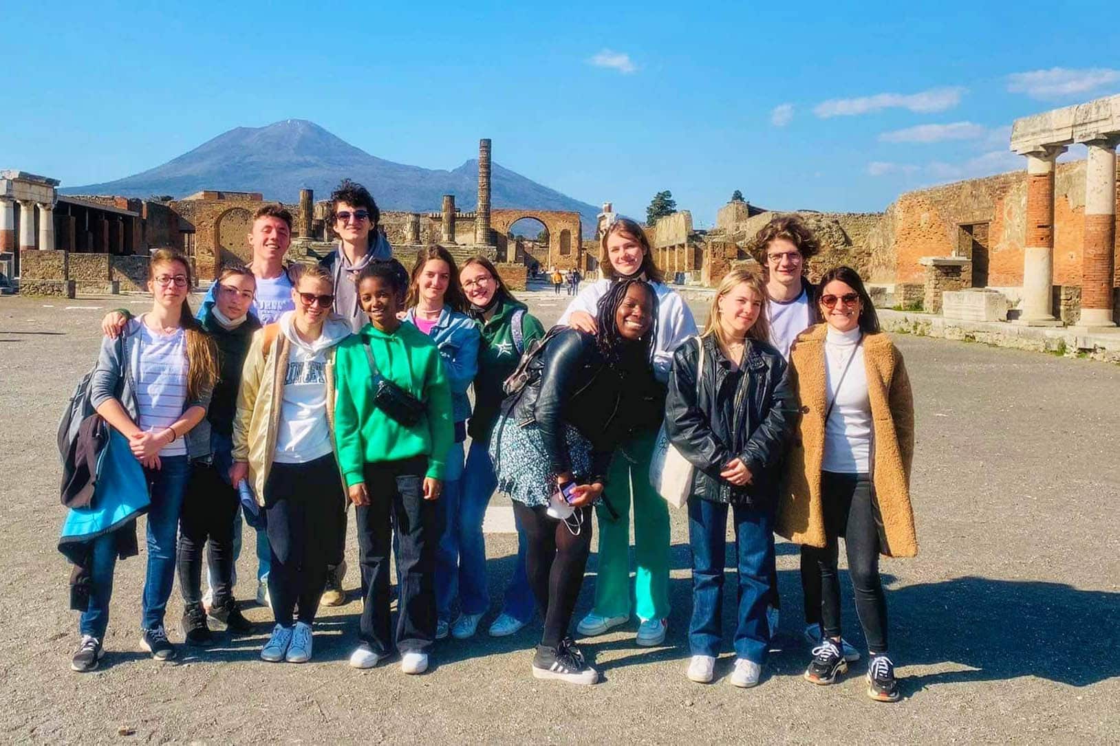 Le jeudi nous avons quitté la ville pour rejoindre Pompéi. C’est avec beaucoup d’émotion que nous avons pu découvrir ce site si bien conservé suite à l’éruption du Vésuve. Cela a également permis aux élèves d’illustrer ce qu’ils avaient appris auparavant en classe.