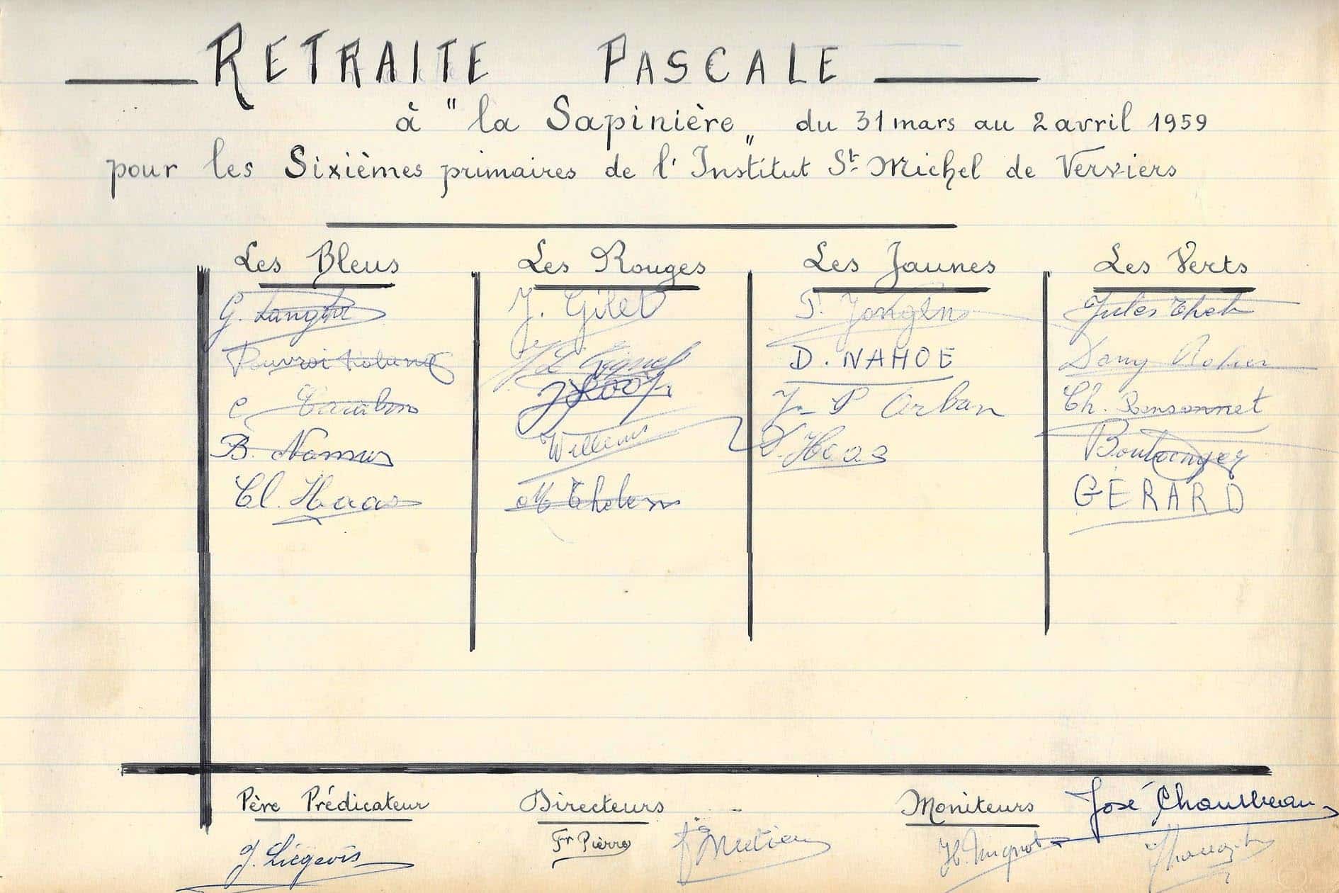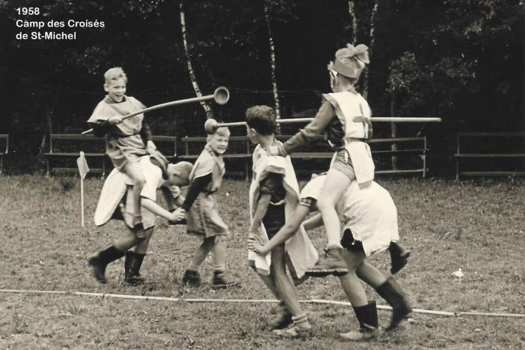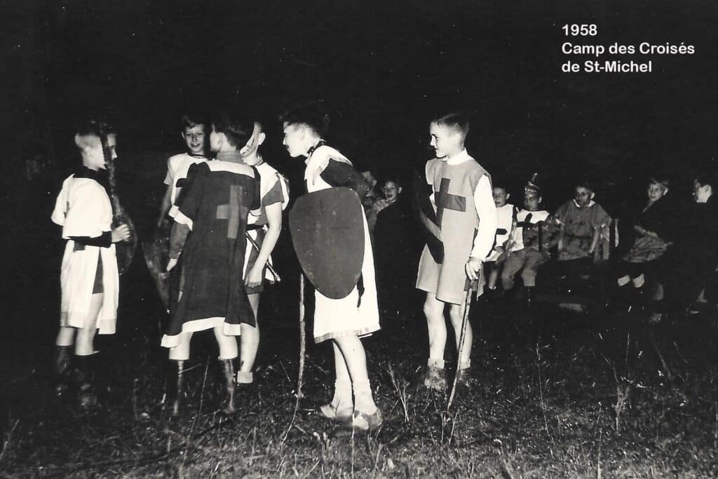 Petite parenthèse: la « croisade eucharistique », que l’on retrouve dans plusieurs écoles des Frères des écoles chrétiennes, était un mouvement de jeunesse dont la conception à Saint-Michel était fort proche du scoutisme. Il comptait trois sections: les Croisillons (6-9 ans), les Croisés (10-12 ans) et les Compagnons (dès 13 ans). En 1967, l’Unité scoute sera reconstituée.