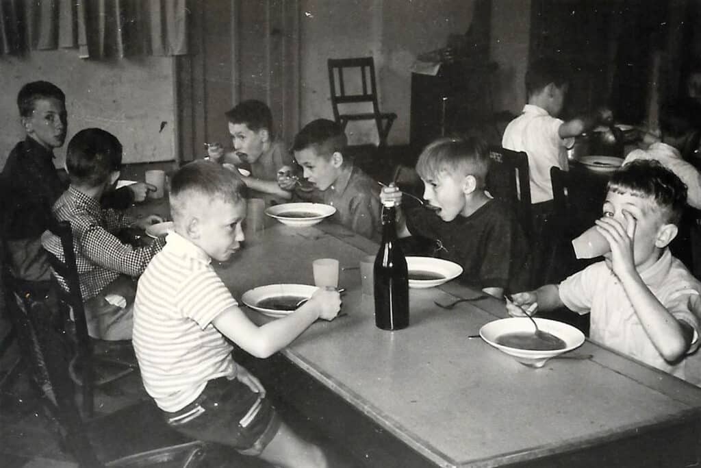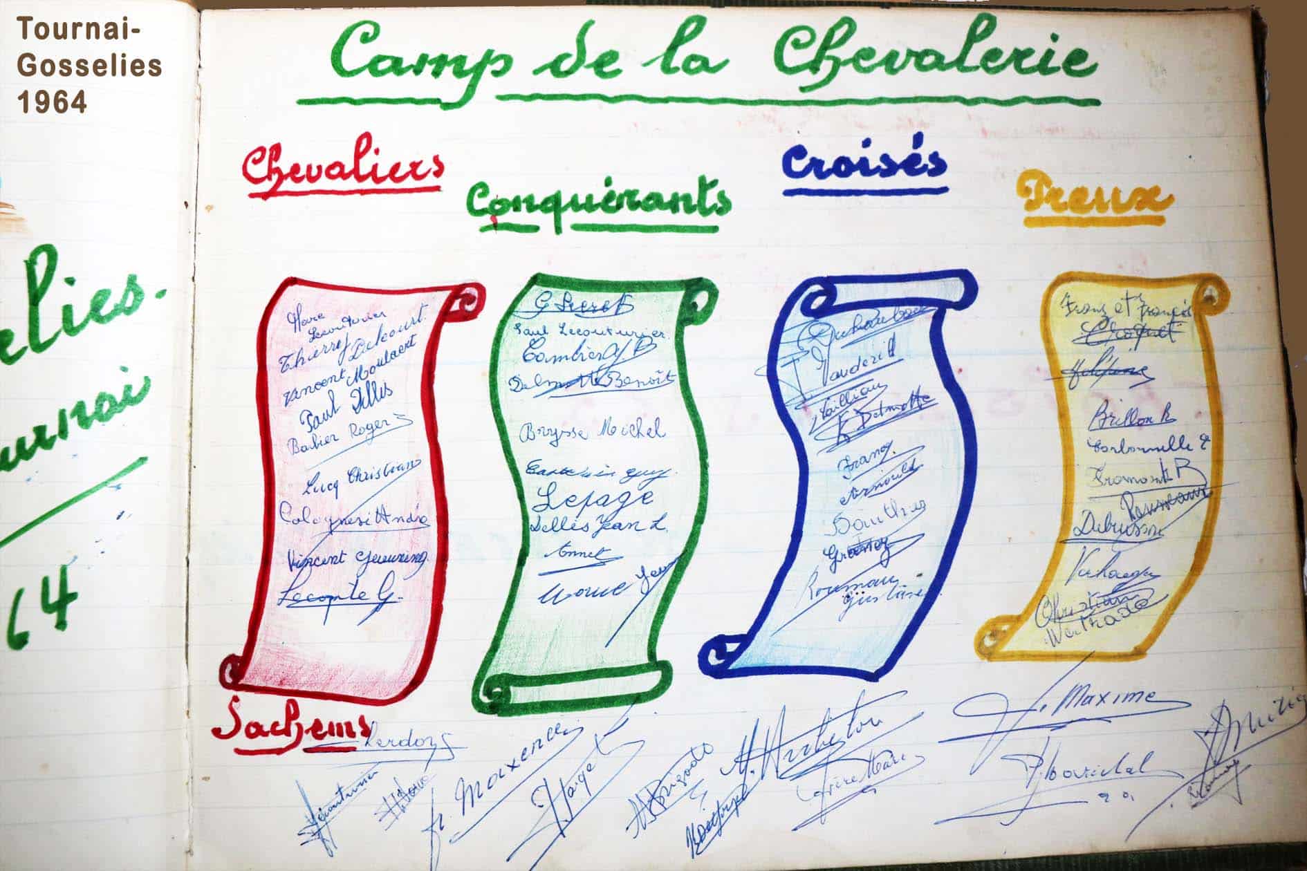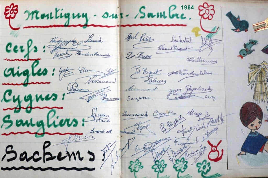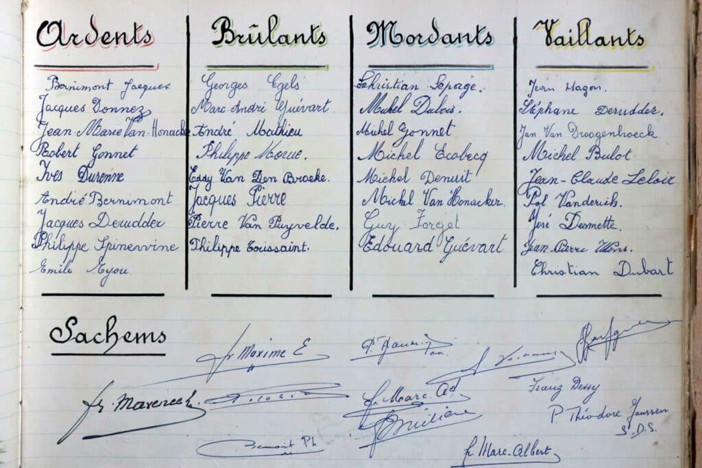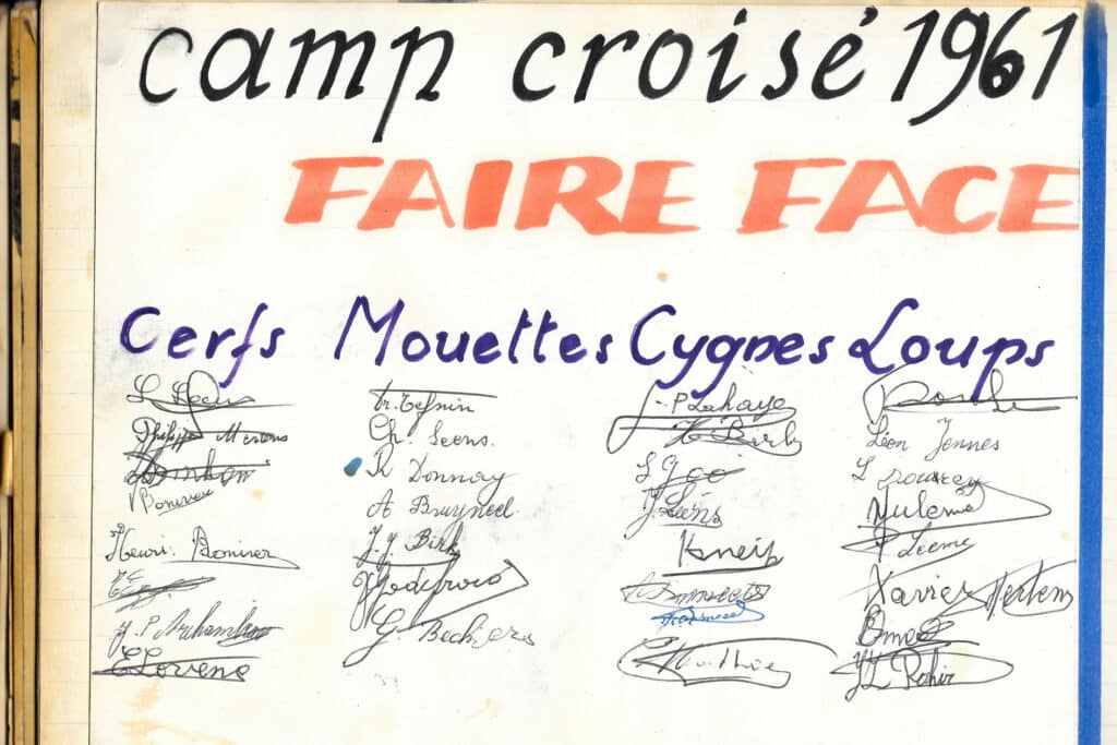 Les camps de jeunes, les retraites et récollections pour élèves et communiants se succèdent, comme on peut le constater dans le livre d’or. (Non seulement on y trouve les camps des Croisés de St-Michel, mais aussi les signatures de visiteurs « fidèles »: camps de Montigny-sur-Sambre, Gosselies, Tournai, retraites de Sainte-Julienne et Saint-Roch…) Durant les mois de juillet et d’août, deux cents jeunes viennent s’ébattre dans ce lieu merveilleux. La Sapinière connaît une vie trépidante… on y organisera même des fancy-fairs et quelques soirées dansantes.