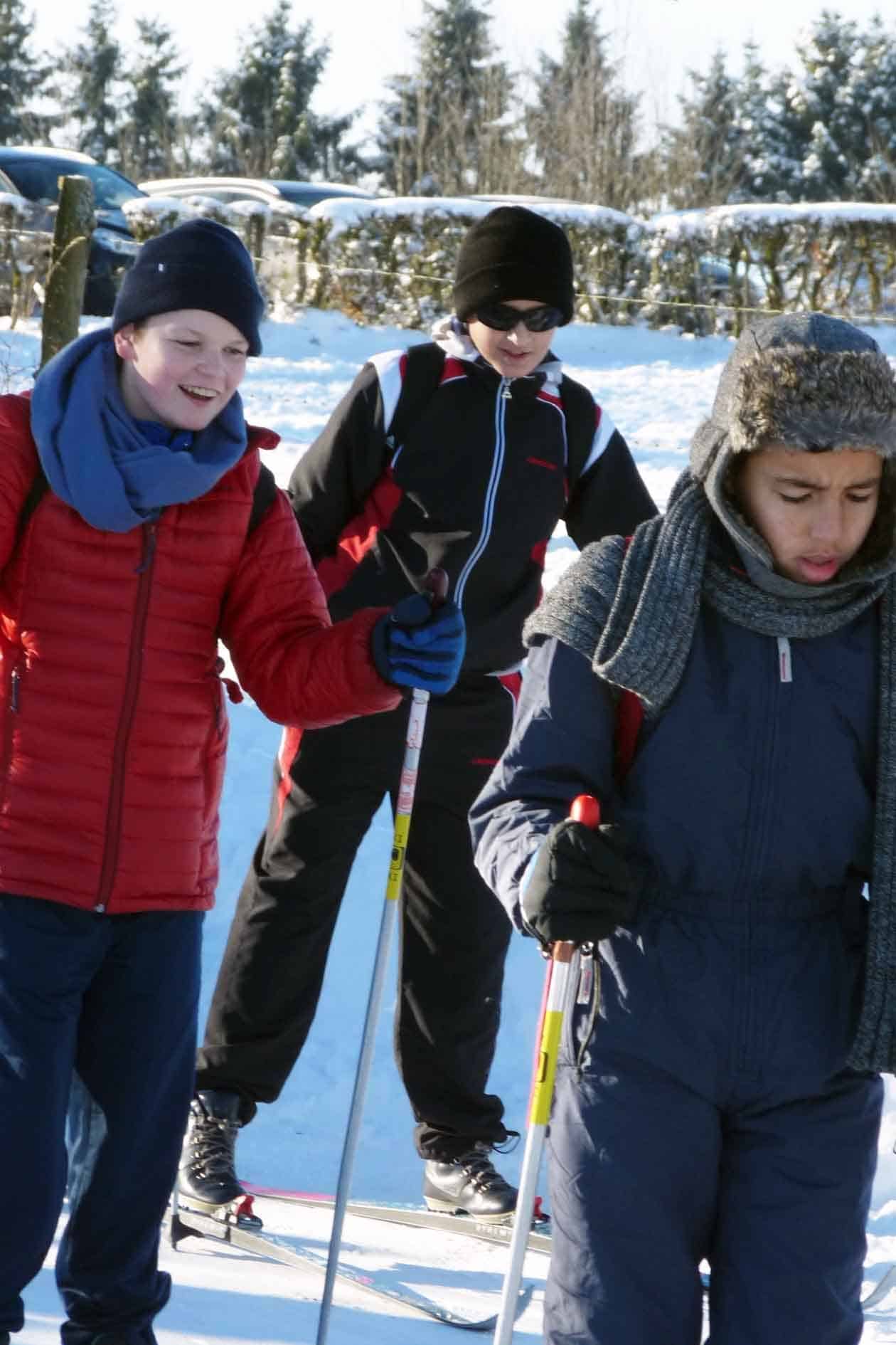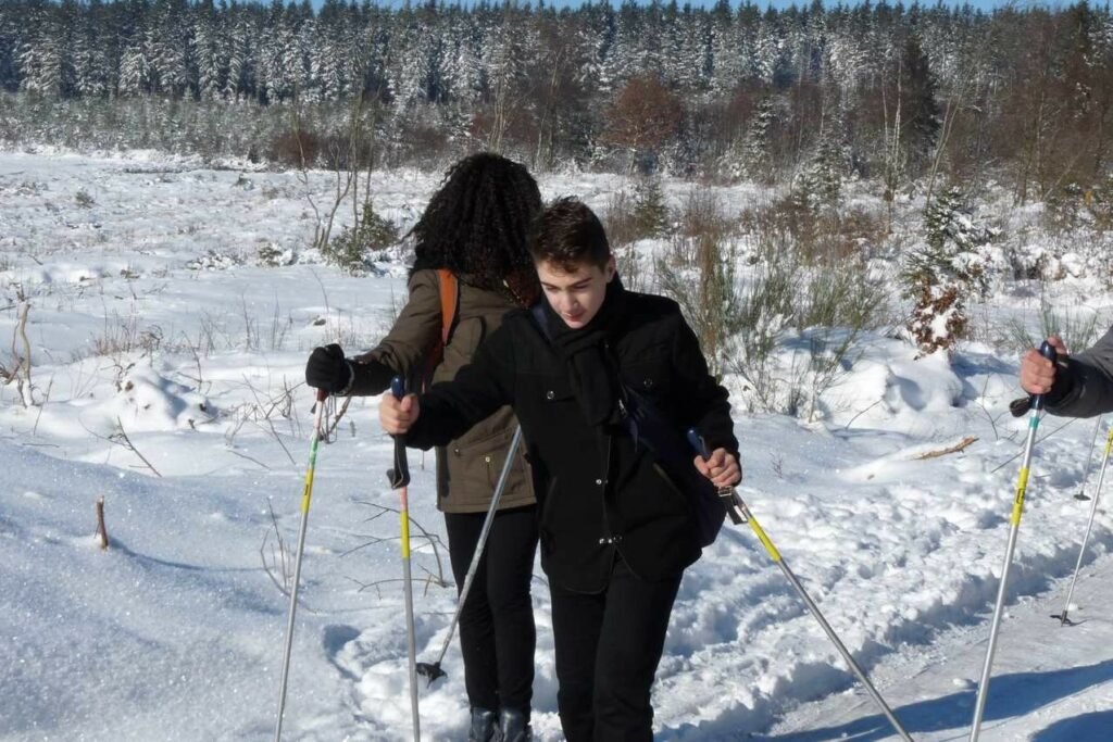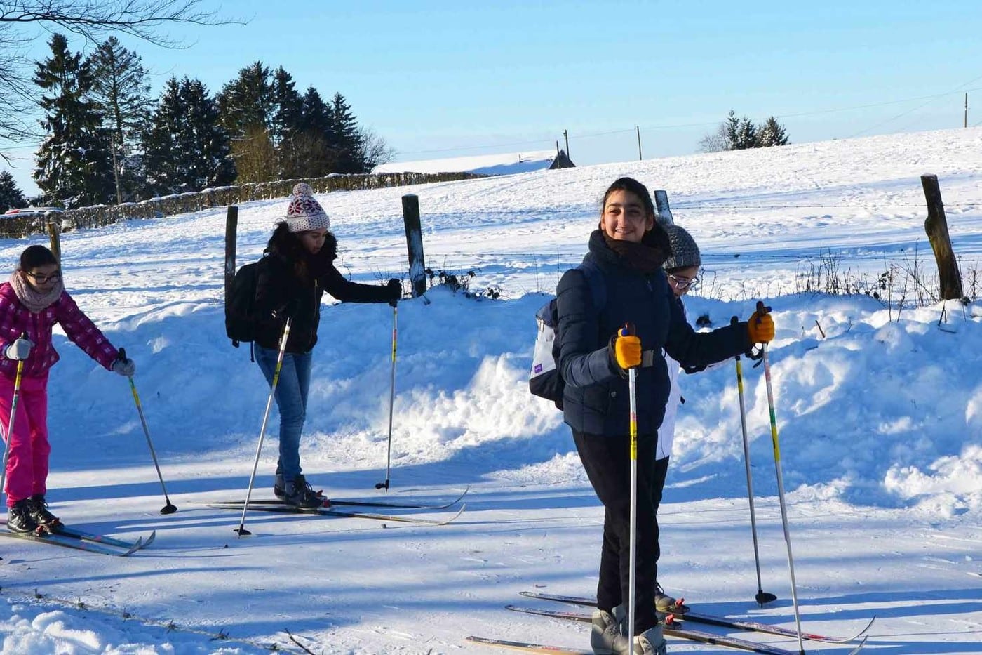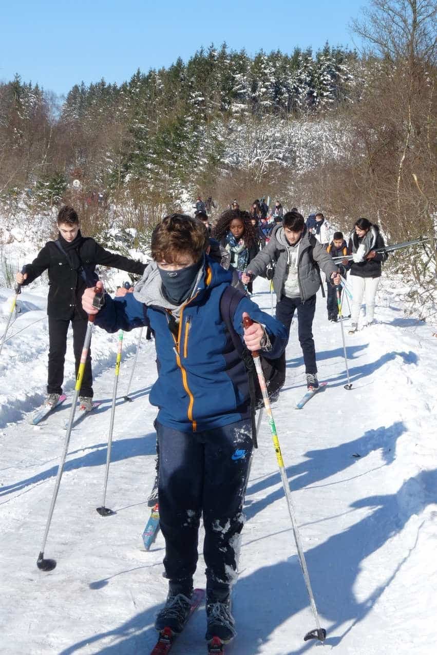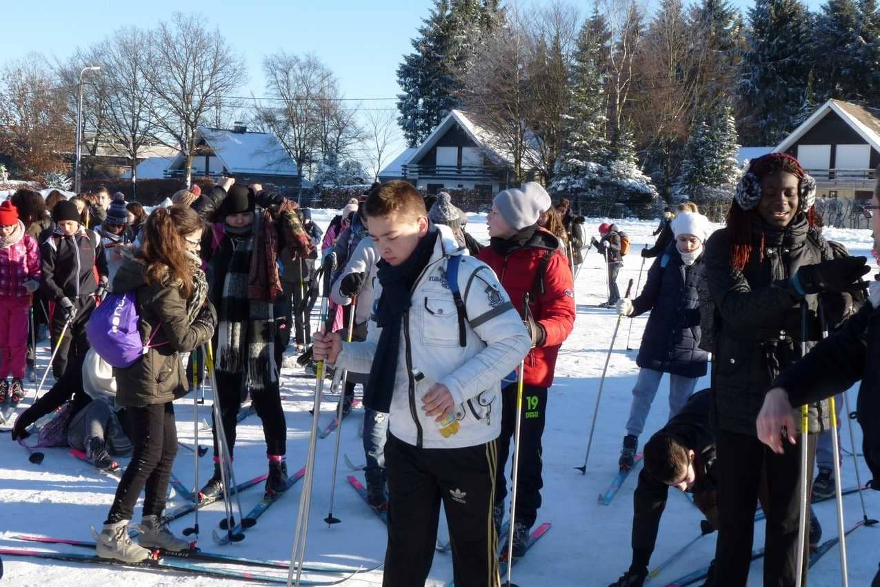 Ce mardi 19 janvier, les élèves de 1re secondaire se sont tous retrouvés à Ovifat sous le soleil pour une journée de ski bien particulière. Pour beaucoup d’entre eux, c’était d’ailleurs la première fois qu’ils pratiquaient cette activité. Heureusement, il y avait le choix entre un parcours de 6 km ou 12 km, et les professeurs étaient là pour aider et encourager les moins à l’aise.