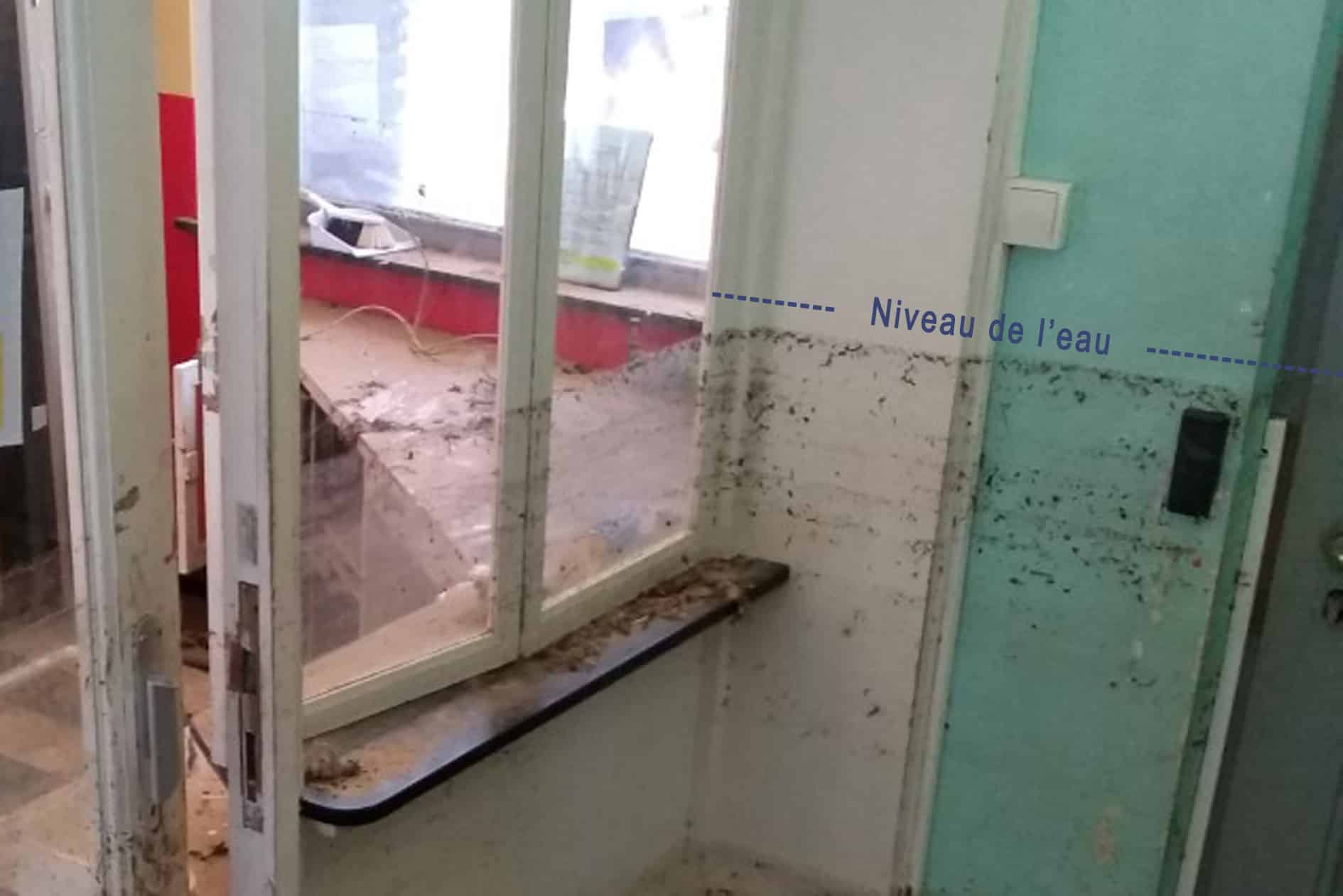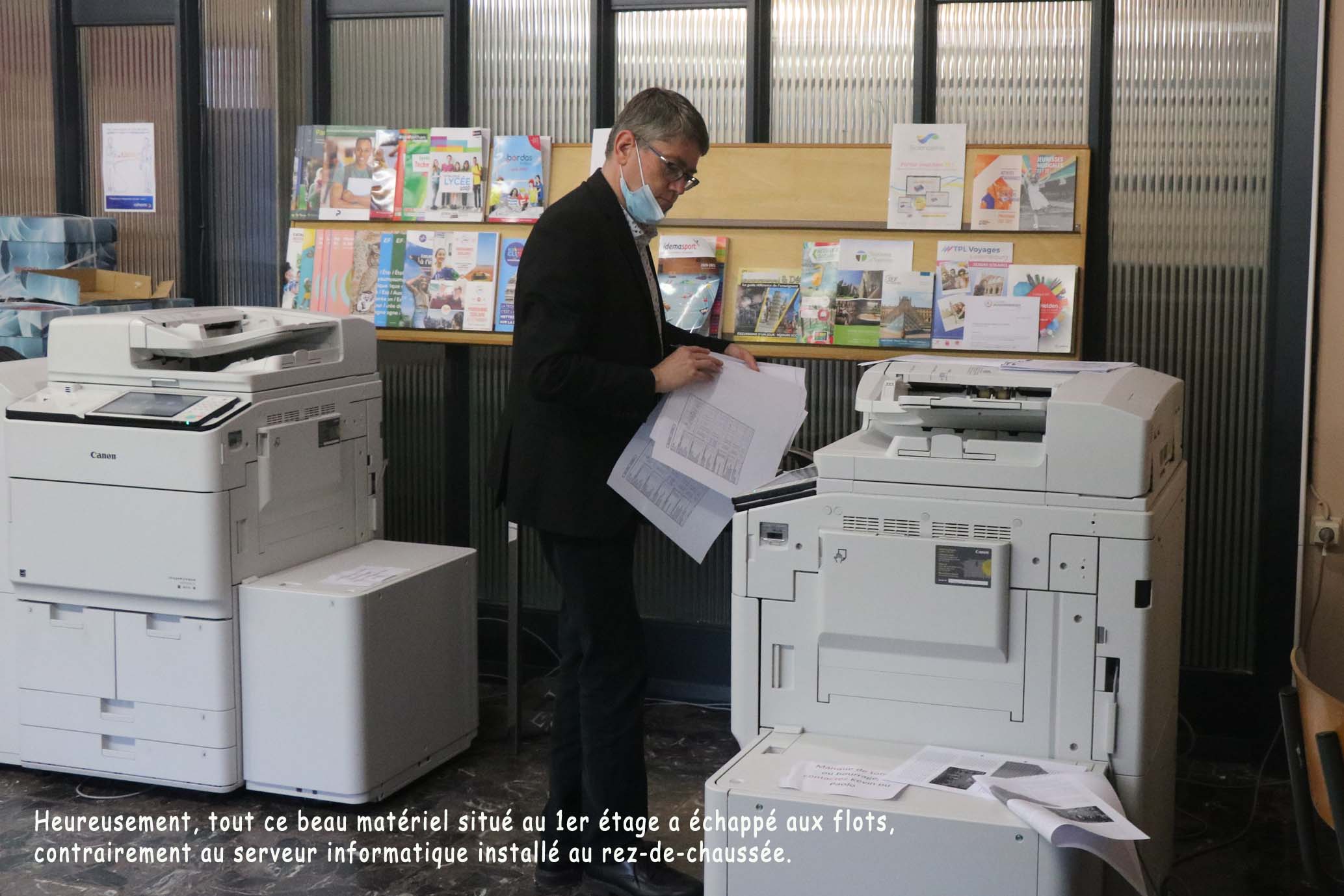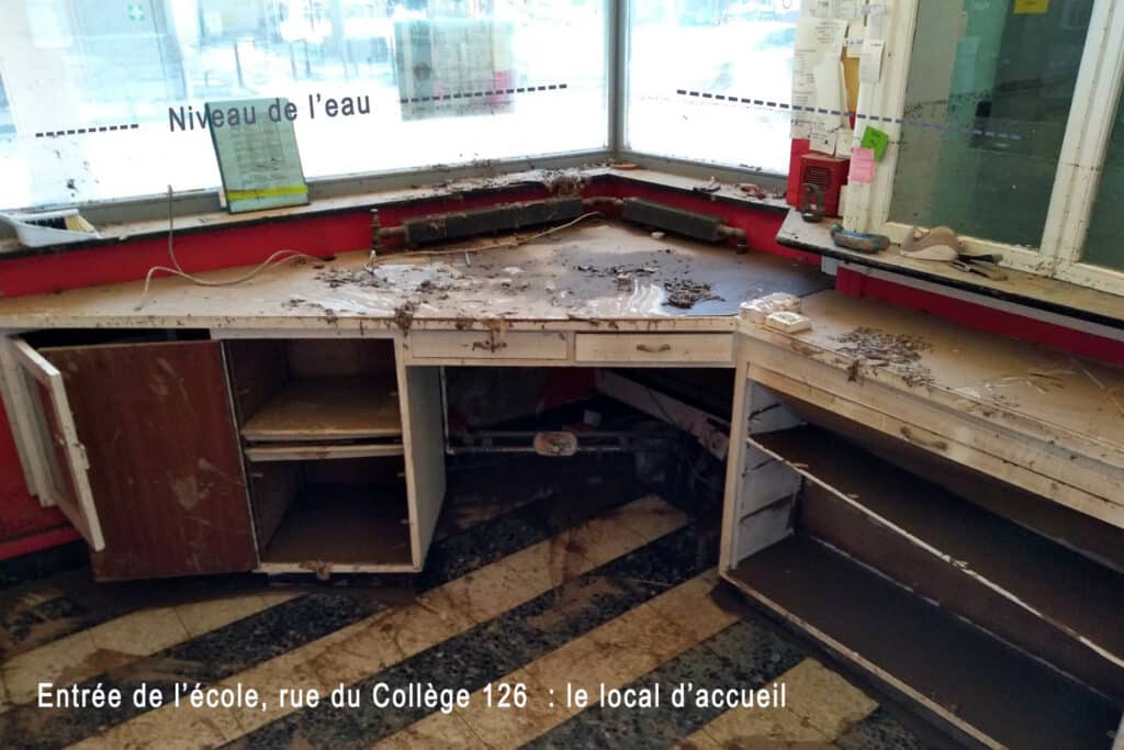 Saint-Michel, situé en plein centre, n’a pas échappé aux flots qui ont envahi le sous-sol jusqu’au plafond (caves, salles de détente, locaux techniques du chauffage et de la piscine, locaux d’archives, ateliers, parking). A la conciergerie de la rue du Collège, au rez-de-chaussée, l’eau est montée jusqu’à 1,20 m (voir photos dans l’album ci-dessous). Plus d’électricité, plus de chauffage, plus de téléphone et le serveur informatique est sous eau.