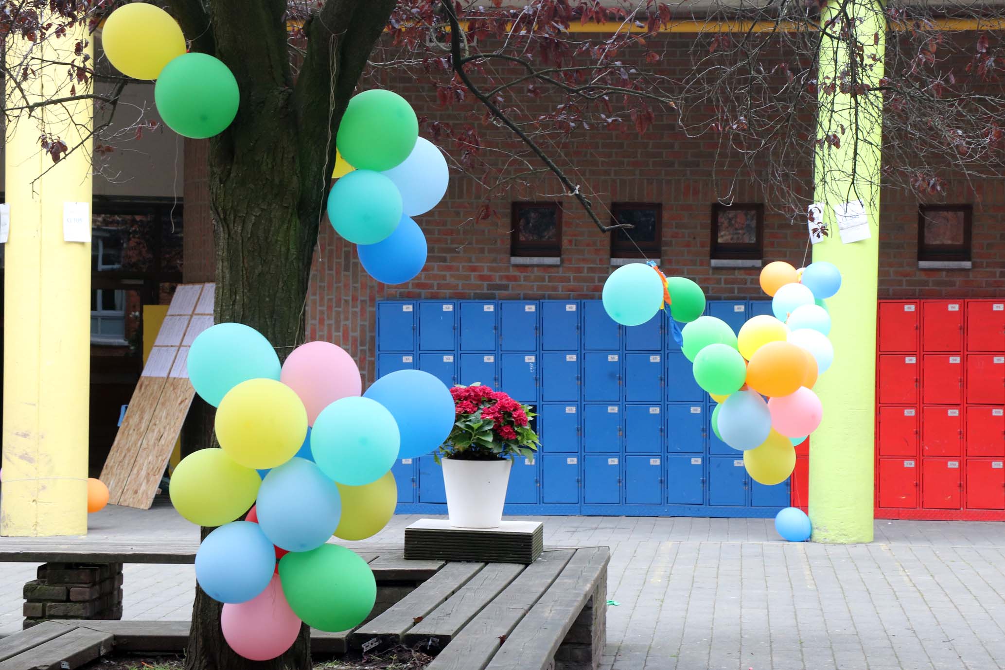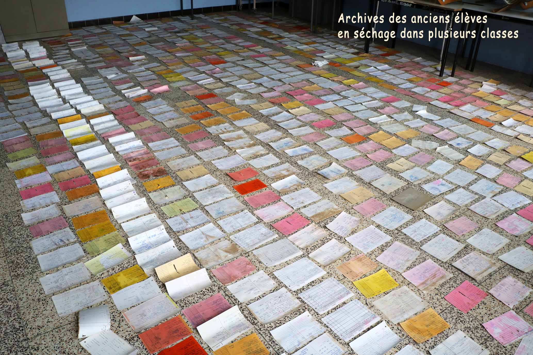 Le nettoyage et la remise en état débutent directement avec la collaboration de nombreux enseignants et bénévoles, si bien que l’école peut organiser quasi normalement la rentrée de septembre pour toutes les classes de maternel, primaire et secondaire. Pour l’occasion, la cour inférieure est décorée de ballons colorés pour un peu oublier les tristes évènements.