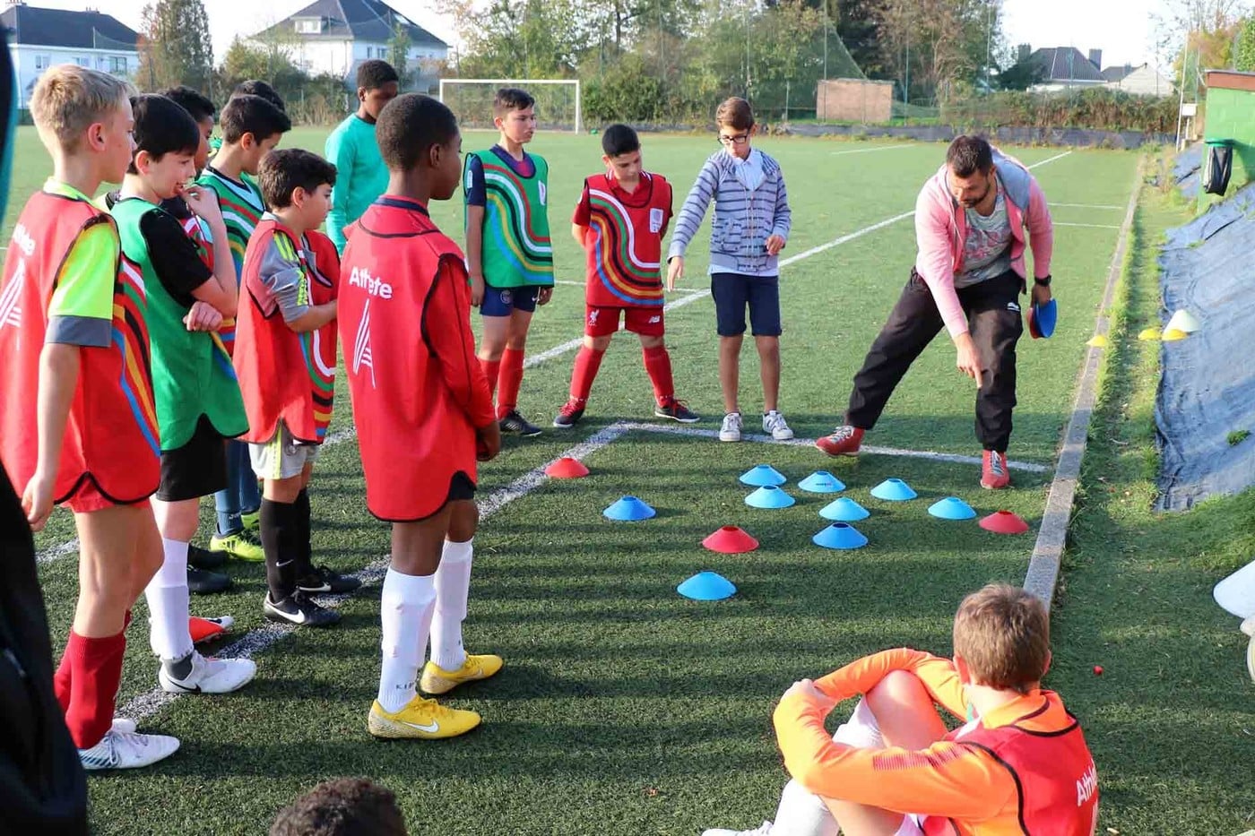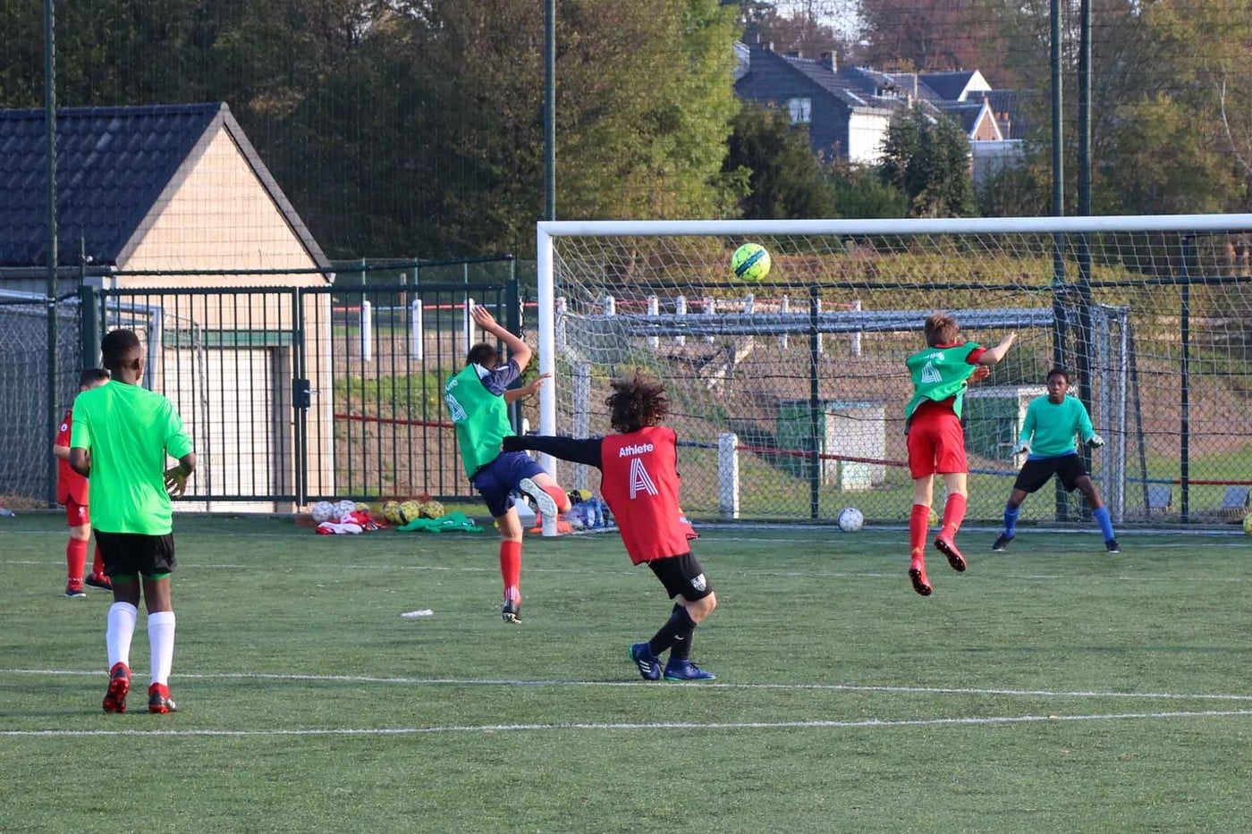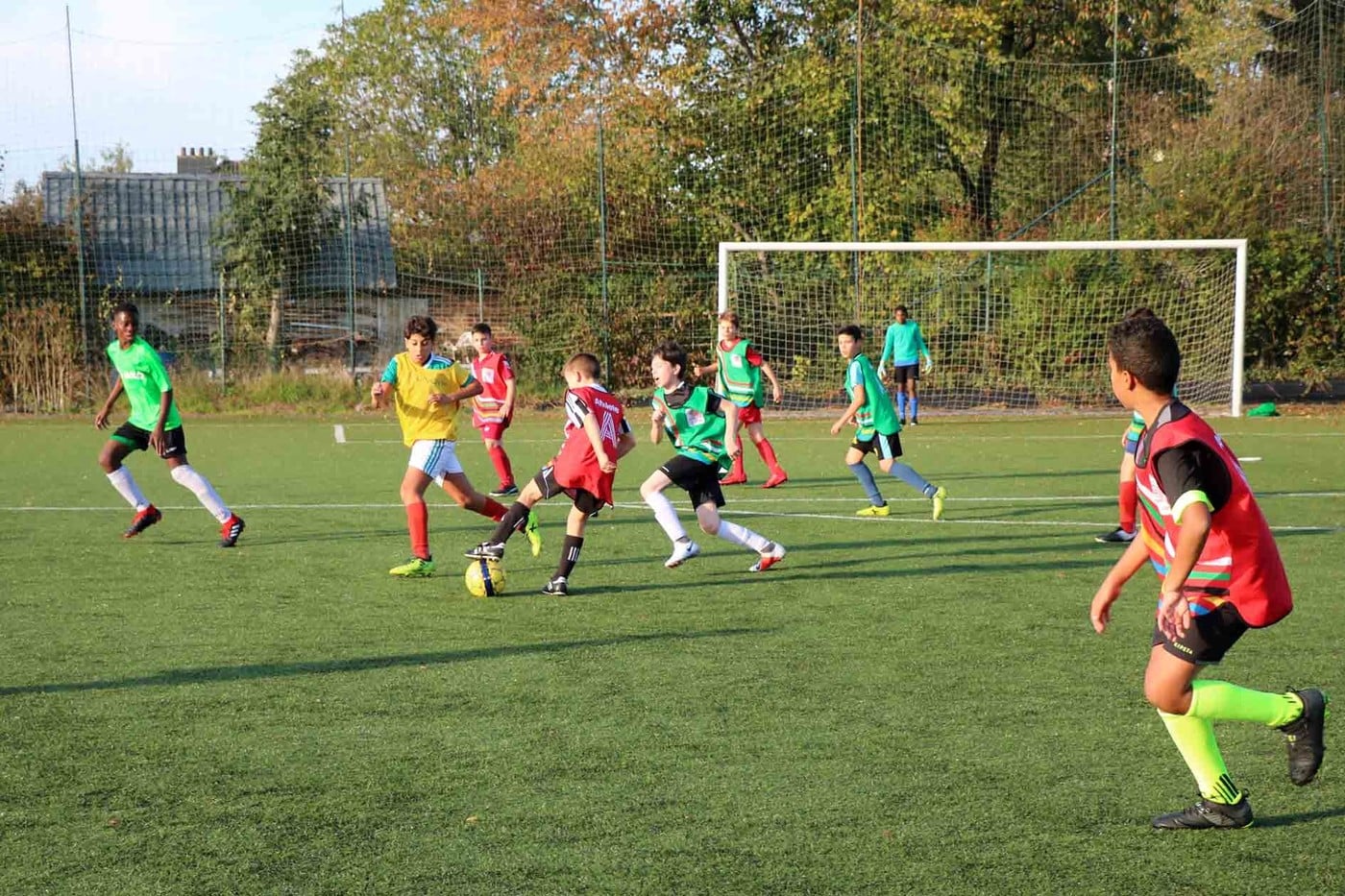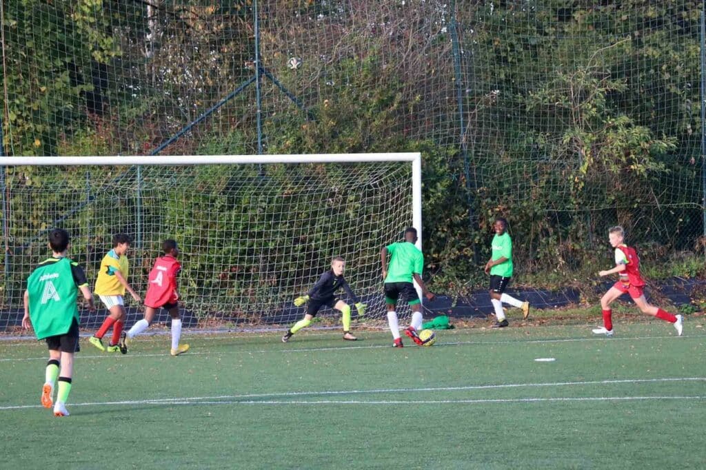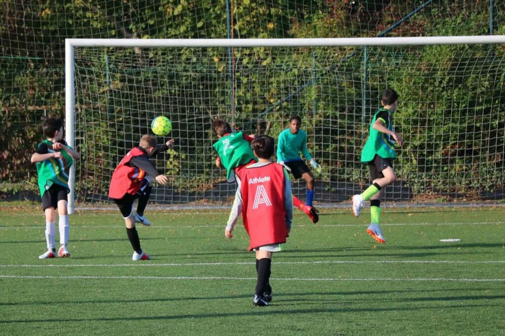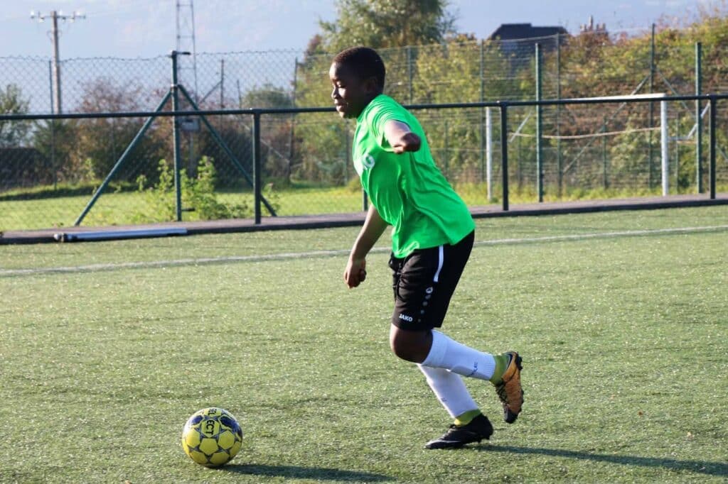 Par une journée « printanière » de ce mois d’octobre 2018, nous nous sommes rendus sur le terrain de Lambermont pour suivre le « cours » de foot des élèves de 1re secondaire.