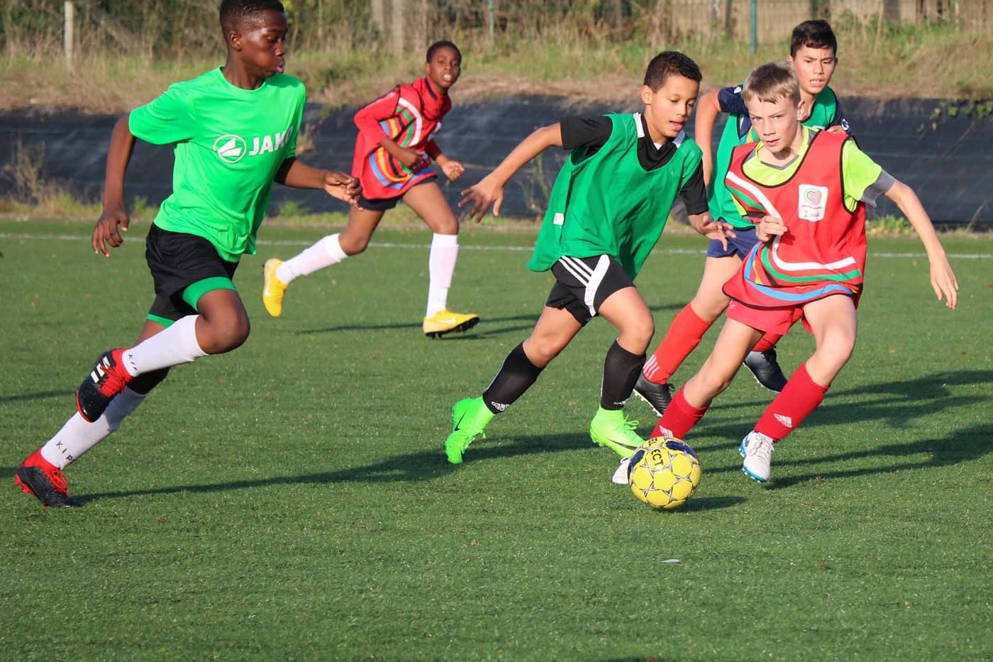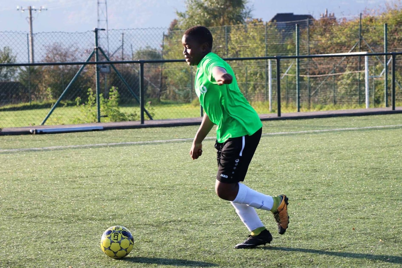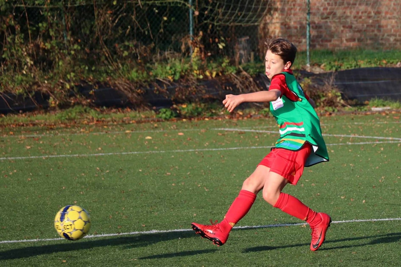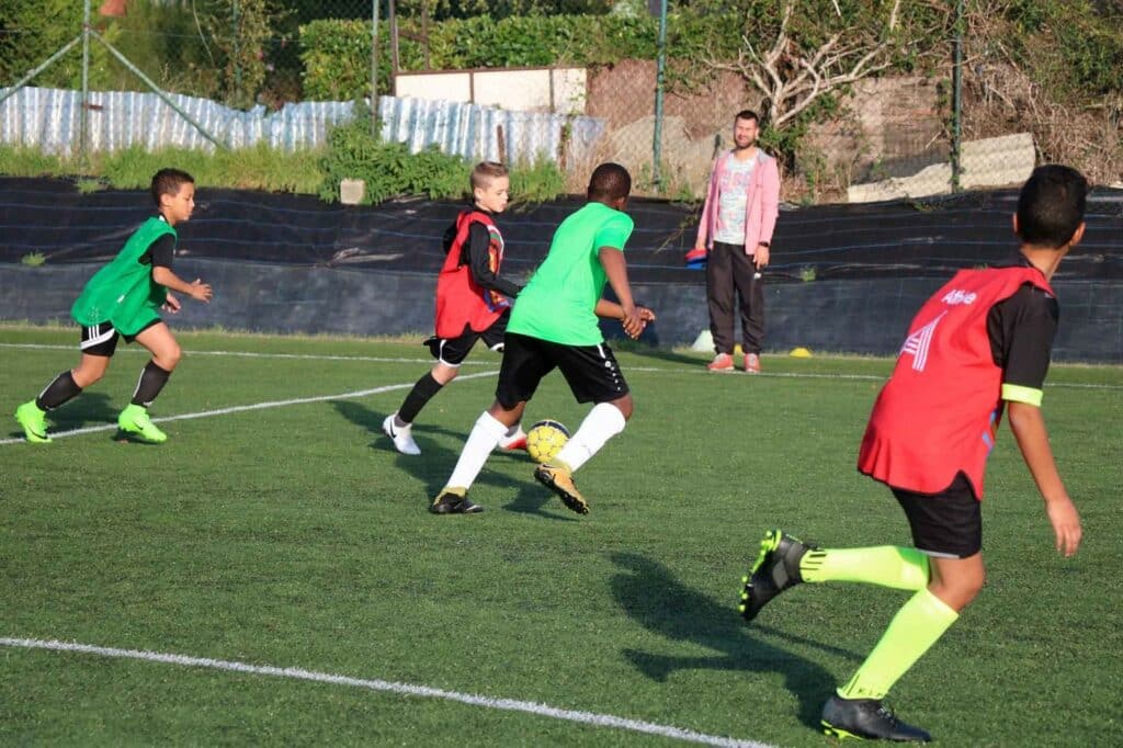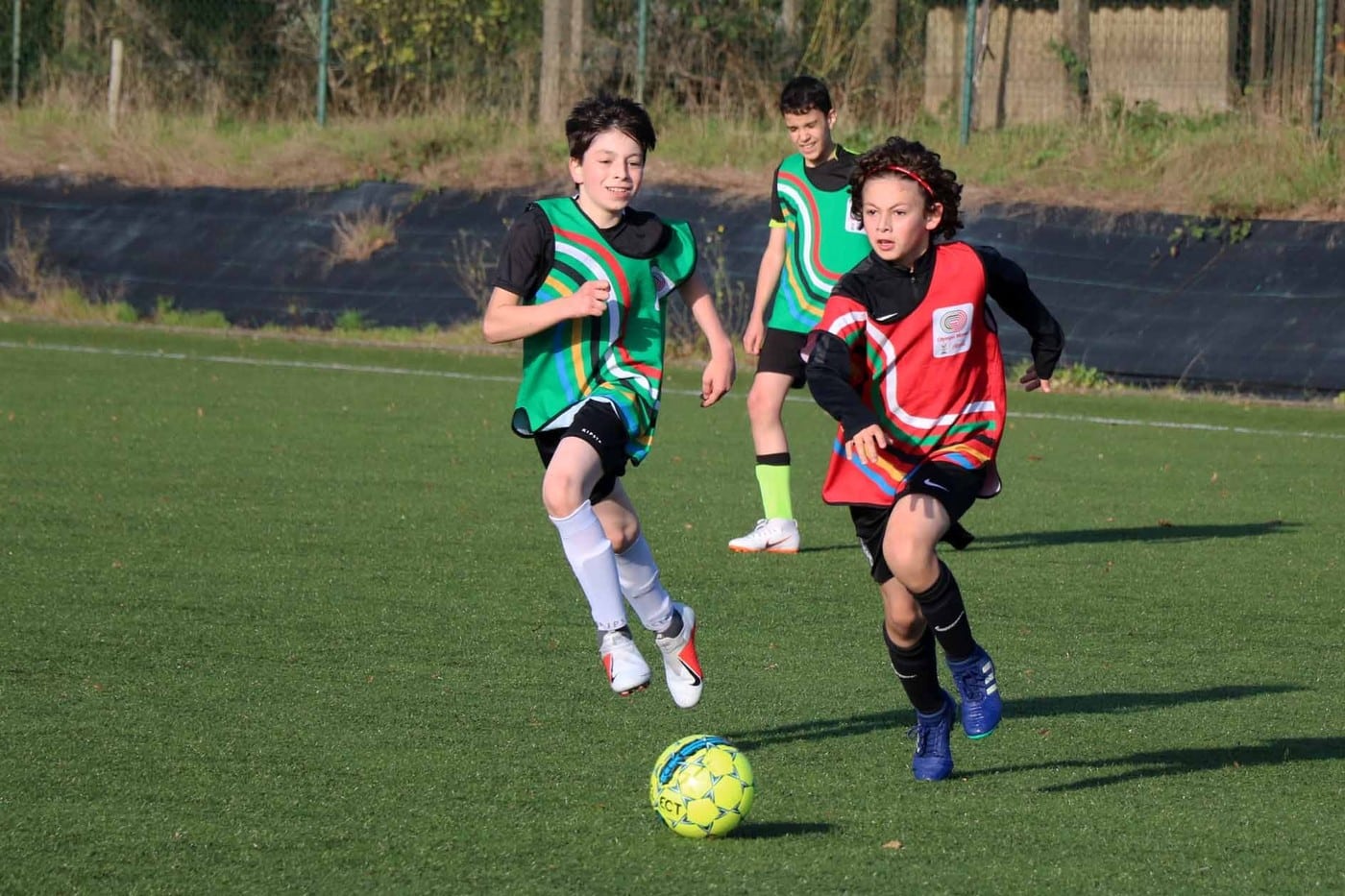 Par une journée « printanière » de ce mois d’octobre 2018, nous nous sommes rendus sur le terrain de Lambermont pour suivre le « cours » de foot des élèves de 1re secondaire.