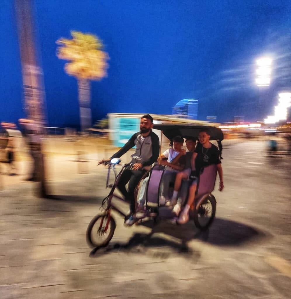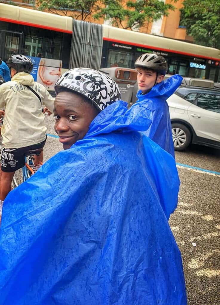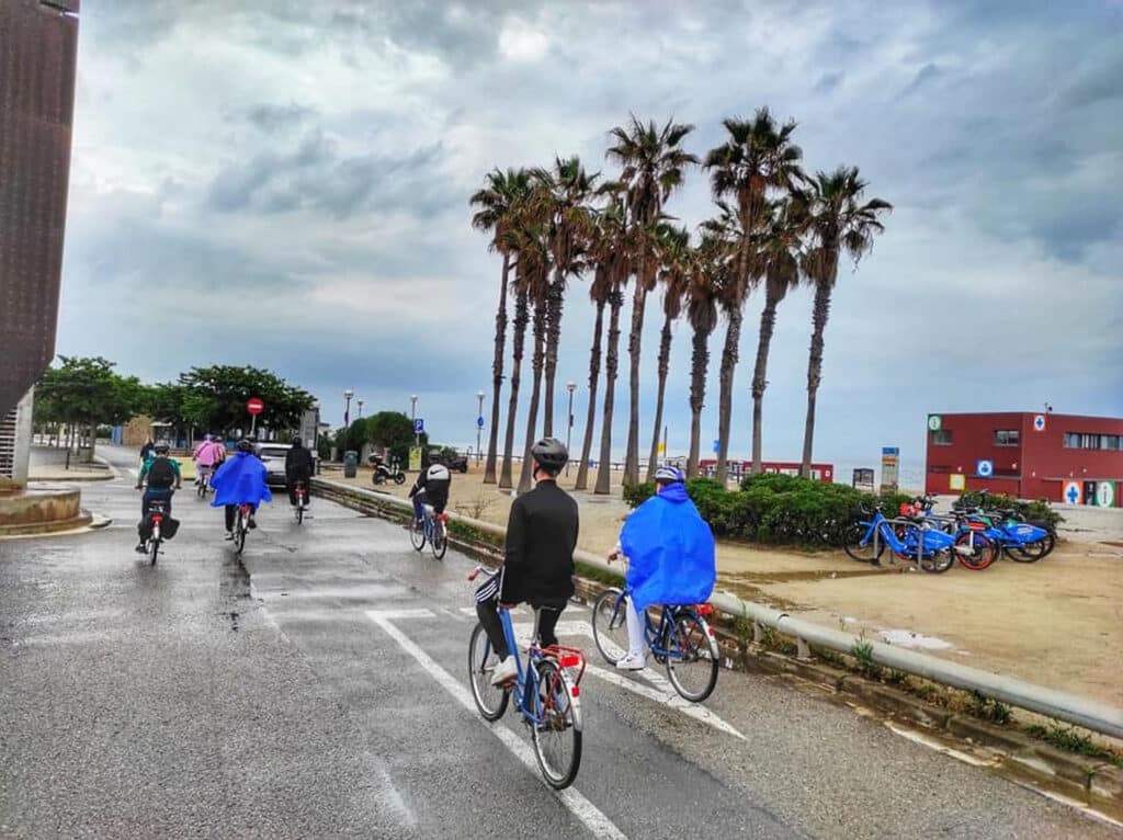 Au menu de cette journée pluvieuse, visite guidée en vélo de Barcelone (ou du moins une partie). Arrêt à la Sagrada Familia, au Parc de la Ciutadella, au village olympique et en bord de mer.