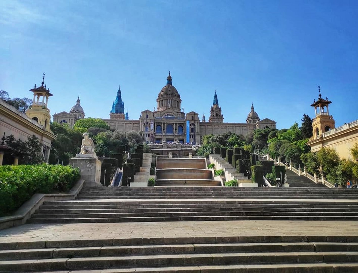Au programme de cette deuxième matinée sportive, un jogging « sur les traces des champions » d’environ 8 kilomètres était prévu. Pour cela, nous nous sommes rendus au site olympique de Montjuic, nous permettant d’admirer les anciennes Arènes de Barcelone ainsi que le majestueux Musée National d’Art de Catalogne. Malheureusement, nous n’avons pas pu pénétrer dans le stade olympique car le site était bouclé en vue du concert de Coldplay organisé ce soir-là.