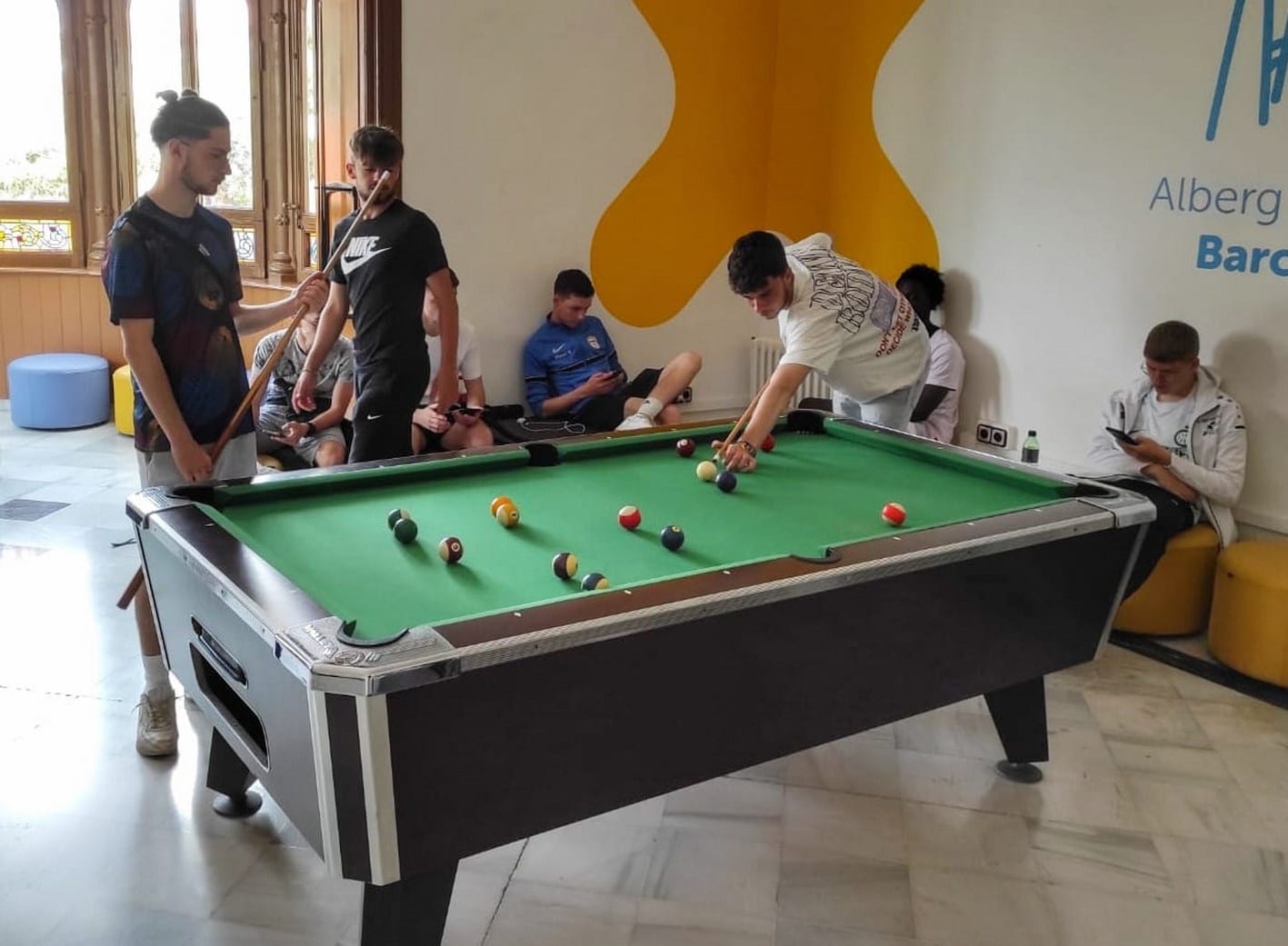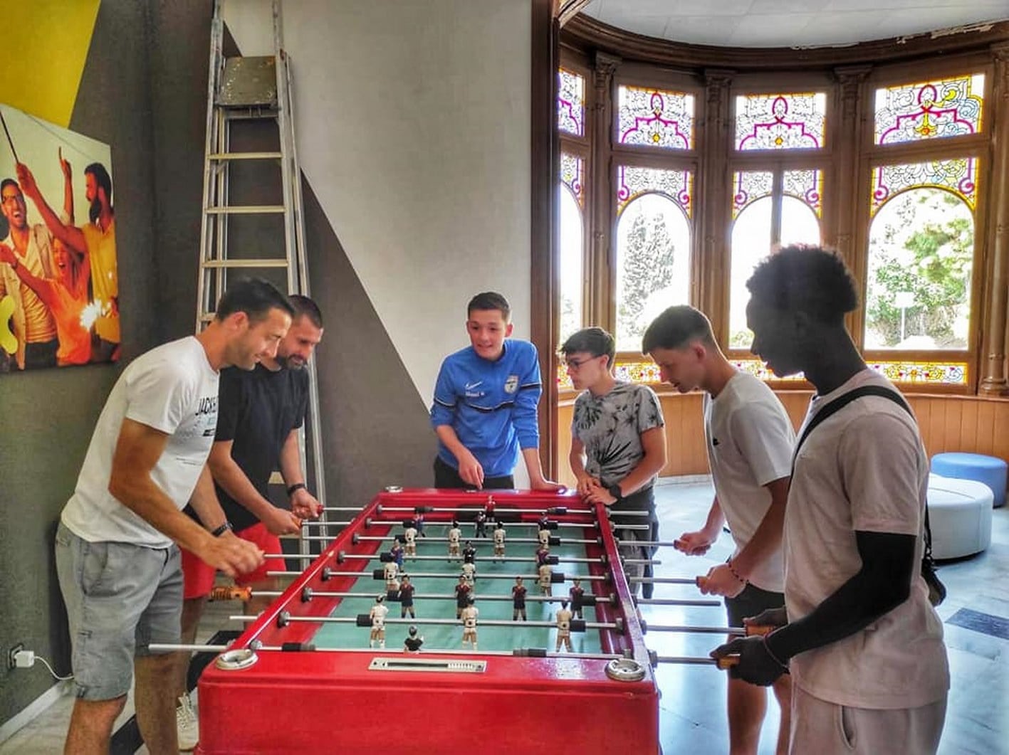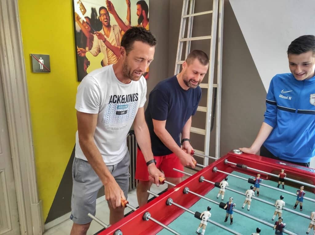 En attendant la navette, ils ont pu se divertir un peu au billard et au baby-foot. Certains ont même souhaité s’opposer aux professeurs… L’avion « sportif » de l’aller a été remplacé par un avion plus « culturel » décoré à l’effigie de Bruegel, nous permettant de clôturer ce séjour « Sportif et Culturel » d’une bien belle manière.