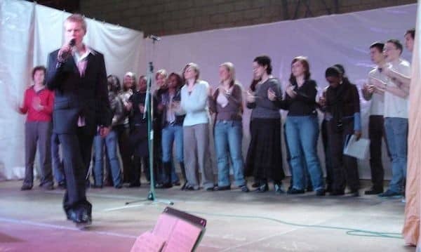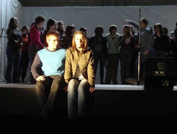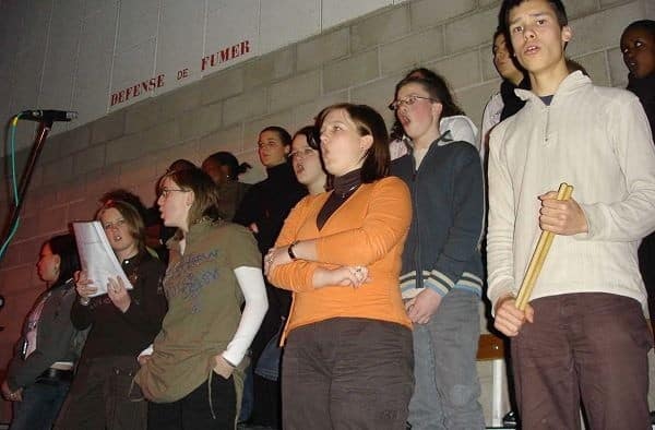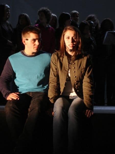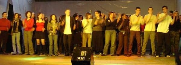 52 étudiants, membres de l’antenne Acat (Action des Chrétiens pour l’Abolition de la Torture), ont enflammé le hall des sports et ont ravi un public de plus de 500 personnes avec un spectacle original « Dos au Mur et Droit au Coeur ».