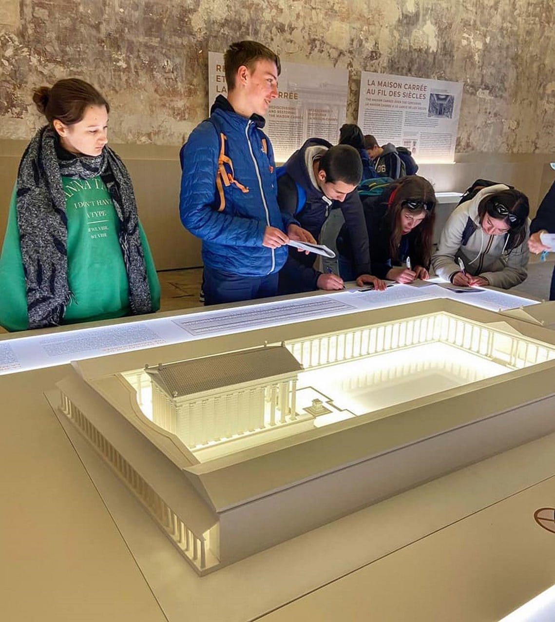 Le lundi 6 mars, les latinistes se sont envolés pour Nîmes. Ils ont atterri sous un beau ciel bleu à Marseille. A peine installés à l’auberge, ils ont rejoint le musée de la Romanité pour une visite guidée sur le thème de la mythologie. Ils ont dû repérer des éléments particuliers dans le musée et les photographier.