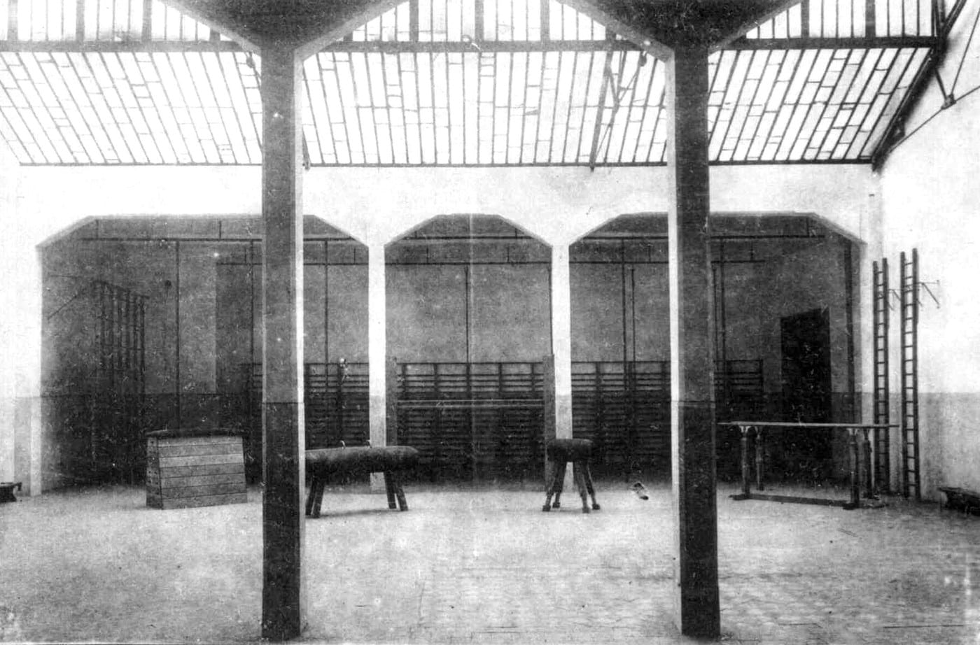 En 1921, la première fête de gymnastique rassemble, dans la cour, élèves et parents. Il faut attendre 1928 pour qu’une salle de gymnastique soit aménagée. Elle occupe alors l’emplacement actuel de la piscine et du petit gymnase.