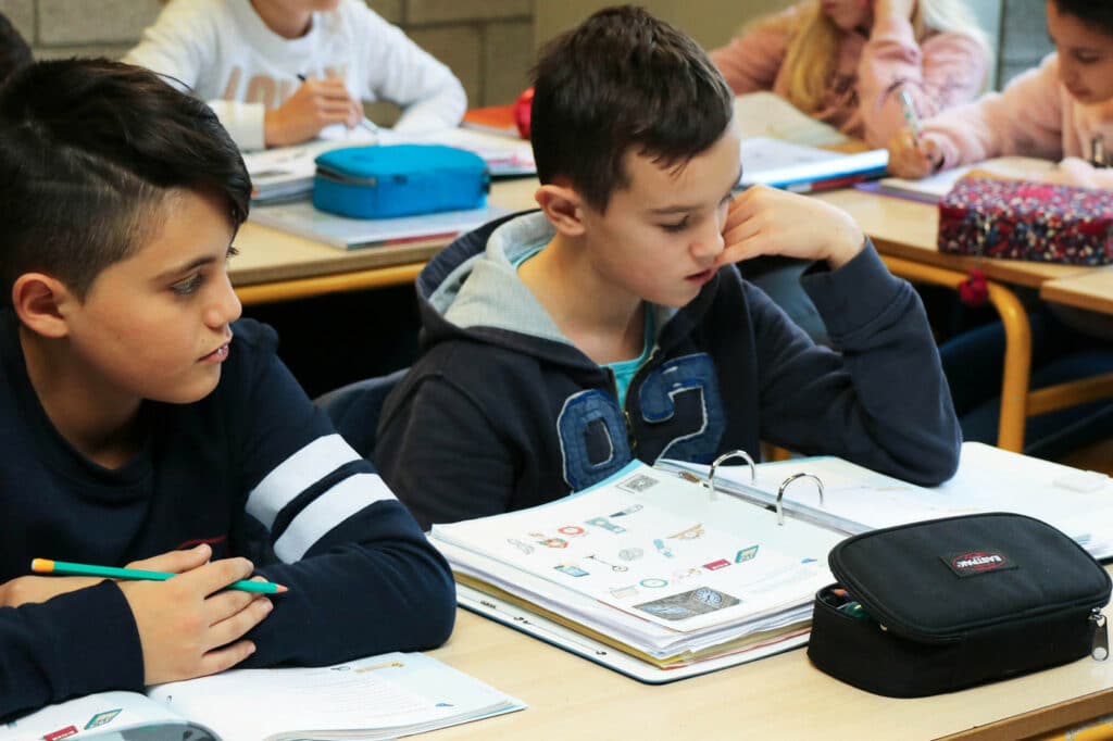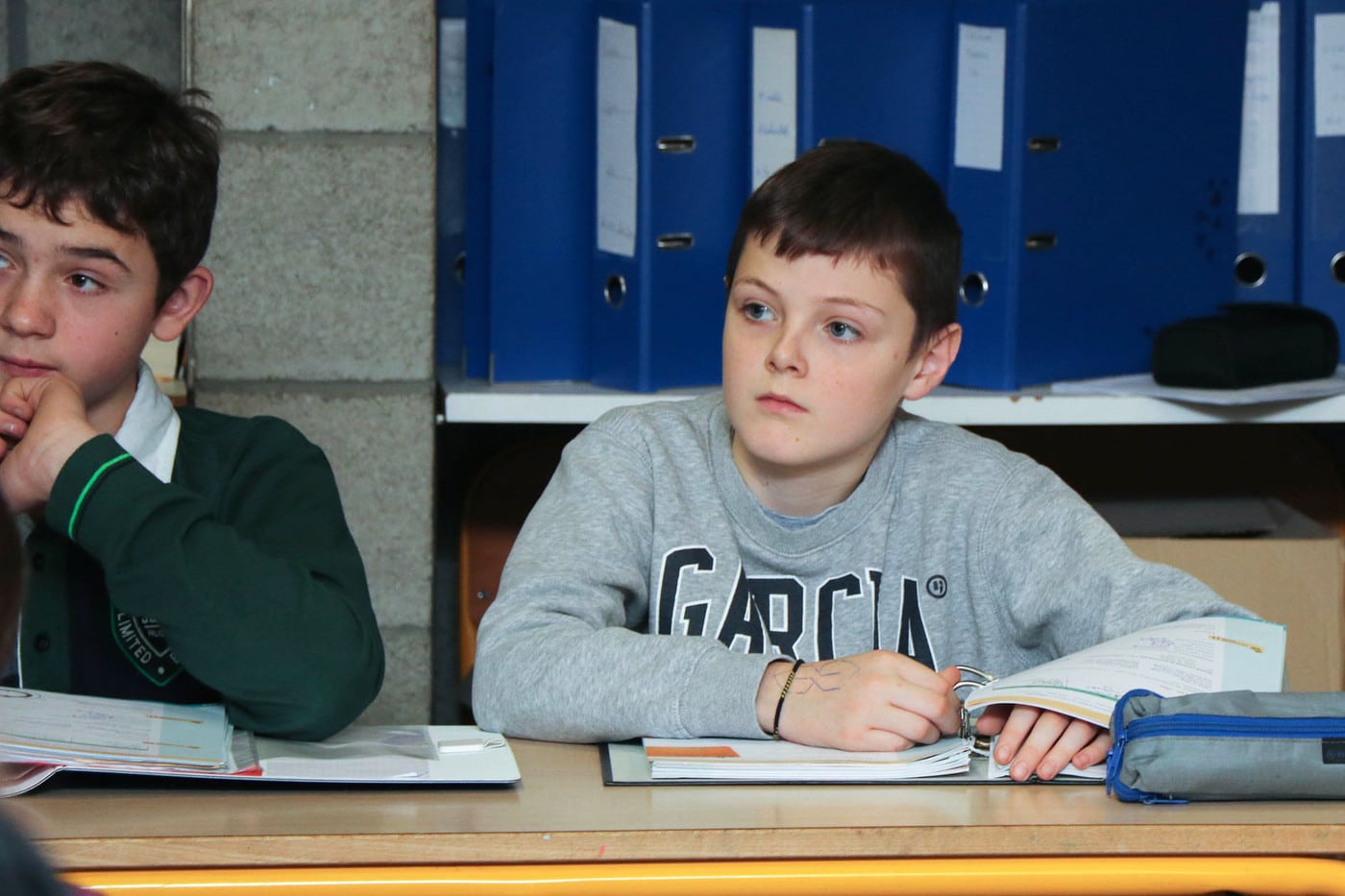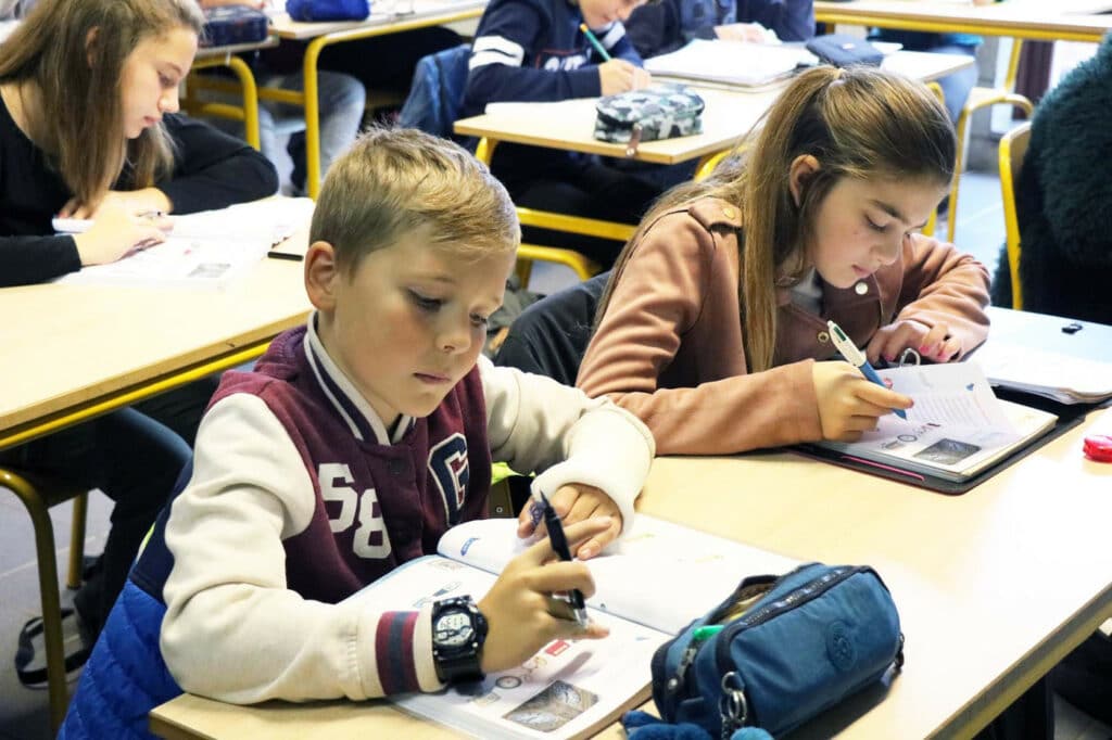 Ci-dessous, avant les photos de notre reportage en classe, vous voyez les deux groupes d’immersion anglaise de 1re année 2019-2020.