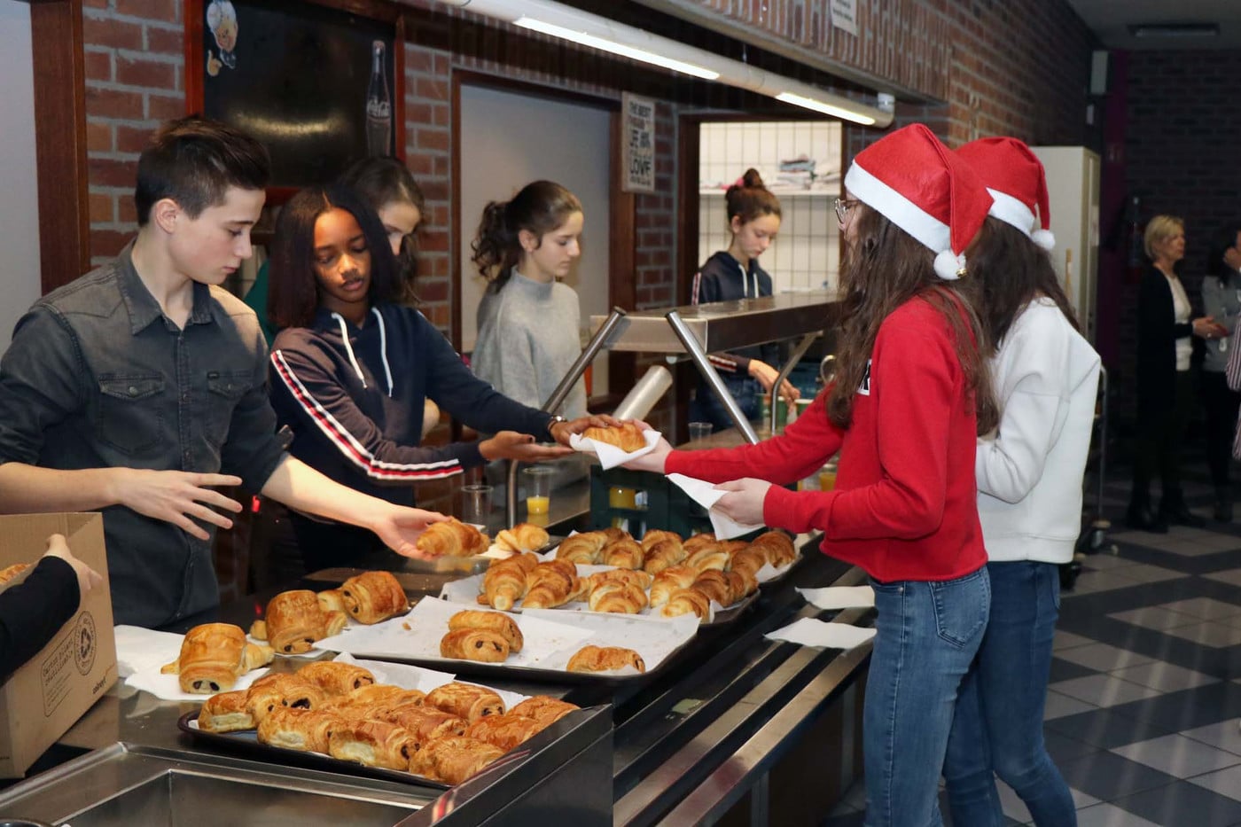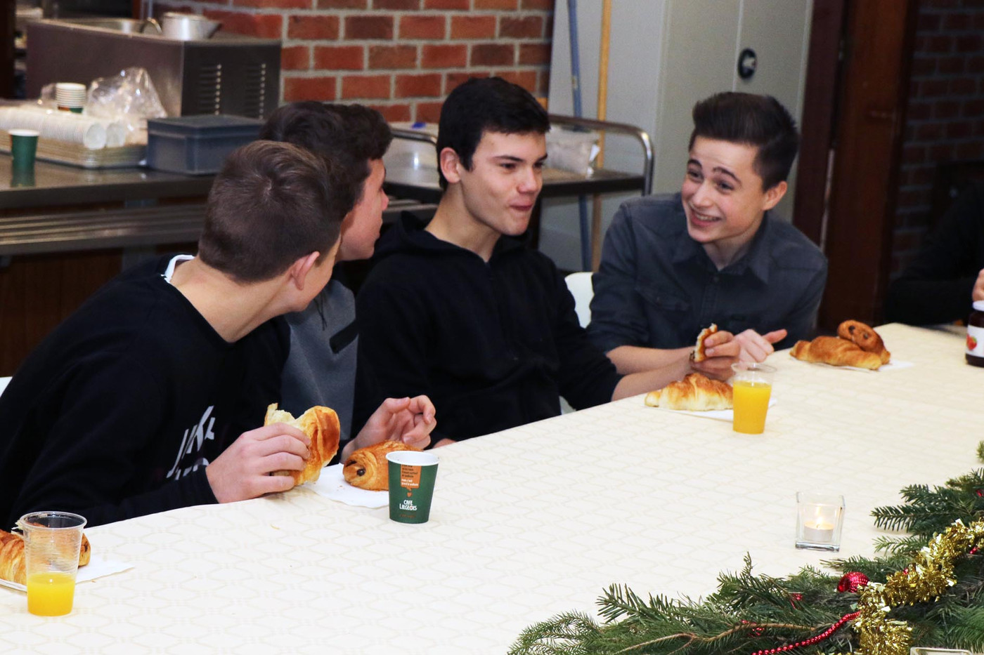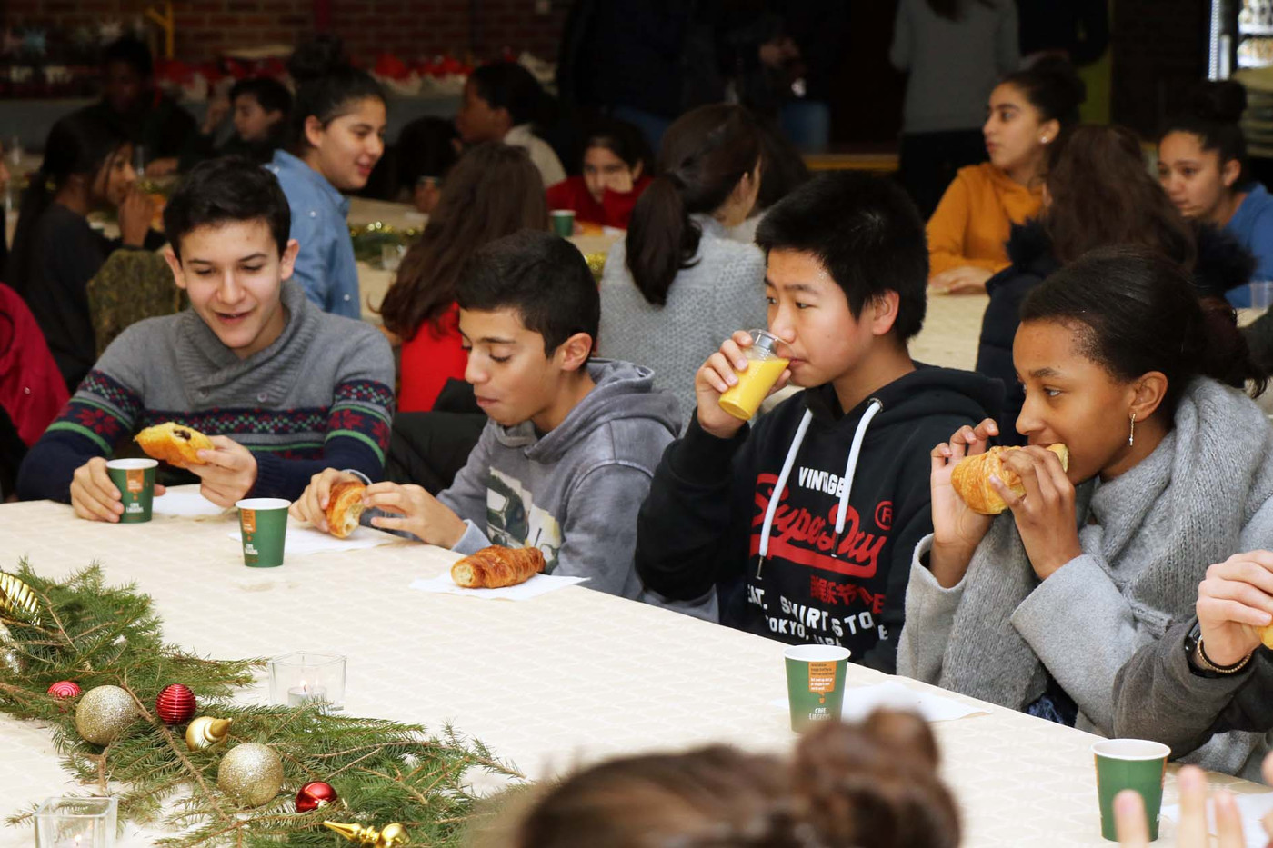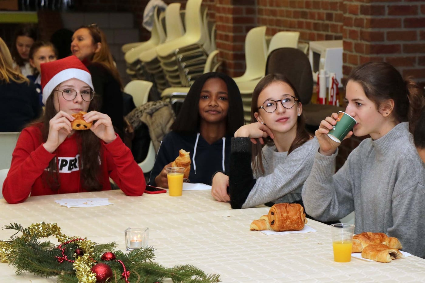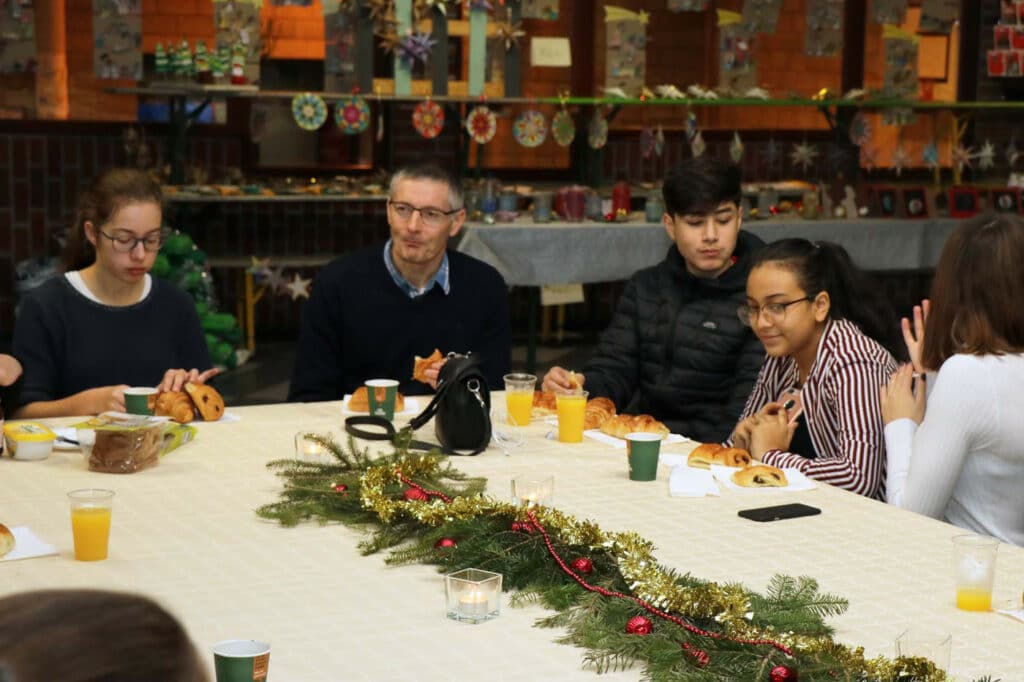 La tradition a été respectée. Le vendredi 21 décembre 2018, dernier jour du trimestre et jour de la remise des bulletins, les élèves du secondaire, et même aussi une grande classe de la section primaire, se sont retrouvés dans la salle polyvalente de l’Institut pour un petit déjeuner vraiment très convivial. Elèves et professeurs ont eu ainsi l’occasion de se rencontrer autrement que d’habitude.