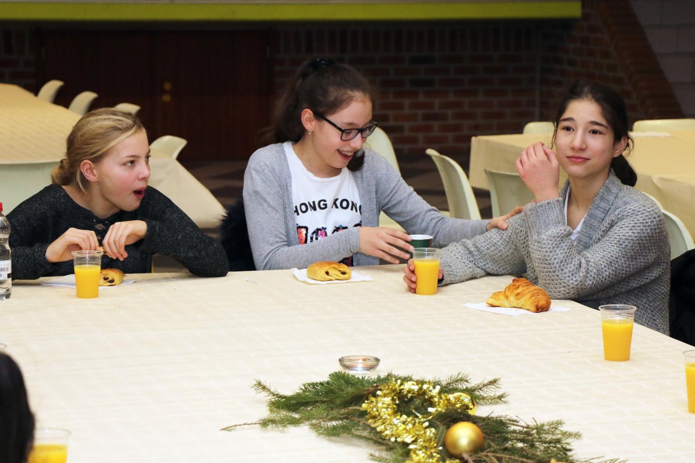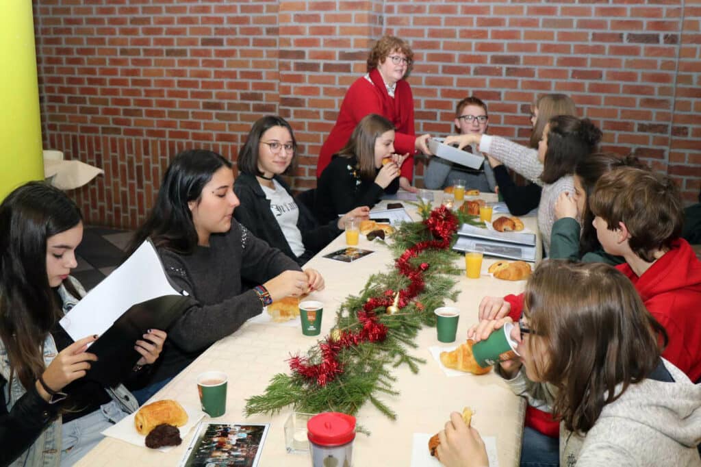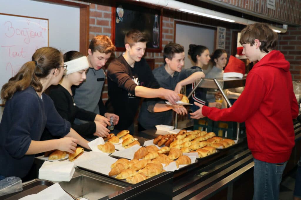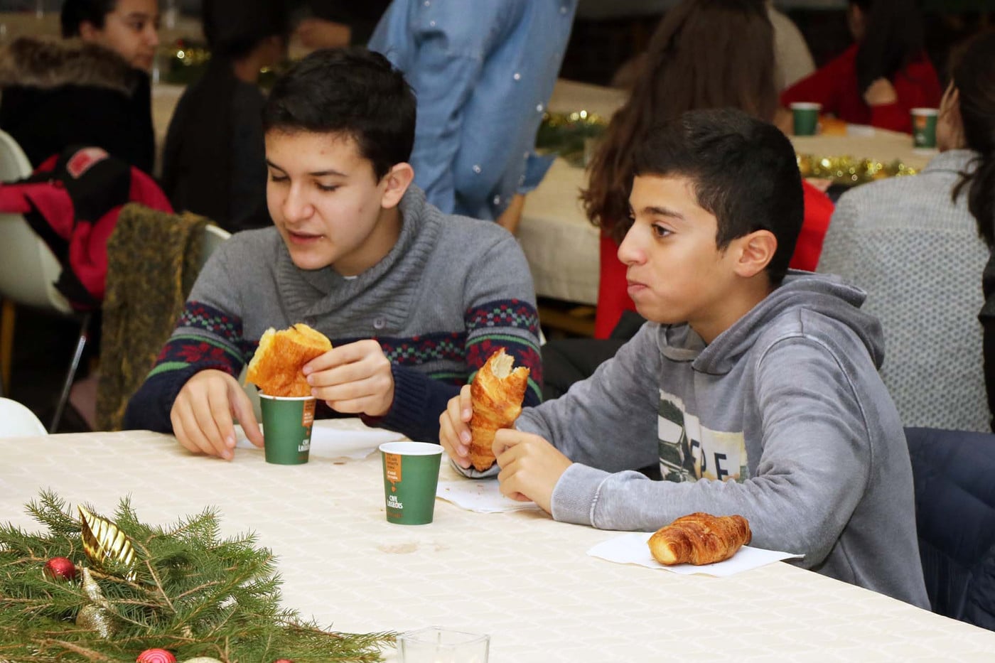 La tradition a été respectée. Le vendredi 21 décembre 2018, dernier jour du trimestre et jour de la remise des bulletins, les élèves du secondaire, et même aussi une grande classe de la section primaire, se sont retrouvés dans la salle polyvalente de l’Institut pour un petit déjeuner vraiment très convivial. Elèves et professeurs ont eu ainsi l’occasion de se rencontrer autrement que d’habitude.