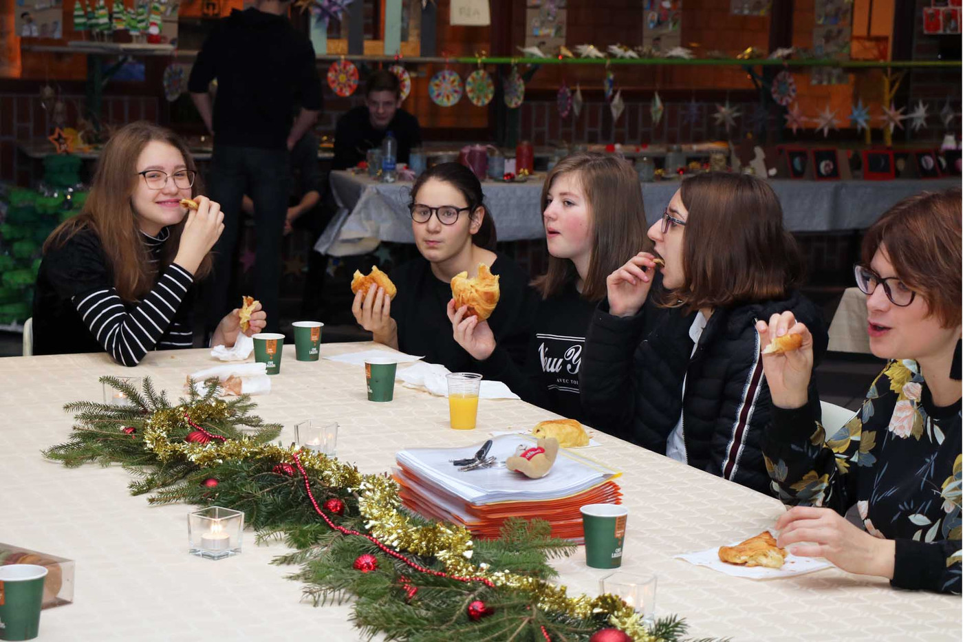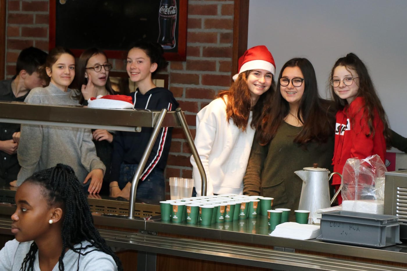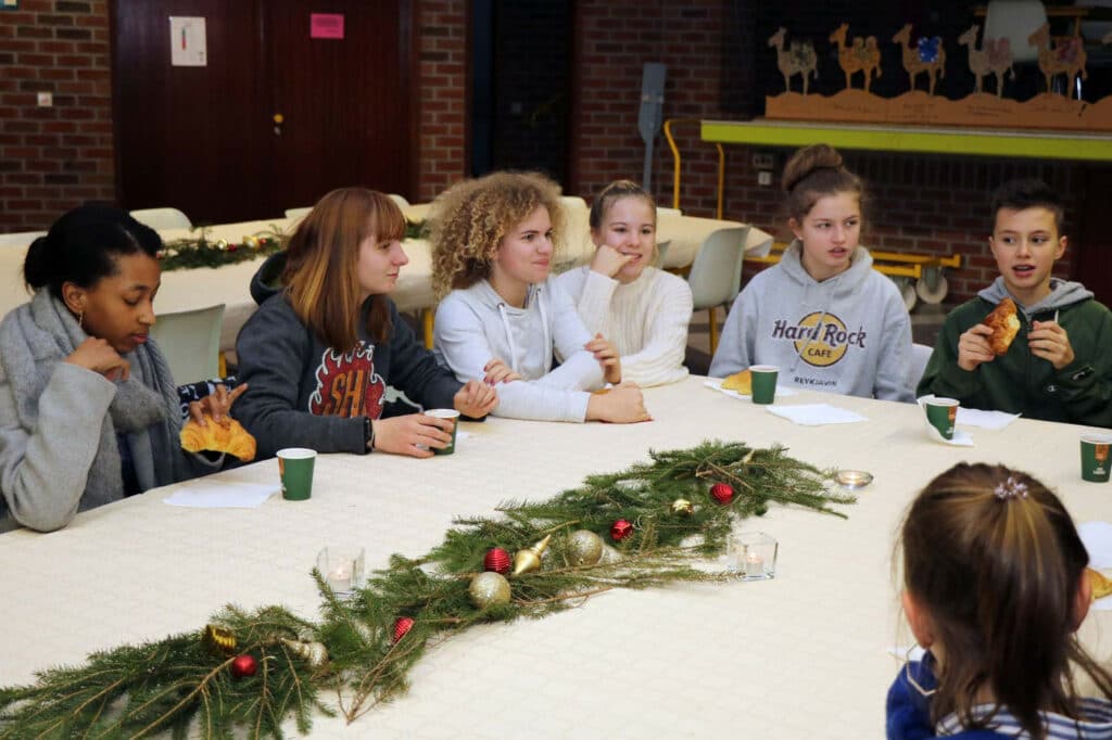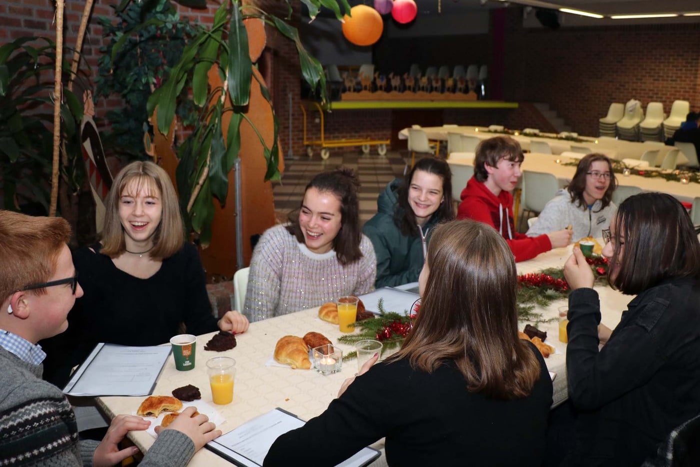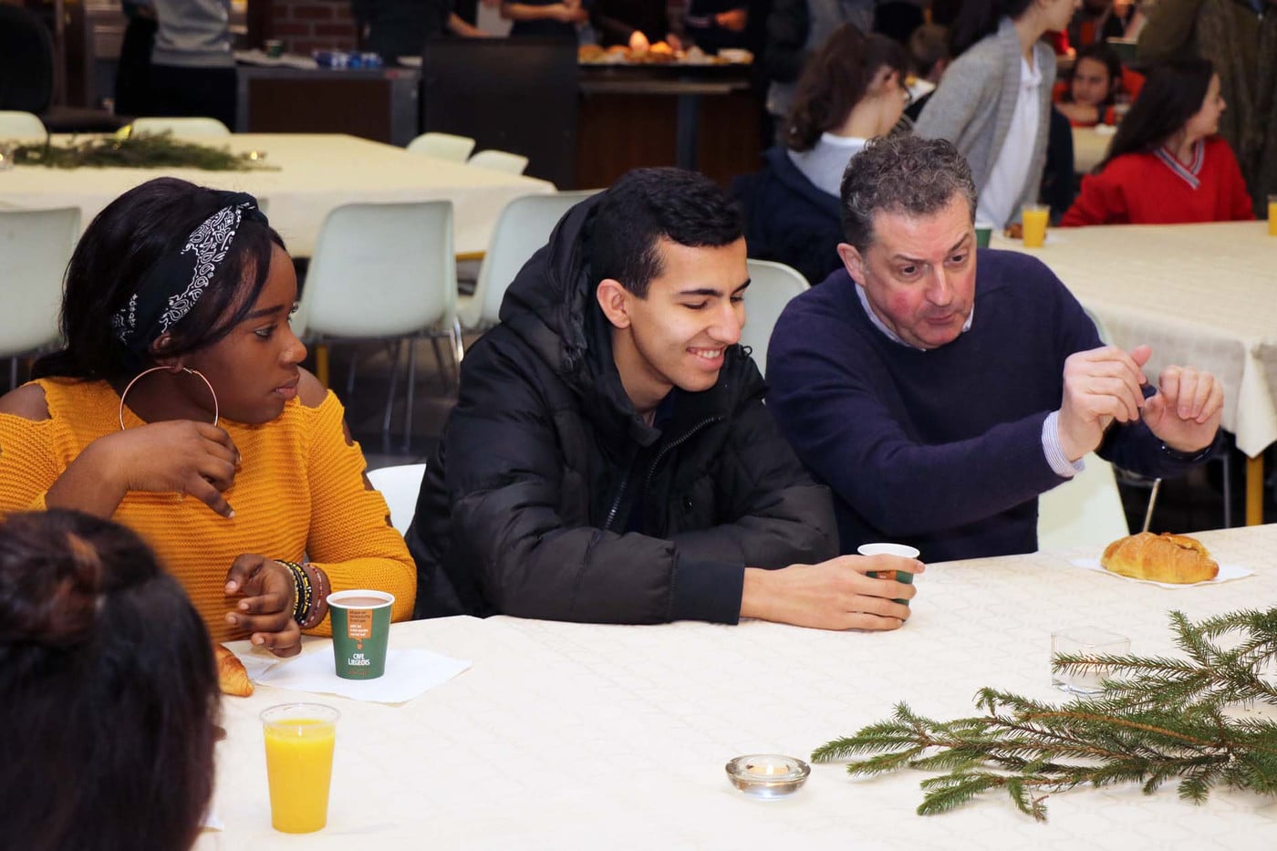 La tradition a été respectée. Le vendredi 21 décembre 2018, dernier jour du trimestre et jour de la remise des bulletins, les élèves du secondaire, et même aussi une grande classe de la section primaire, se sont retrouvés dans la salle polyvalente de l’Institut pour un petit déjeuner vraiment très convivial. Elèves et professeurs ont eu ainsi l’occasion de se rencontrer autrement que d’habitude.