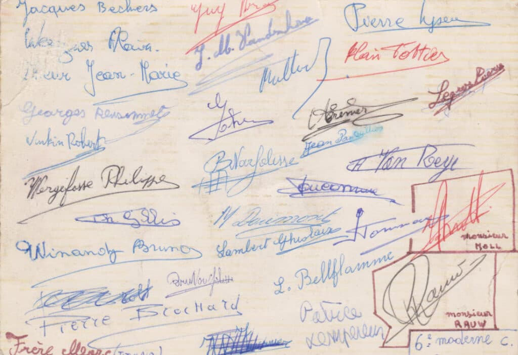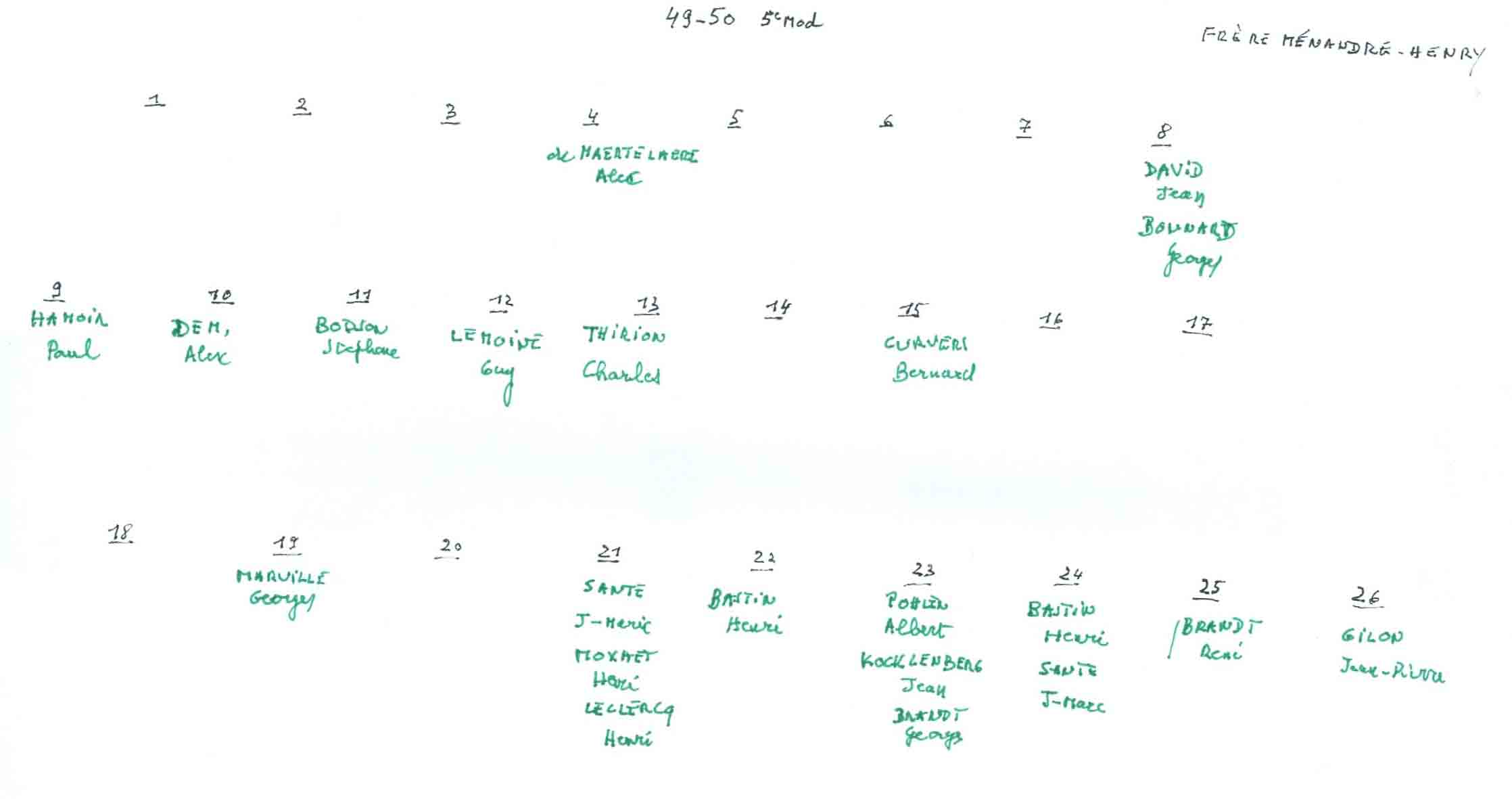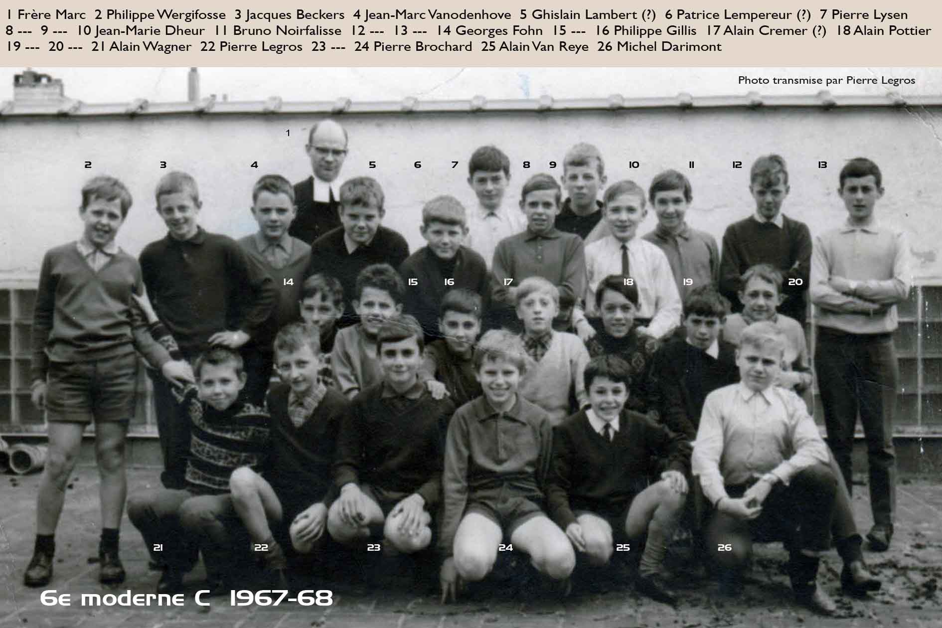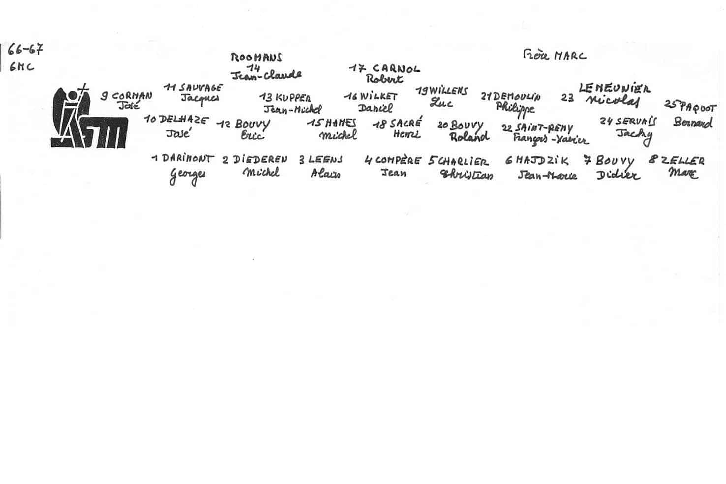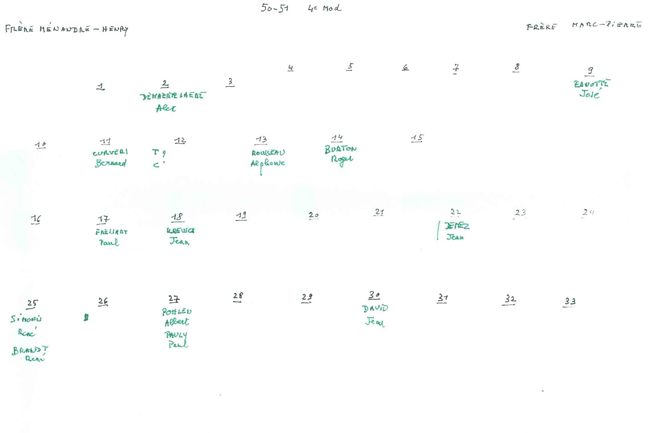 Grâce au patient travail du Frère Marc (décédé en 2014), de nombreuses photos sont suivies d’un plan (plus ou moins complet) reprenant les noms des différents élèves. Ce plan suit directement la photo.