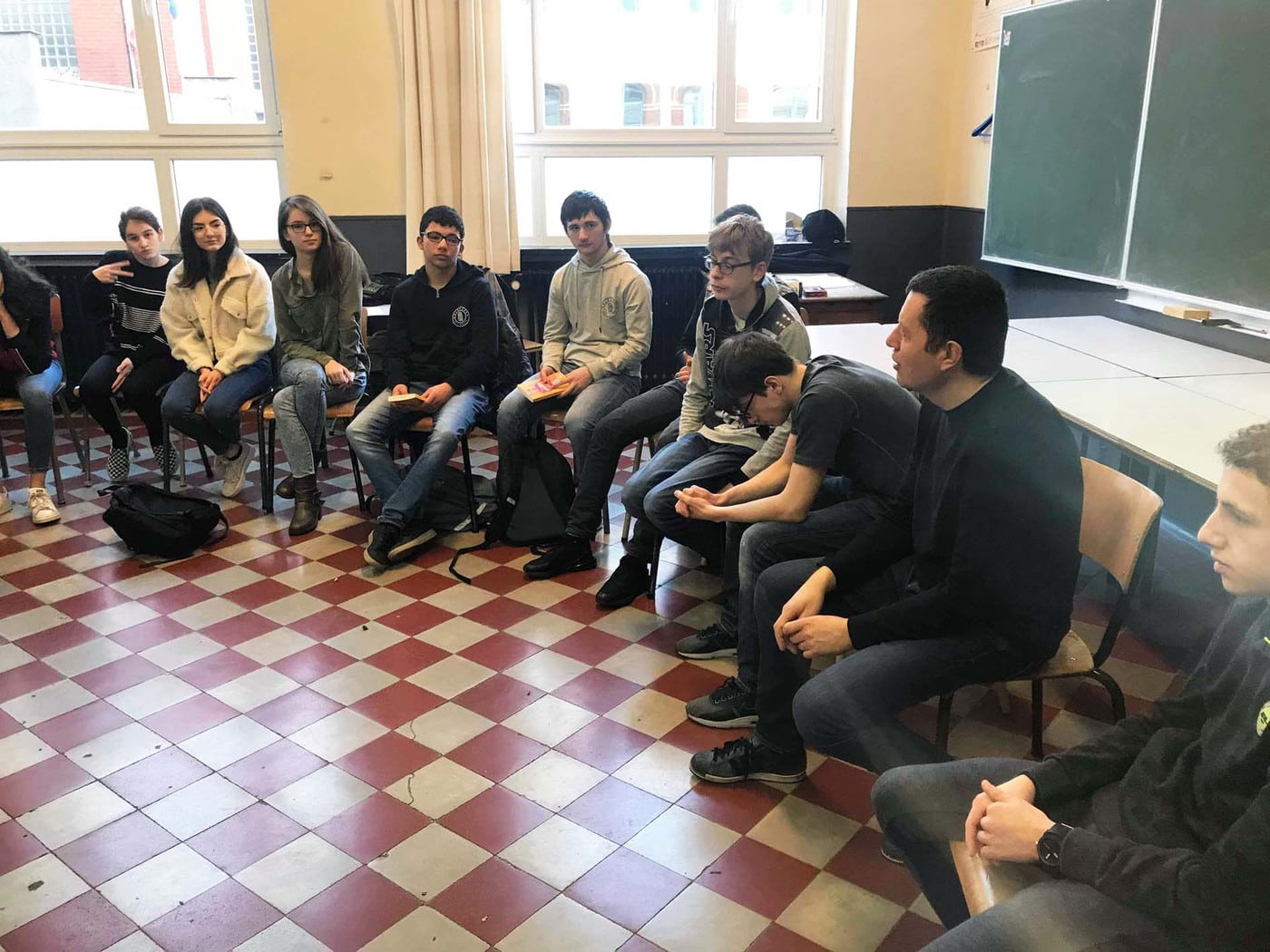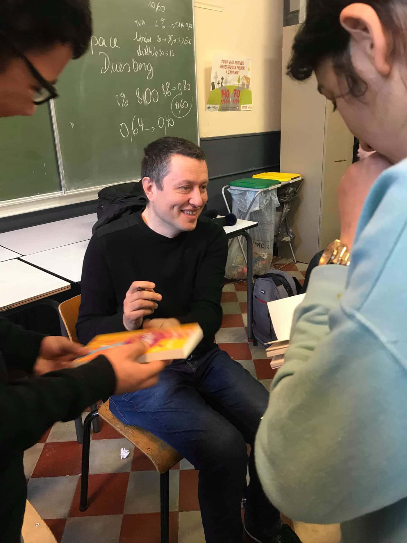 La rencontre fut riche grâce à l’enthousiasme des élèves et à la simplicité tout empreinte d’humanité de Nicolas. Les questions ont touché au roman, bien sûr, mais ont débordé sur des thématiques de société qui ont bousculé nos représentations parfois un peu simplistes de la réalité.