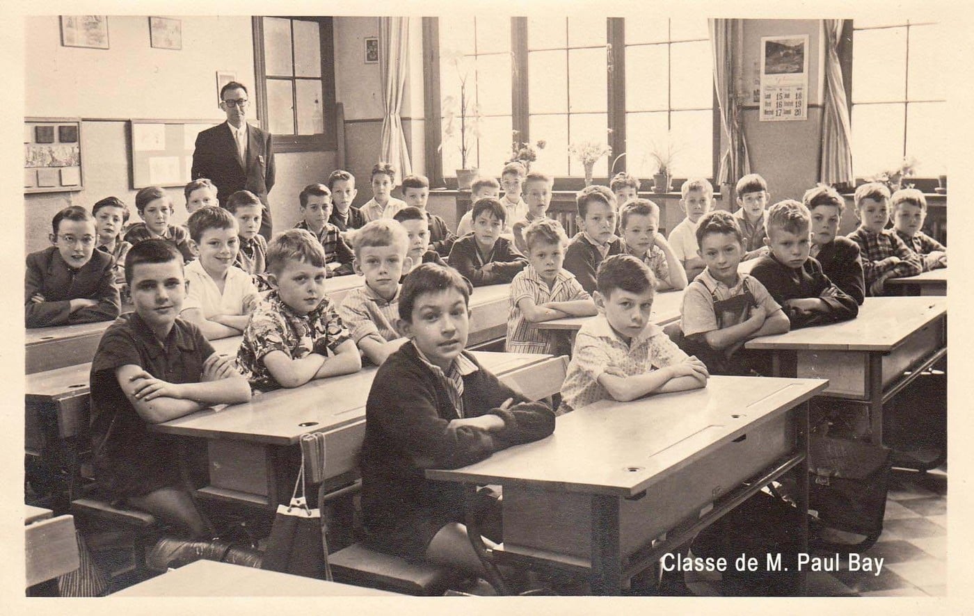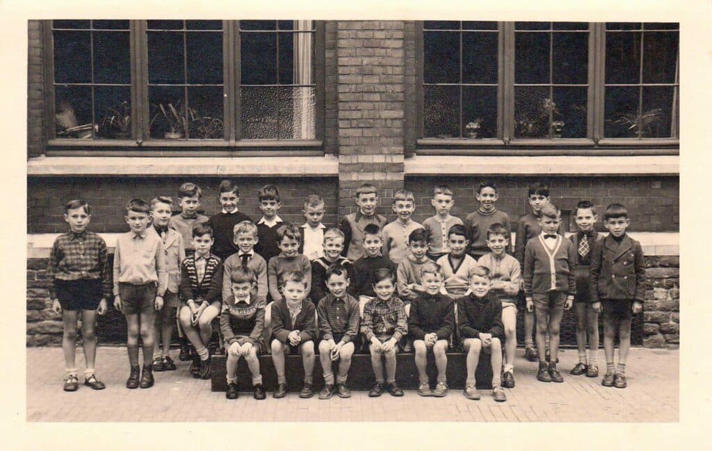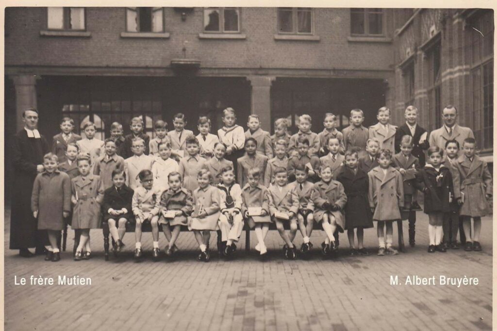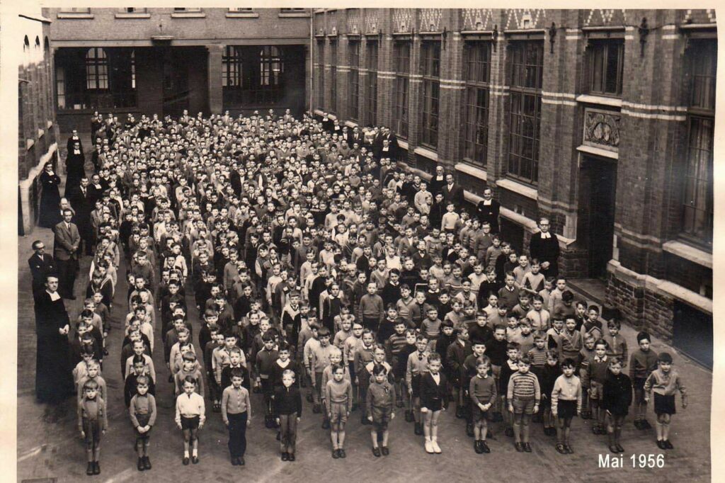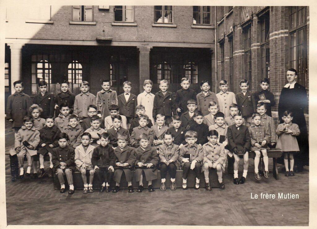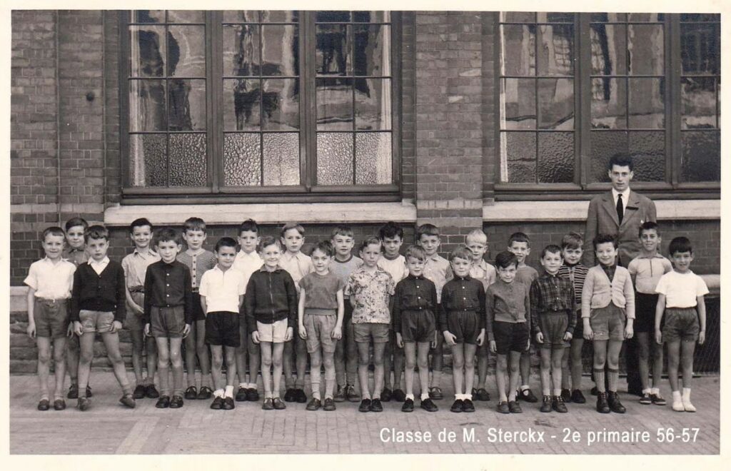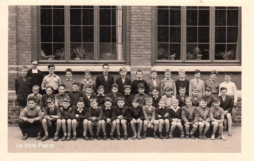 « Ancien élève de l’Institut St-Michel de 1955 à 1961 (école primaire), j’ai retrouvé quelques photos de cette époque. Comme instituteurs, j’ai connu successivement le frère Mutien (déplacé en 1965), MM. Sterckx (en 2e primaire), Alphonse Devigne (en 3e), Paul Bay (en 4e), Renard et Michel Jacquemin (en 5e), et Raymond Depouhon (en 6e). J’ai eu l’occasion de connaître les frères Michel (décédé à l’âge de 102 ans ), Pierre, Materne et Macaire, ainsi que M. Albert Bruyère décédé à l’âge de 91 ans, il y a peu. J’ai poursuivi mes études secondaires chez les Jésuites, rue de Rome, avant d’entreprendre des études de régent littéraire à l’École Normale Moyenne St-Barthélemy à Liège. Après avoir assuré un intérim de trois semaines à St-Quirin (Huy), 2 ans à St-Roch (Ferrières), 2 ans à Eupen (Heidberg), j’ai finalement terminé ma carrière au CES de Herve (IPH, CPH, CRMT). J’ai eu aussi l’opportunité d’enseigner parallèlement en Allemagne à Montjoie (Gymnasium pour jeunes filles) au début des années 70 (6 heures/semaine pendant un an) et à Aix-la-Chapelle (Volkshochschule) pendant un an dans le cadre des cours du soir. J’ai appris l’allemand notamment en Autriche à l’université de Vienne, où l’on dispensait un cours intensif d’allemand durant la journée pendant les vacances d’été, et à l’Université de Liège dans le cadre de l’Institut Goethe durant 4 ans, cours du soir. J’ai un frère jumeau qui a entrepris les mêmes études et a enseigné comme moi, mais dans la partie germanophone du pays (St-Vith).