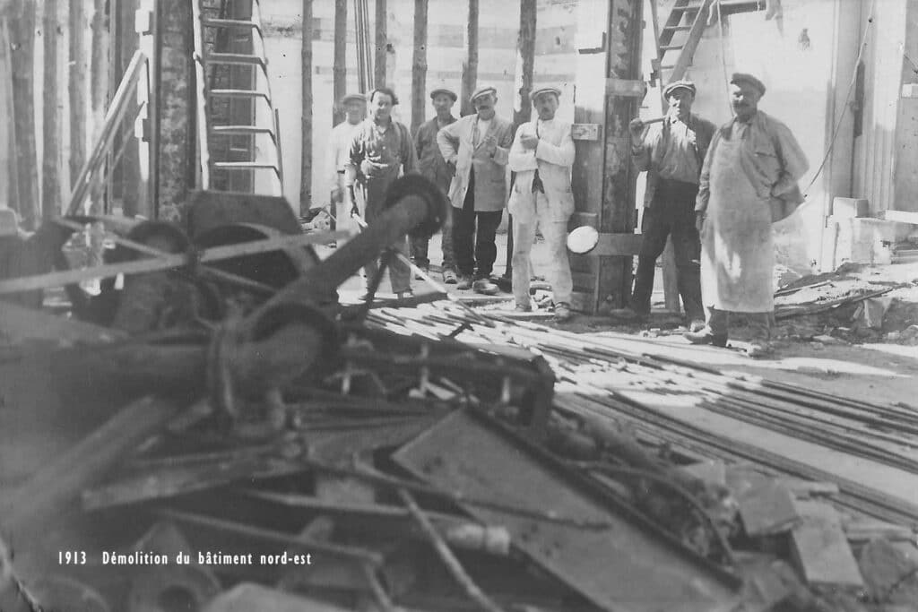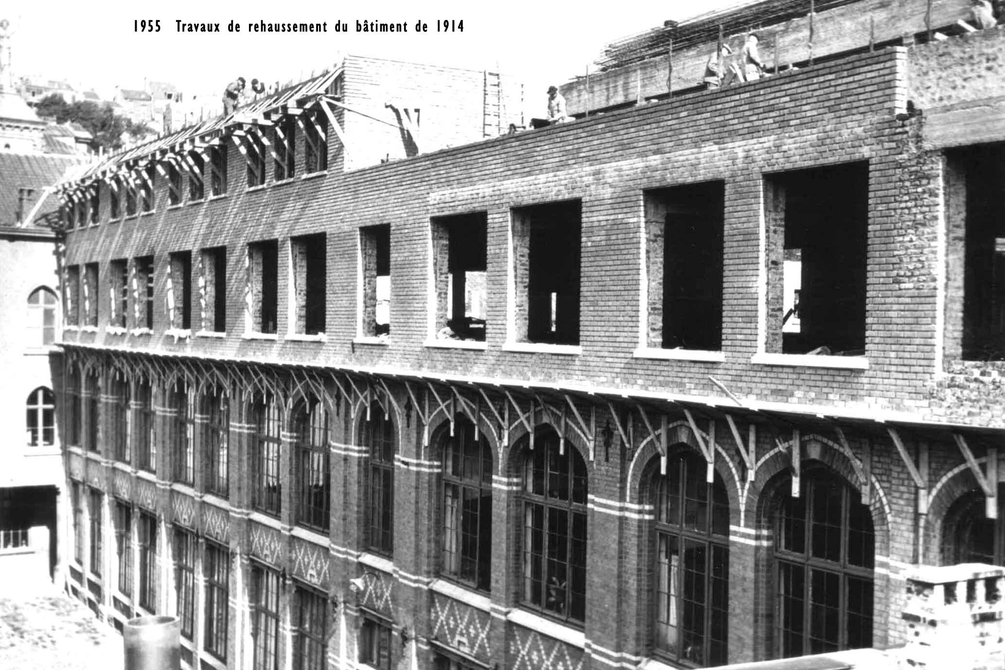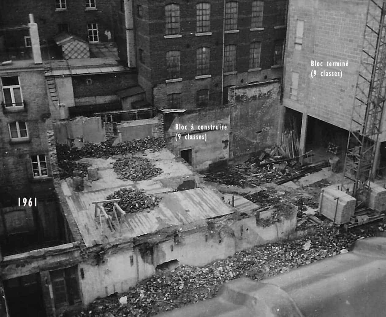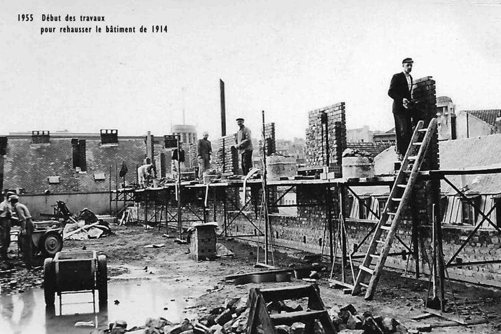 Nous ne disposons malheureusement pas de photos qui montreraient la construction de notre plus ancien bloc (rue du Gymnase), celui de 1896.
